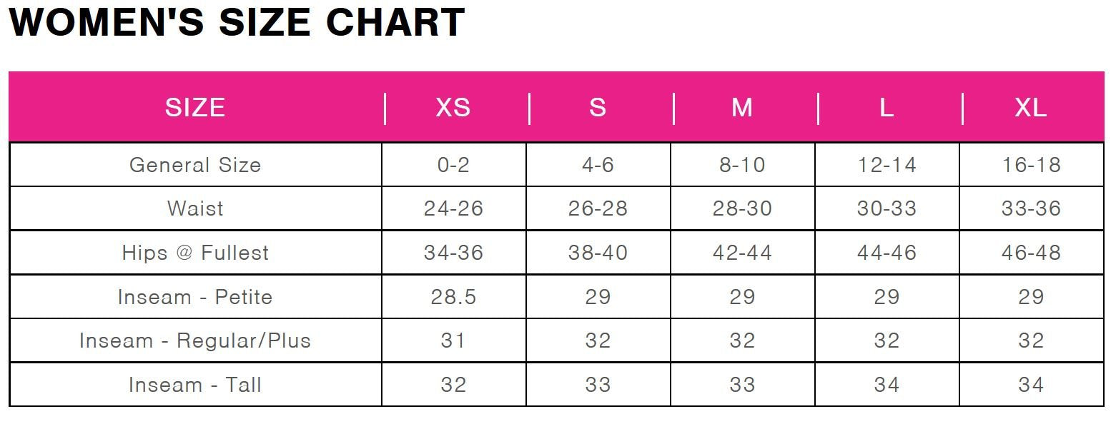 include a Short 29" inseam (5'1" – 5'4" heights), Regular 31" inseam (5'5" –