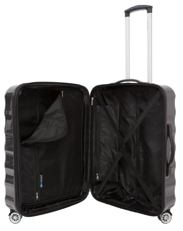 The CavaletArtic Carry On Hardside Spinner is airline approved for cabin baggage on most airline around the world. This carry on hardside spinner is equipped with four smooth and silent double spinner wheels, a sturdy telescopic handle and side protection bumper feet. Some additional features are a well-organized interior with mesh pocket and packing straps on both sides.