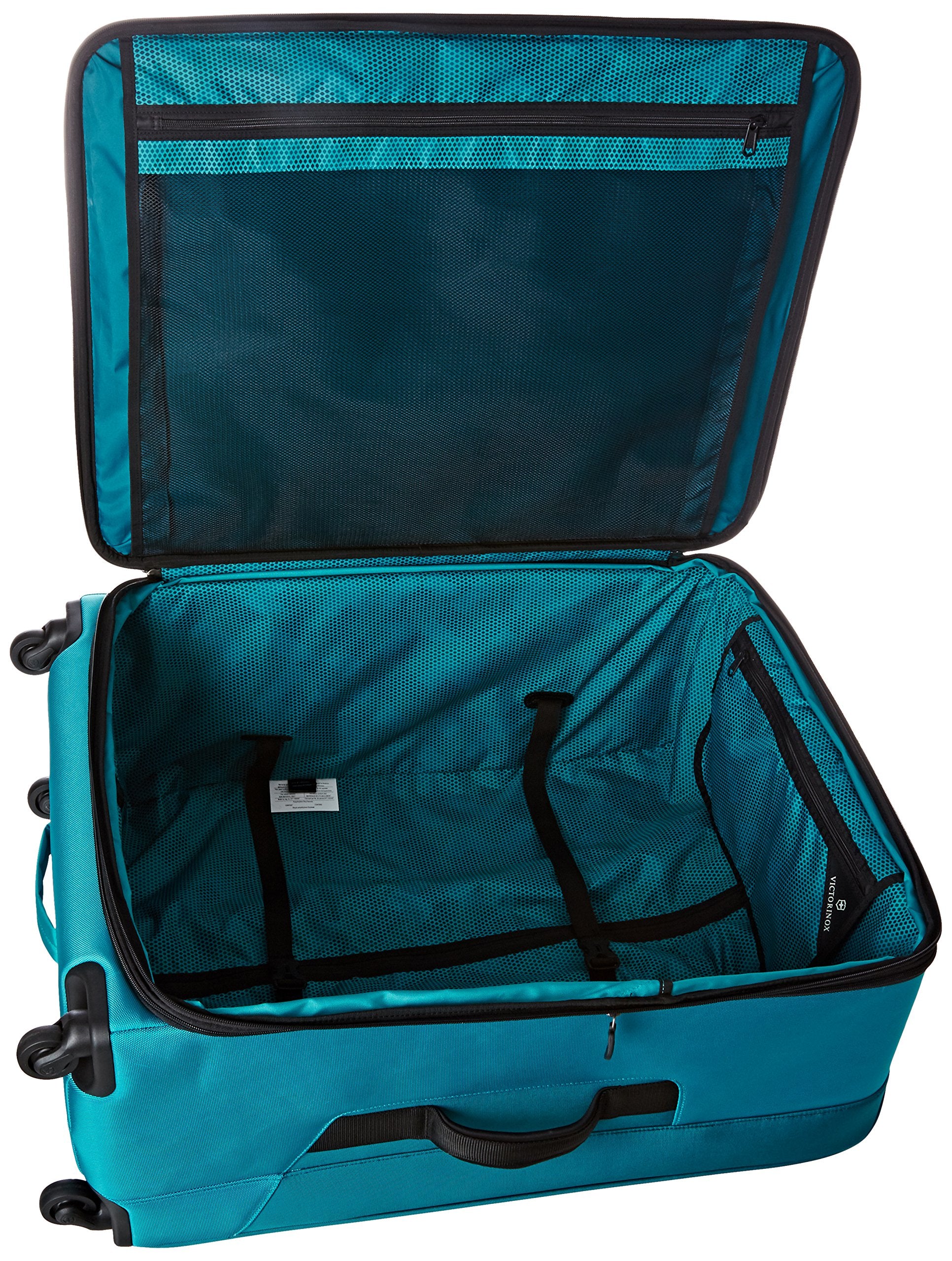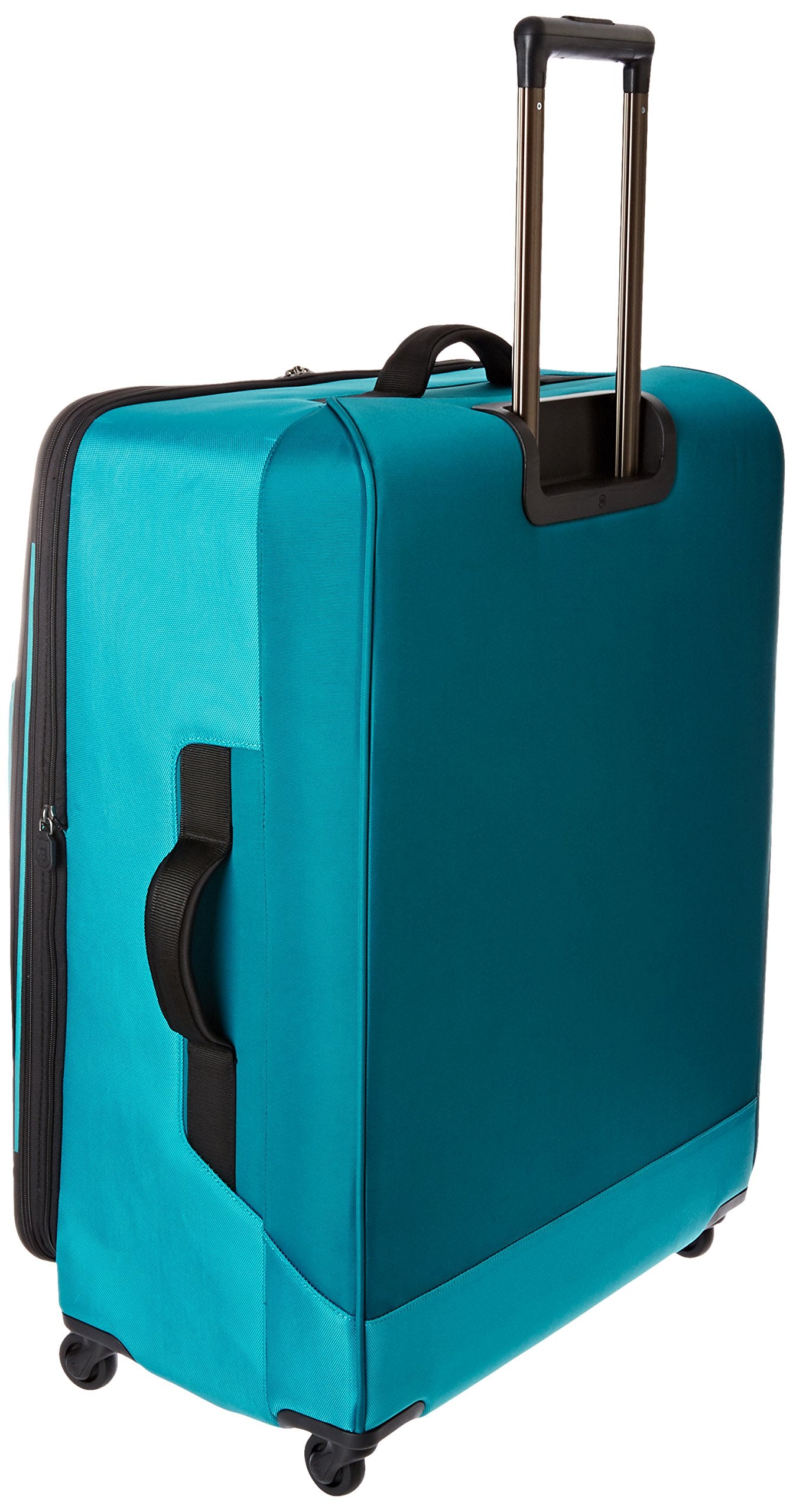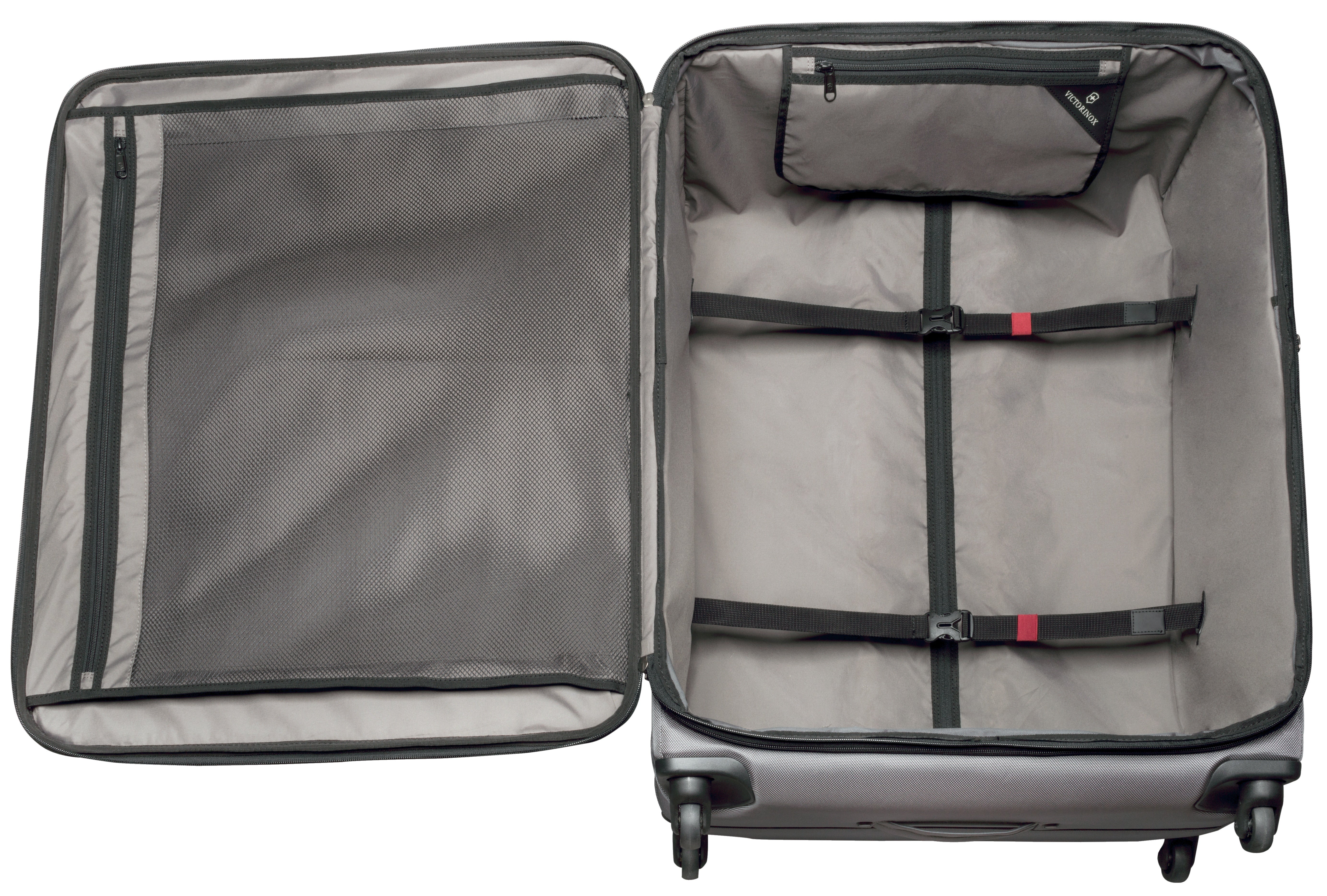 Whether packing for yourself or for a whole family, this spacious four-wheeledupright has ample capacity for your needs. Comfort grip, one-touch, dual-trolley aluminum handle system locks into two different positions, 41-inch and39-inch, to accommodate travelers of various heights. A four-wheel castersystem adds stability, providing 360-degree maneuverability and producing zeroweight-in-hand when rolling upright. Spacious main packing area expands 2-inchfor additional packing capacity and features lockable zipper sliders. Interiorfeatures a zippered hanging pocket, compression straps and a full-lengthzippered mesh pocket for storing toiletries and other small essentials. Topquick-access pocket conveniently holds tickets and other essentials. Top andside padded haul handles. Removable attach-a-bag strap secures an additionalbag to the front of the upright for consolidated travel. Lockable ykk racquetcoil zippers provide superior burst strength. Integrated slide-out id tag forsecurity and convenience.