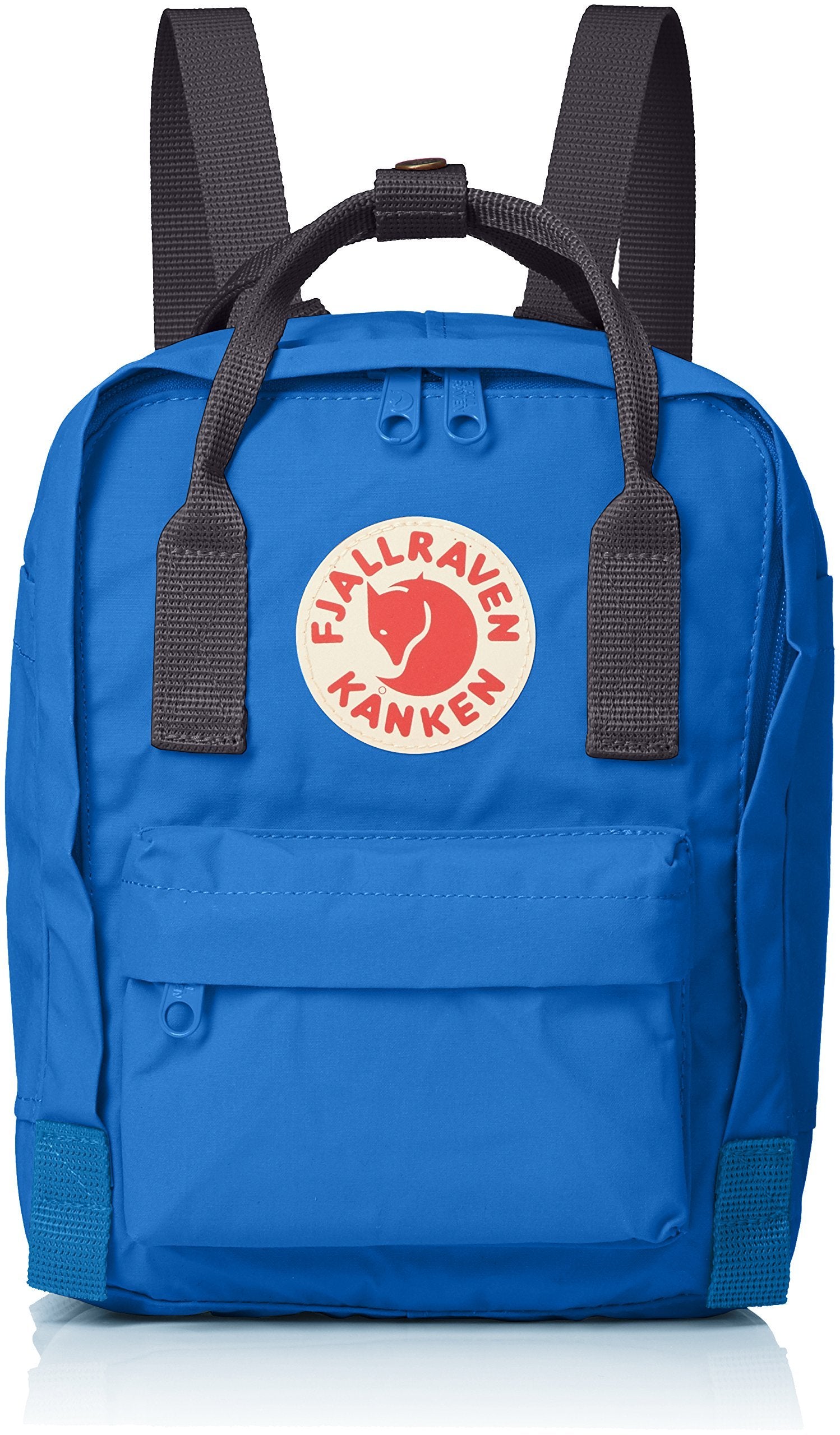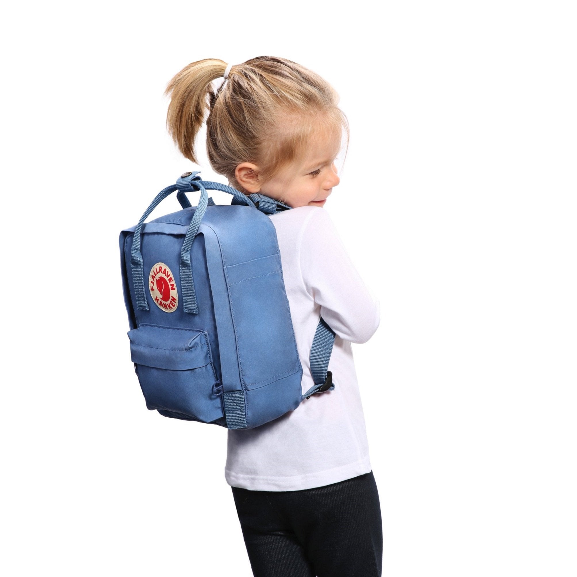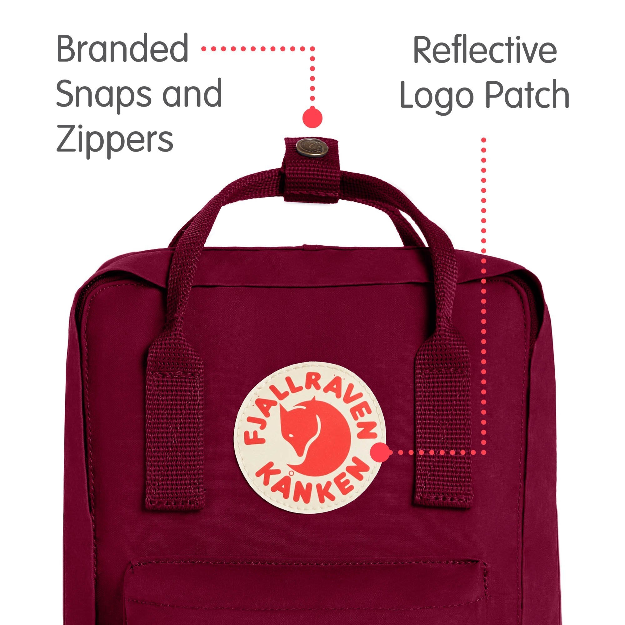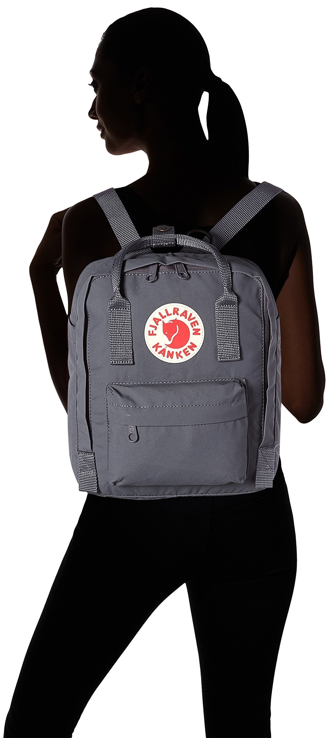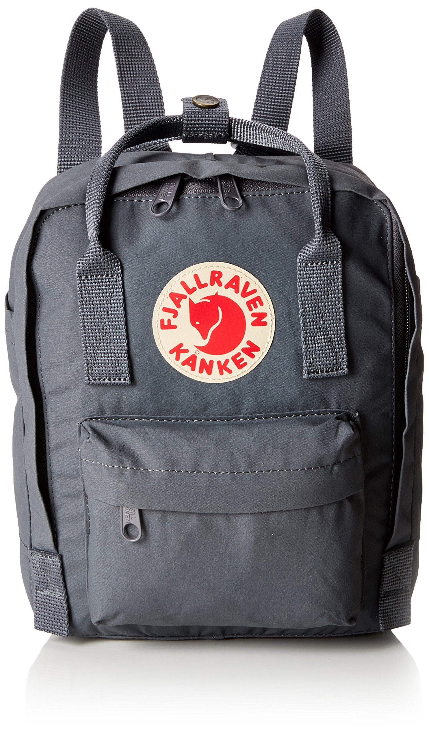 All the fun and practicality of the Kanken in a smaller bag. From kids toparents, the Kanken-Mini has a function for everyone. The Kanken-Mini is madeof durable, lightweight, water resistant Vinylon F. The main compartment has alarge opening making it easier to put in/take out items. Featuring two sidepockets and a zippered pocket in the front. Handle at the top, allowing thebag to be carried as a tote, narrow, flexible shoulder straps, sitting pad inthe pocket in the back and logo that doubles as a reflector.