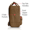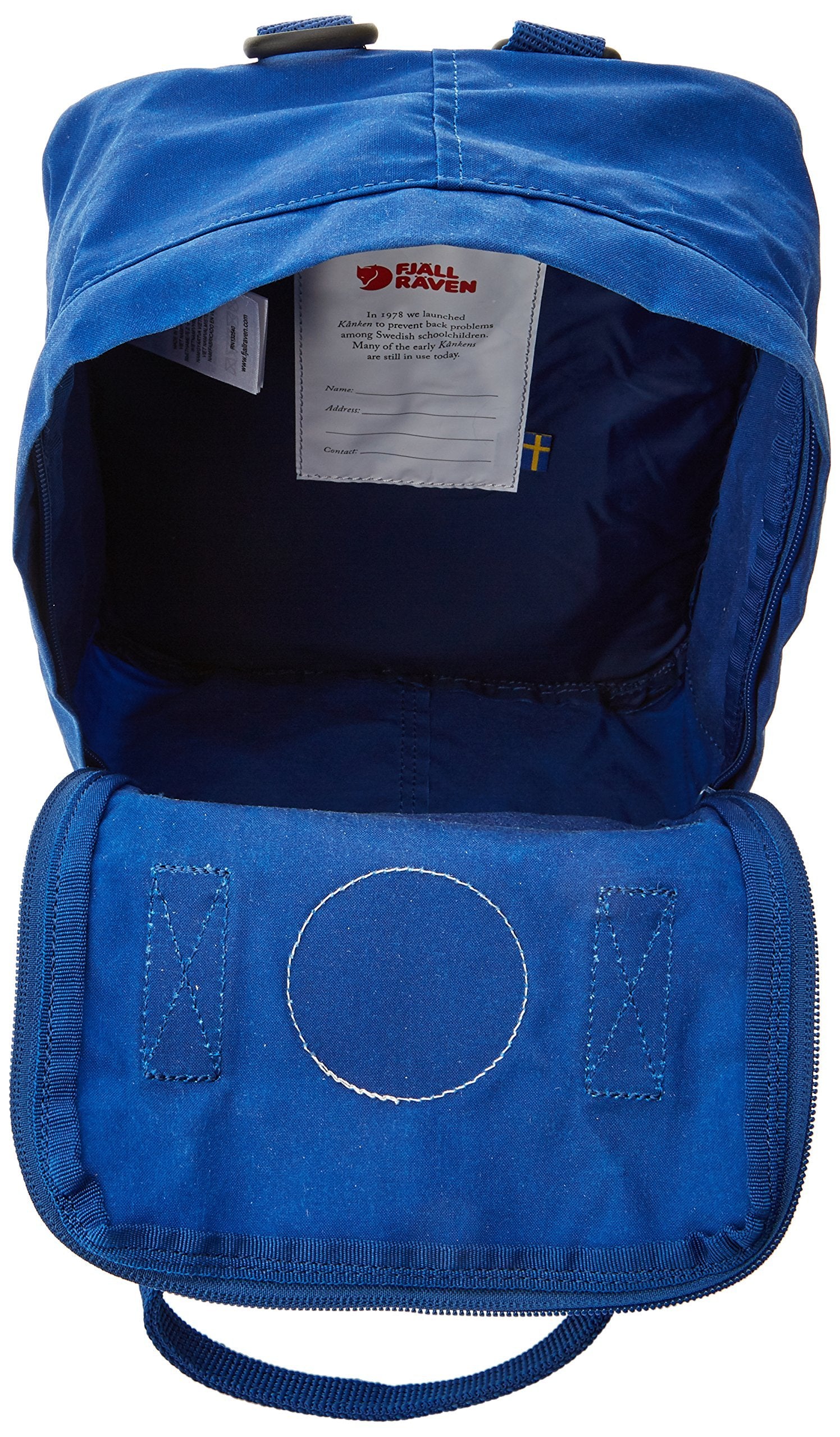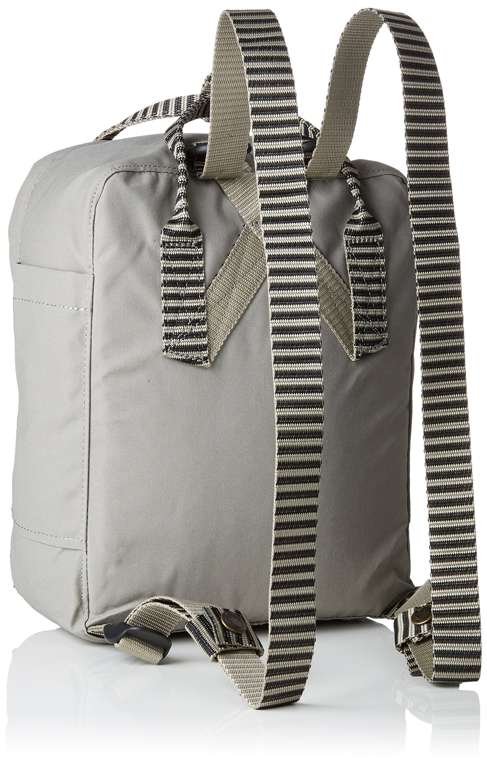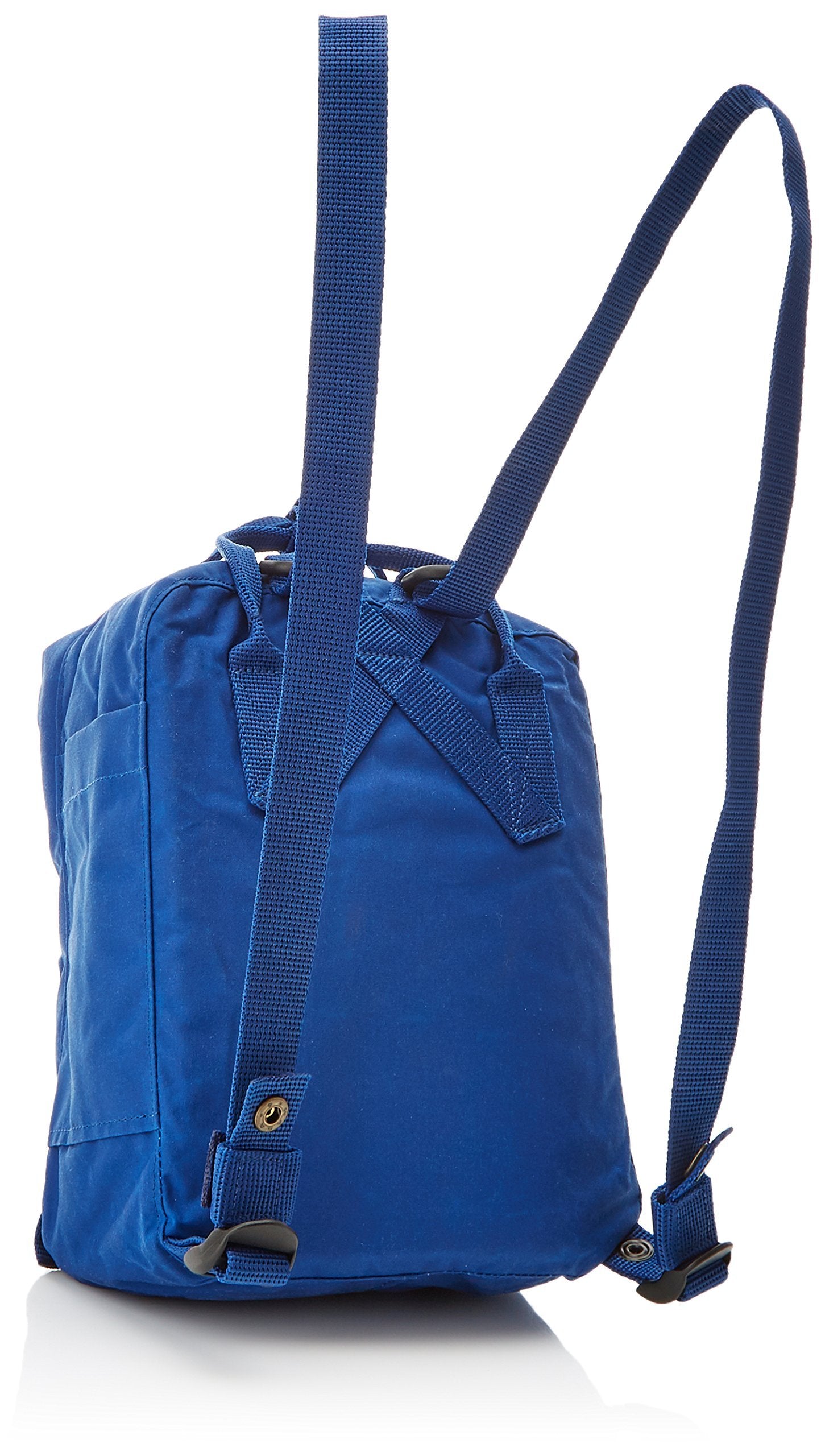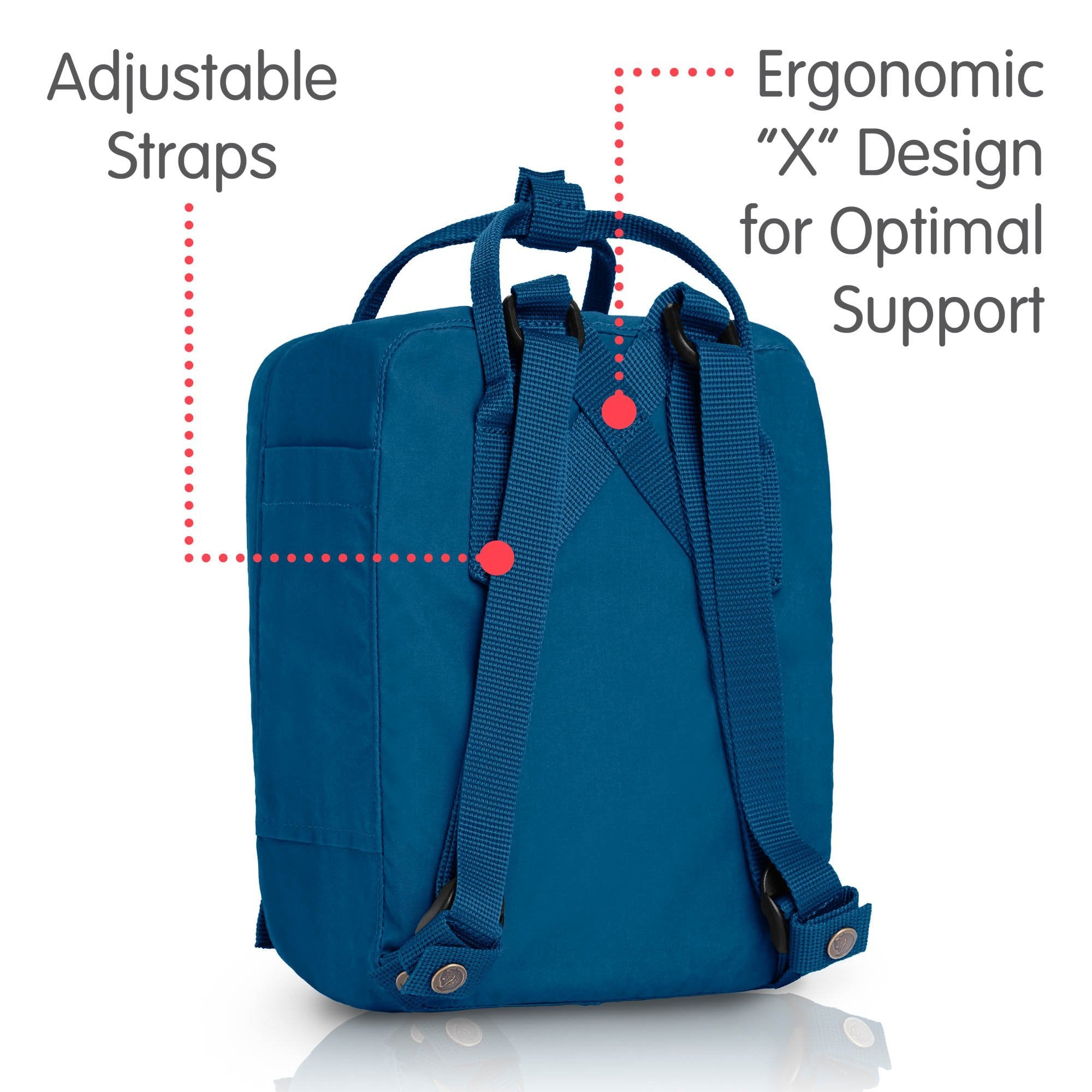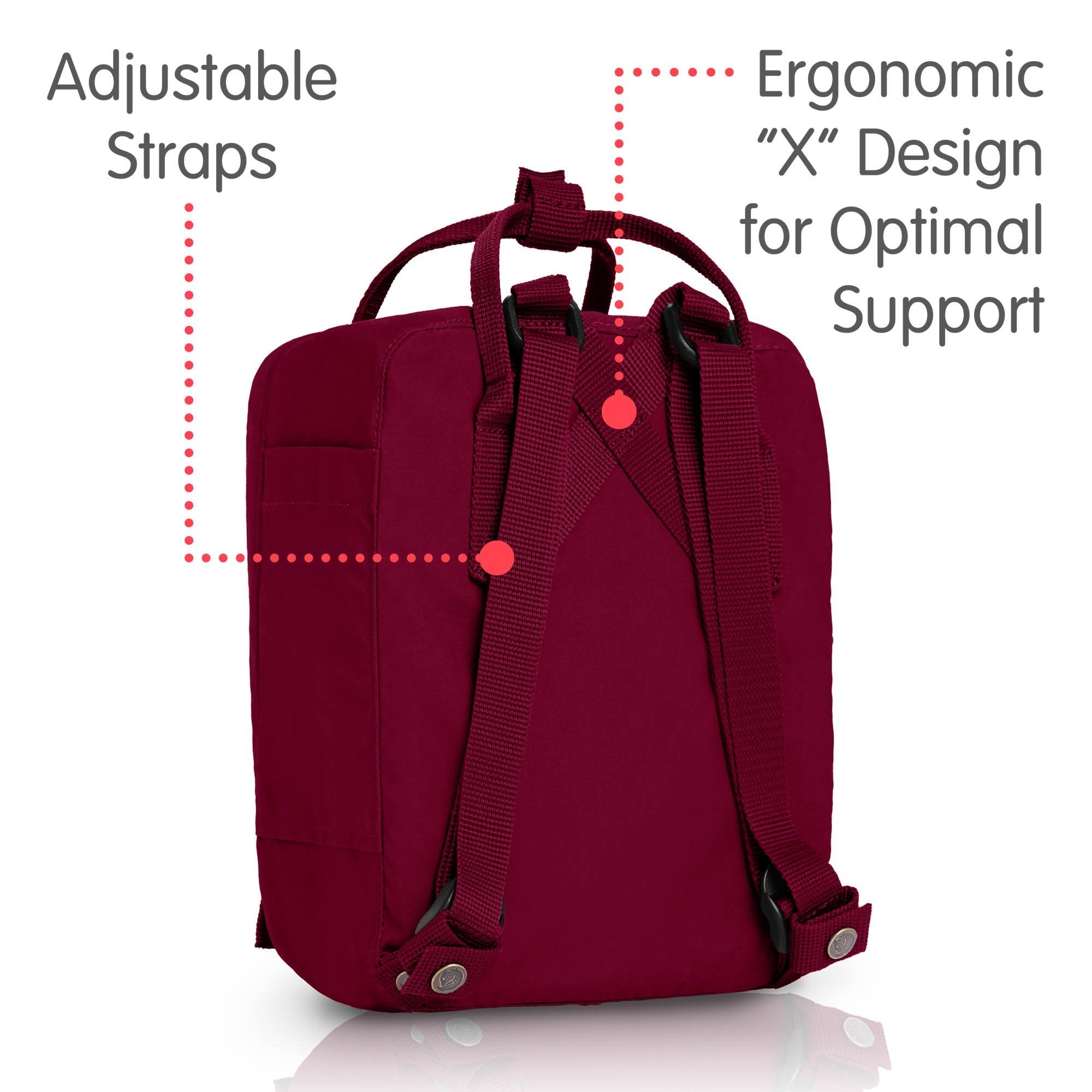 All the fun and practicality of the Kanken in a smaller bag. From kids toparents, the Kanken-Mini has a function for everyone. The Kanken-Mini is madeof durable, lightweight, water resistant Vinylon F. The main compartment has alarge opening making it easier to put in/take out items. Featuring two sidepockets and a zippered pocket in the front. Handle at the top, allowing thebag to be carried as a tote, narrow, flexible shoulder straps, sitting pad inthe pocket in the back and logo that doubles as a reflector.