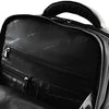 - Hybrid material construction combining nylon twill + leather like polyurethane trim