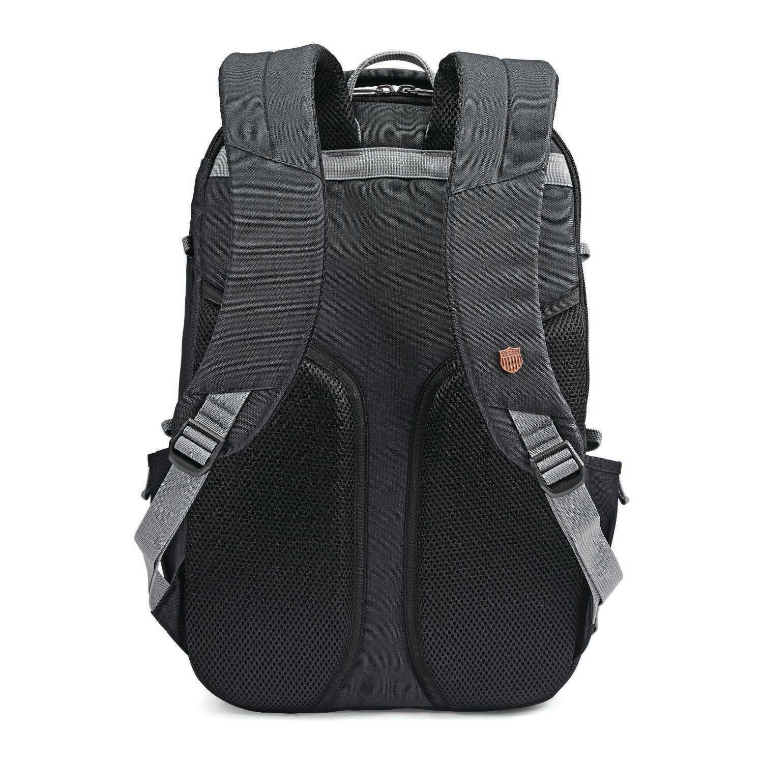 American Tourister Dig Dug Laptop Backpack Zippers are nylon coil. Organizational pocket. Dedicated laptop sleeve 15.6. Tablet sleeve. Contrast flap with quick stash pocket with custom woven label lashing square. Nubuck accent trim details. Custom American Tourister hardware; zipper pulls, rivets, and patches. Water bottle pocket. S-curve padded shoulder straps with air channel back with lumbar support.