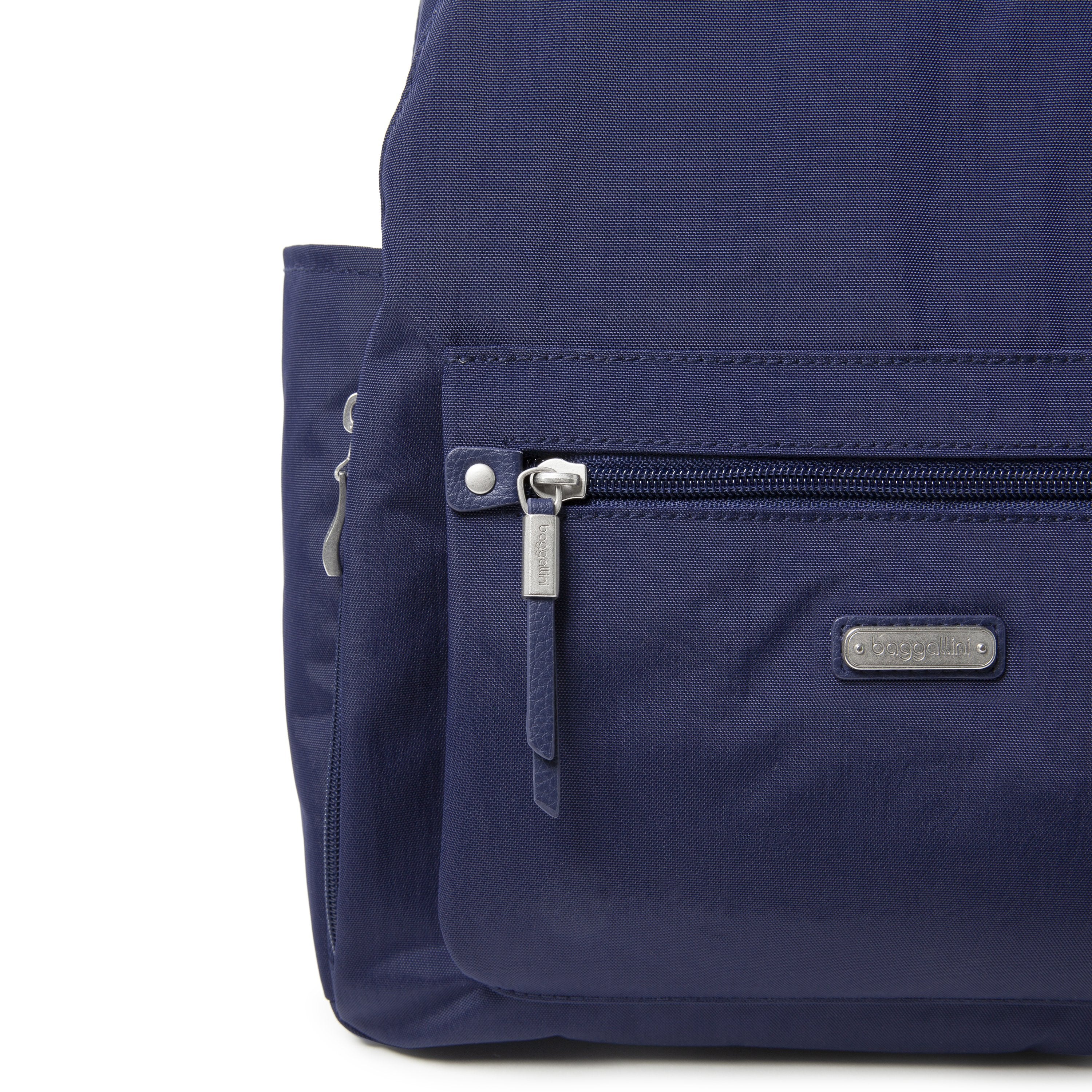 Everyday elegance just got easier. Go hands-free while traveling with the lightweight all-day backpack's convenient adjustable straps. The removable RFID-blocking wristlet protects your personal information, so you can focus on the journey ahead.