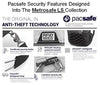The revamped Metrosafe LS150 anti-theft sling backpack from Pacsafe stays trueto its classic design heritage, while providing functionality and seamlesslyintegrated security technology. The bags fabric is embedded with eXomeshSlashguard, a lightweight flexible, stainless steel wire mesh that protectsyour gear from a quick slash-and-run theft. Flexible, stainless steel wireruns through the adjustable Carrysafe Slashguard cross-body strap to helpprevent slashers from slicing through and running off with your gear, whilethe Turn & Lock Security Hook attaches the bag to a fixture for addedsecurity. The Lockabout Security Clip and smart zipper security providemultiple layers of protection and lockdown points for zippers to help protectagainst pickpockets. The RFIDsafe blocking pocket helps prevent your data(such as from e-passports, credit cards, and key cards) from falling into thewrong hands. Additional Metrosafe LS150 features include zippered main andfront pockets with organization for cards, phone and passport, an iPadcompatible sleeve, and adjustable cross-body strap. It holds a volume of7-liters and weighs just one pound. Pacsafe keeps travelers one step ahead ofthe game by keeping their gear secure from opportunistic thieves with a widerange of stylish adventure backpacks, leisure bags, urban bags, womens bags,and camera bags, as well as luggage and travel accessories.