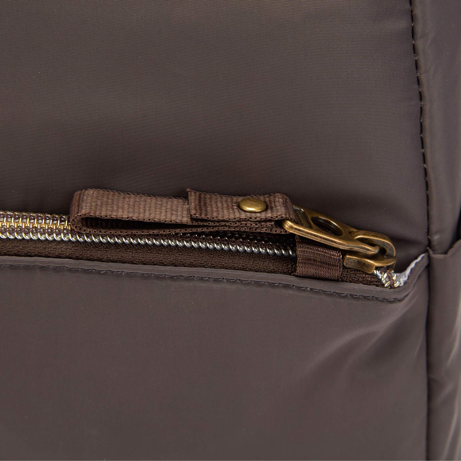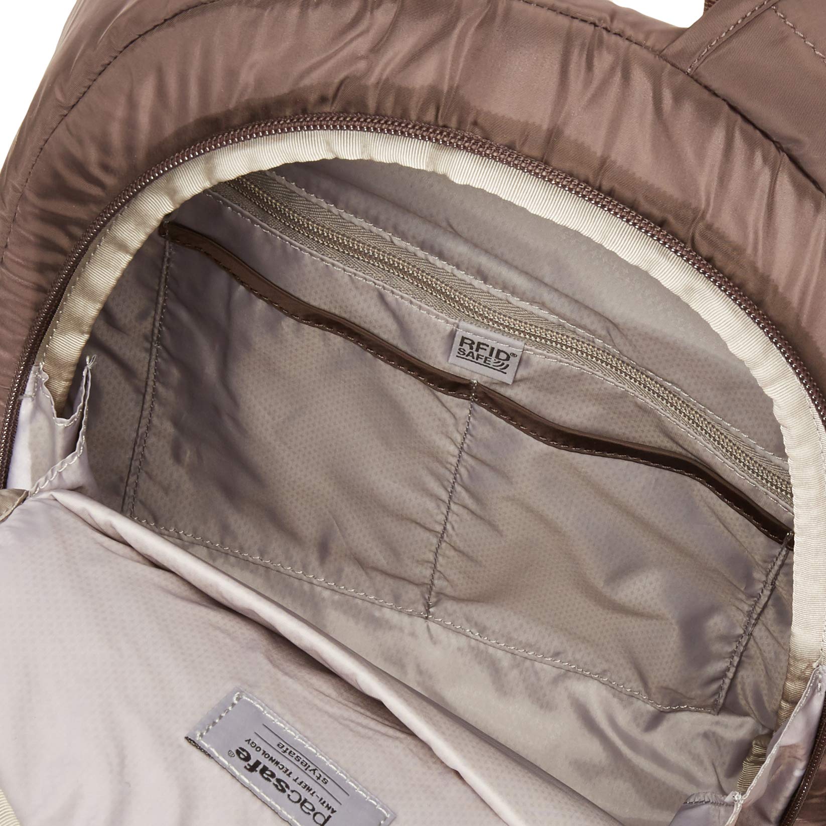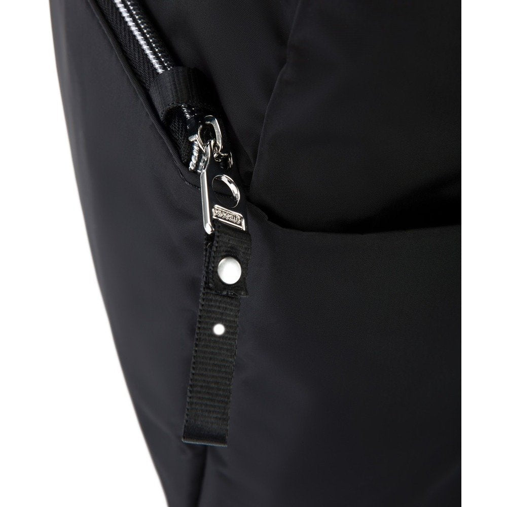 The Pacsafe Stylesafe Backpack features a main compartment zipper accessed from the back making it even harder to for pickpockets to access; Fits a 10 inch tablet; Hidden pocket; Phone pocket; Internal pockets to keep your gear organized; Internal attachment point for wallets and keys; Pen loop; Water bottle pocket
