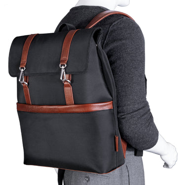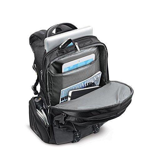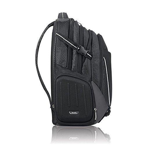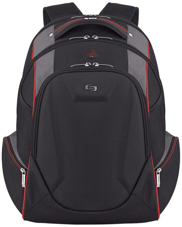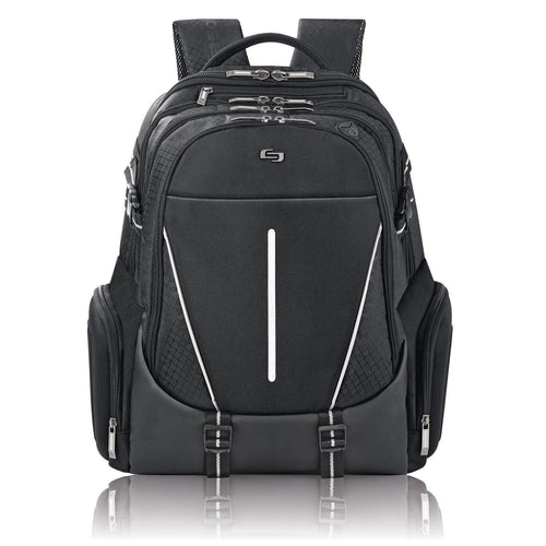 Style:17" Laptop and Tablet Backpack Solo 17.3 Laptop backpack provides thecarrier with many functional features that include a padded compartment thatprotects laptops up to 17.3 and MacBooks up to 17, dedicated interior pocketfor iPad or tablet, front zip-down organizer section, hard shell side zipperedpockets, reflective strip for increased visibility and a 5 year warranty.