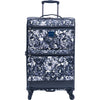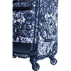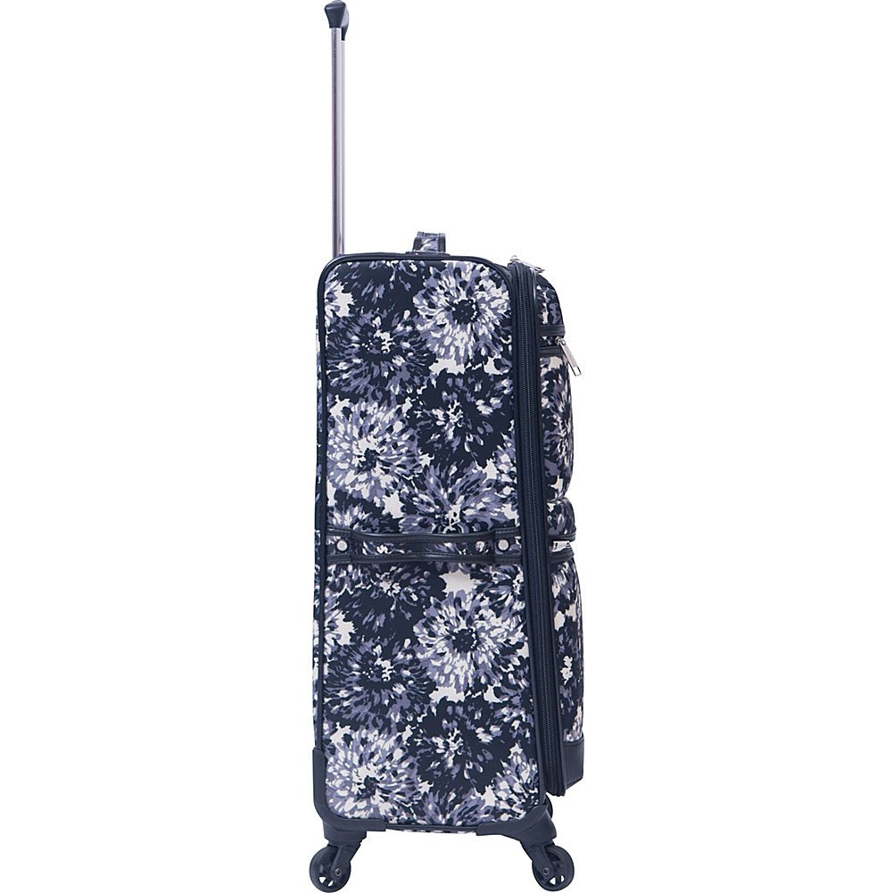 Isaac Mizrahi exclusive design, Isaac Mizrahi hardware, Durable fashion fabrics, Exterior & interior pockets that helps you stay well-organized, Fully lined interior, Top & side carry handles on all uprights, Spinner wheels on all uprights, Interior tie-down straps on all uprights, Fully lined interior, Push button handle system, Zipper Closure, , ,