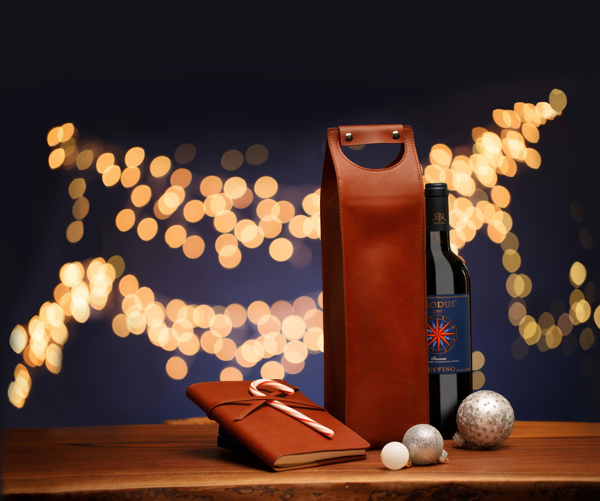 Show up to your next social event with the Bosca® Vachetta Single Wine Carrier.