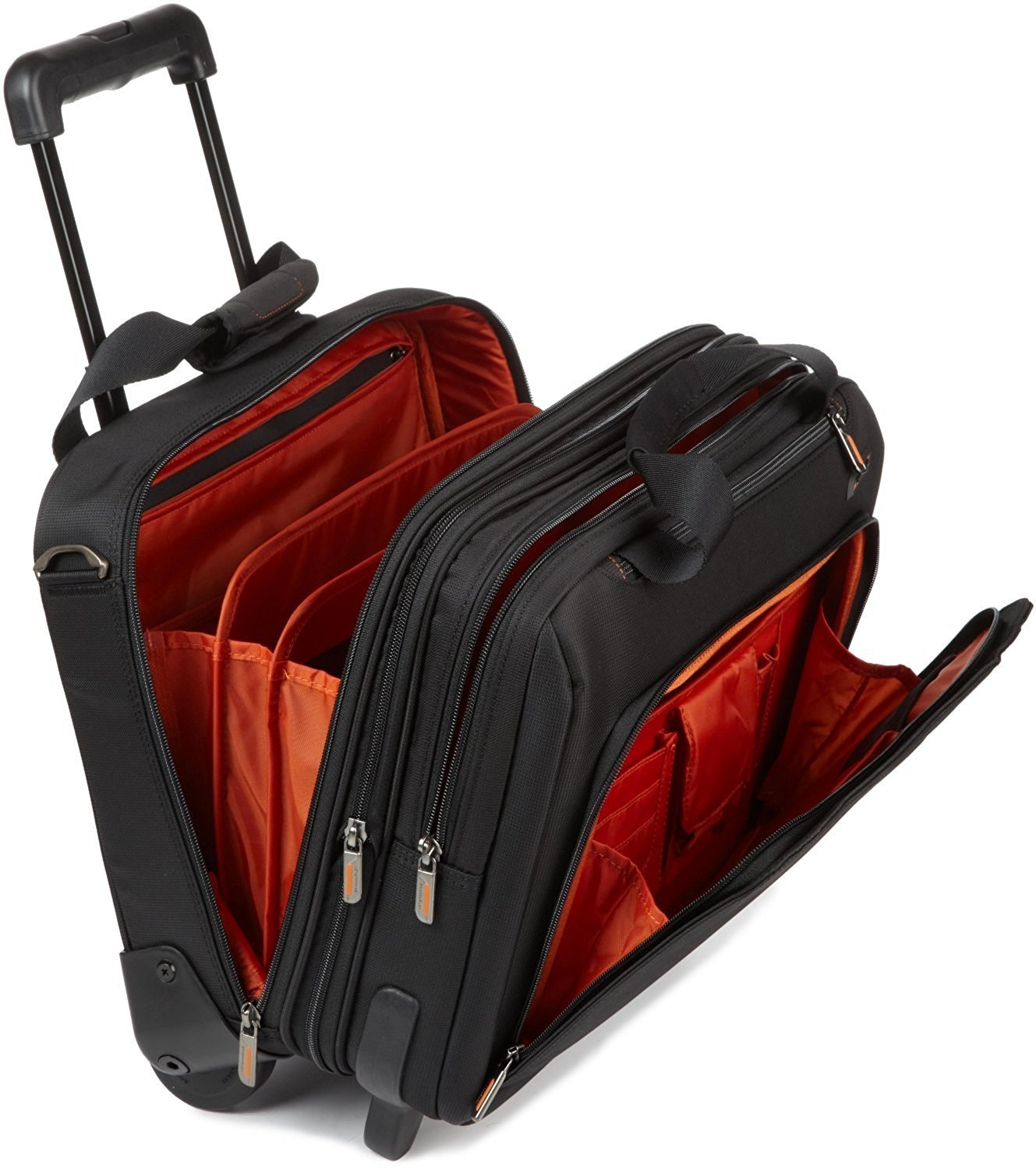 The Briggs Riley Verb Span Expandable Rolling Laptop Bag will hold everything you need to carry. This organized, easy-to-wheel case features a back section that expands and has file dividers. The center section secures your computer and the front section is for business and tech accessories.