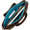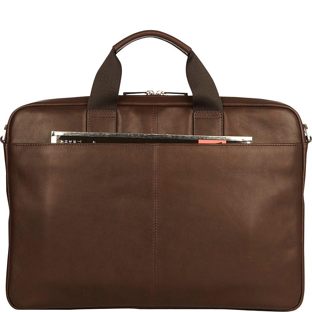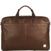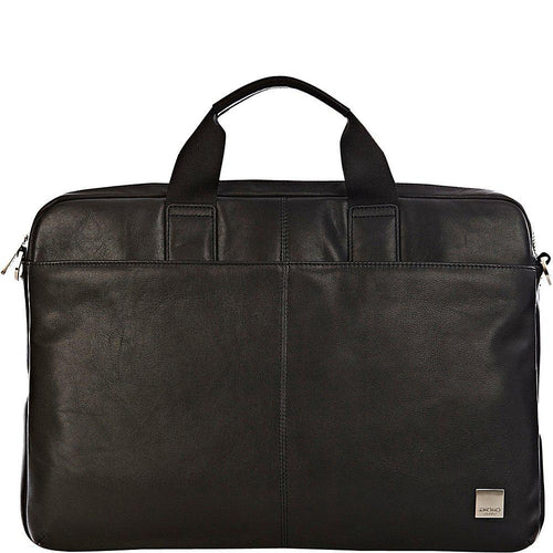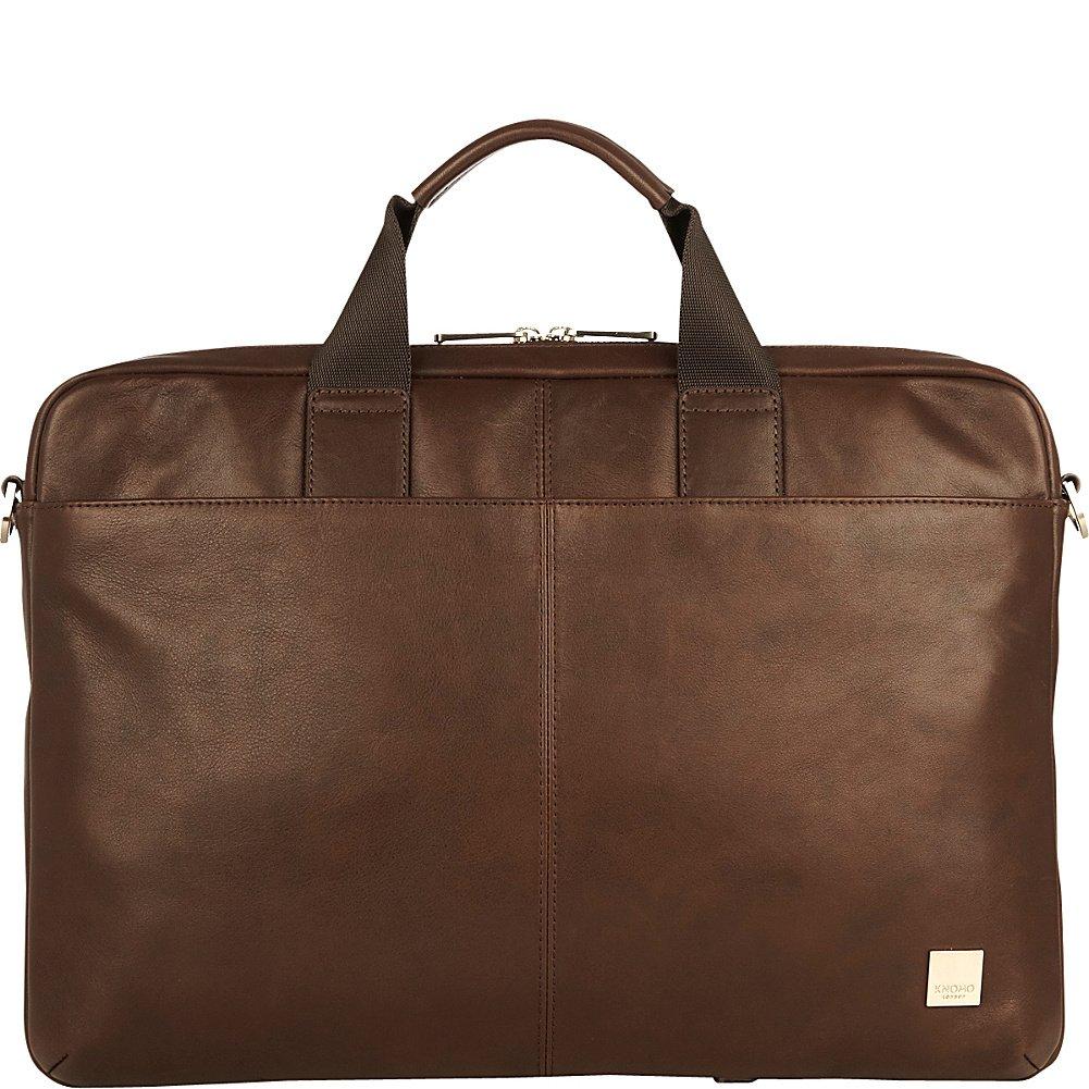 The Durham 15.6" Slim Brief from Knomo is a top-handle leather and canvasbrief with plenty of capacity for all of your personal necessities. Along withits 15" built-in protective padded sleeve and a top-zipper, there is a secondpocket with 3 elastic pouches to safely carry any of your smaller electronics.The two front zippered-pockets have multi-sized slip pouches, while the backhas a hidden snap pocket for quick access to your cell phone.