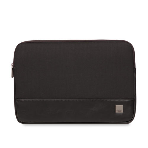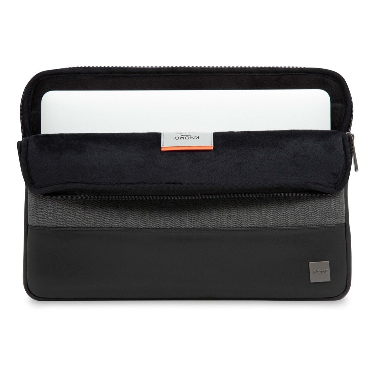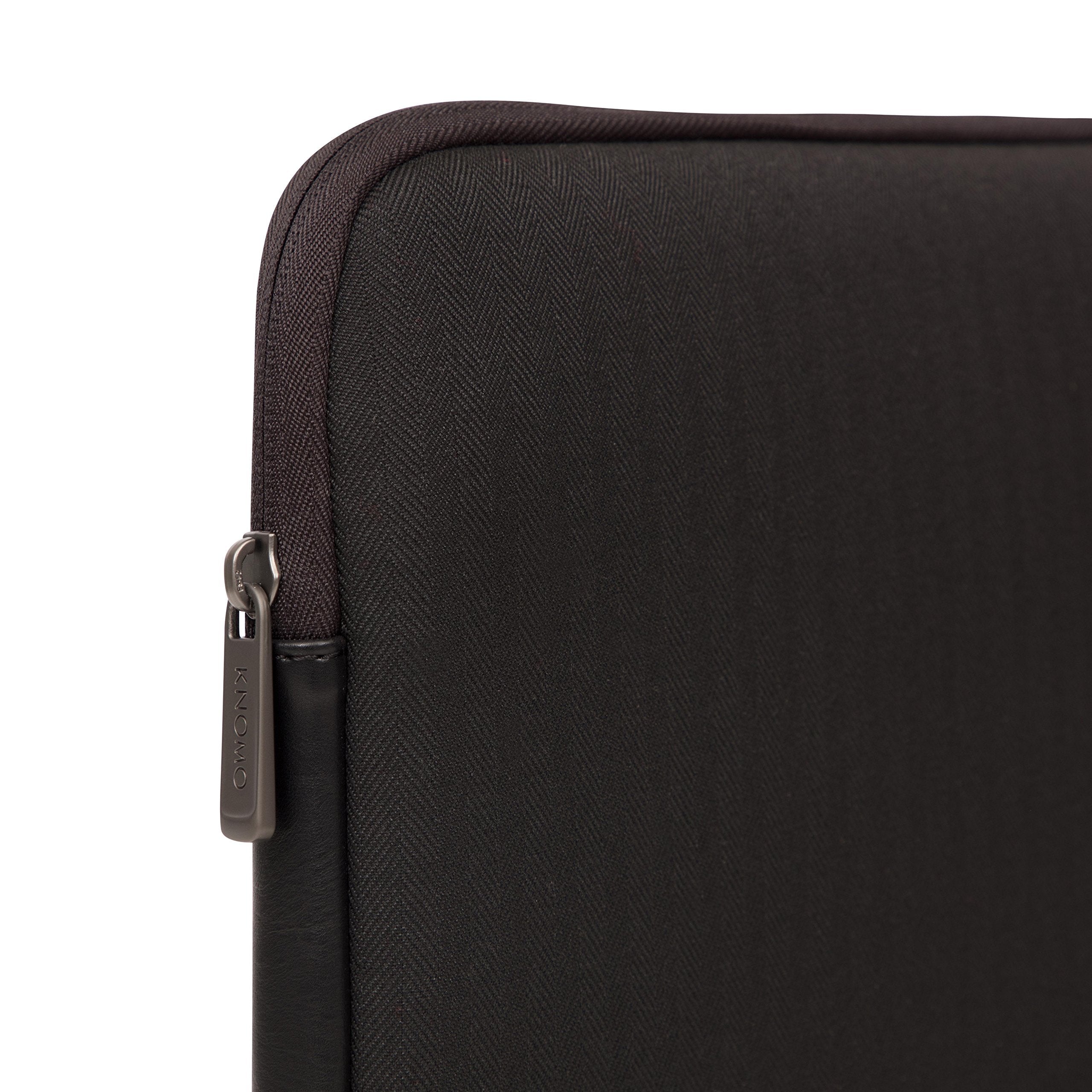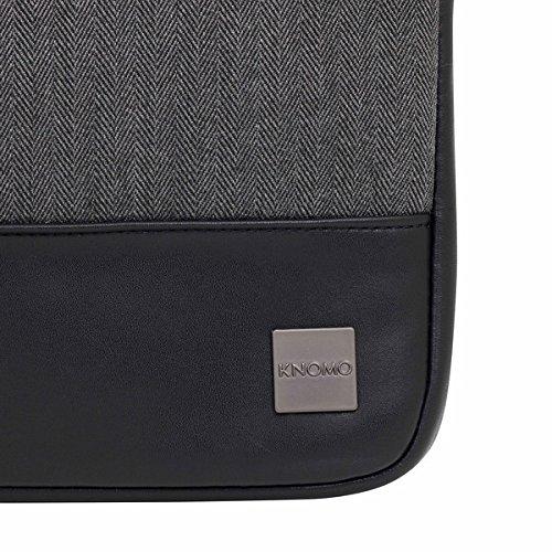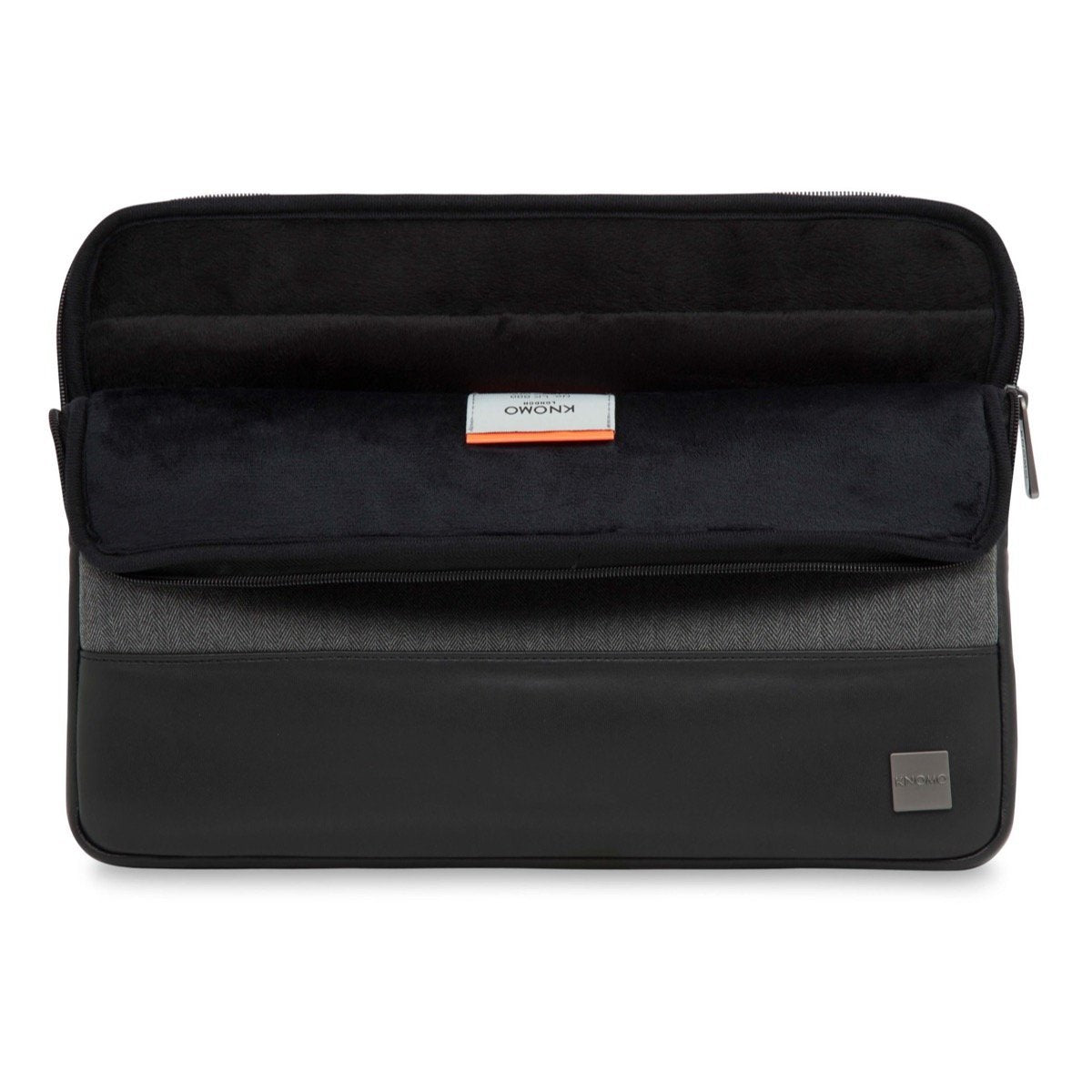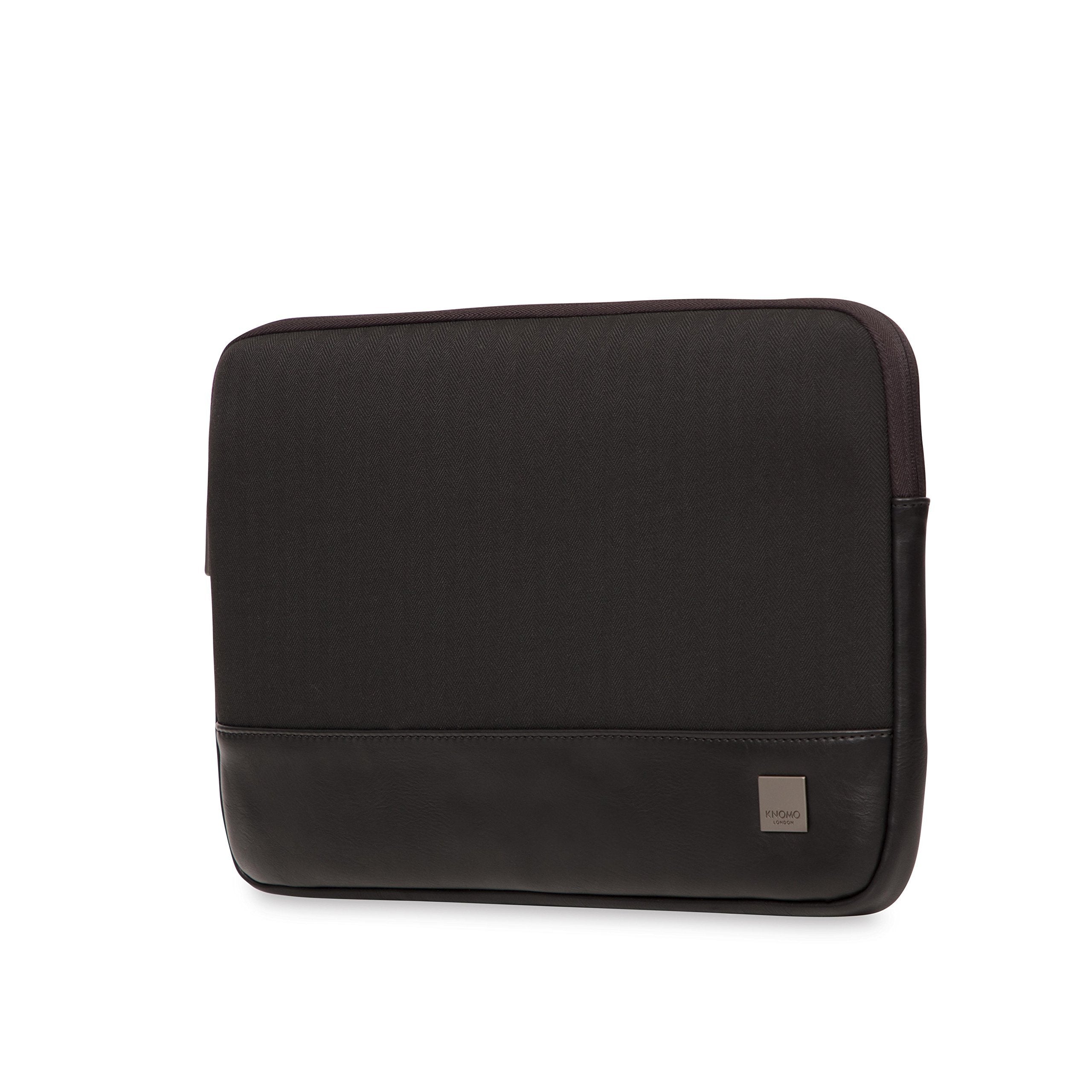 This KNOMO laptop sleeve is made from a durable herringbone twill polyester with a leather-look trim. Designed specifically to carry a Macbook 13-inch and 13 ultrabooks, theres a padded, faux fur lining inside, too, to cushion devices as theyre carried.
