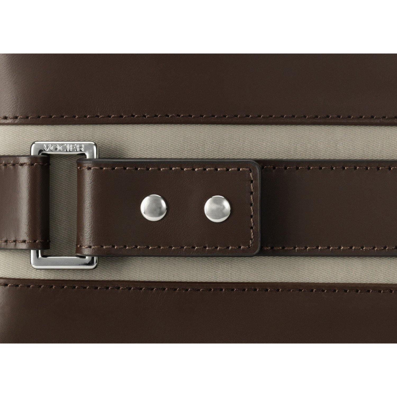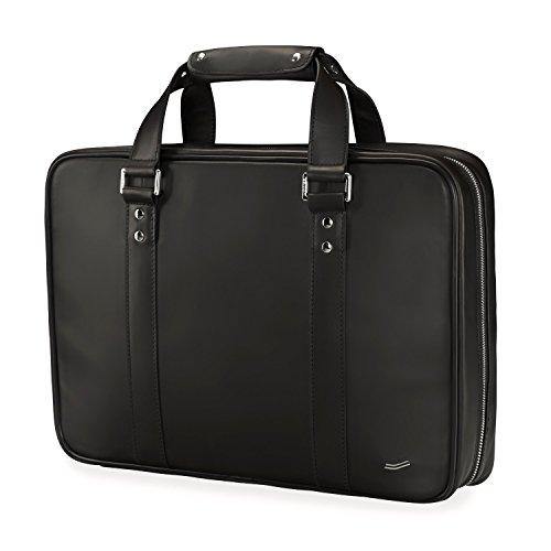 The F25 black leather laptop briefcase is hand-crafted from extremely durable Italian leather that will wear and age beautifully over time. It can accommodate up to 15 laptops in a separate, soft cotton pouch with a protective hood. The ample interior space is finished with a well-organized pocket system, and includes a leather strap with D-ring specifically for safely securing keys while youre traveling. The F25 also has a luggage sleeve that fits snuggly on telescoping luggage handles for secure, hands-free transport. Invisibly tucked behind the luggage sleeve is a small, zippered pocket to discretely stow passport, mobile phone, or other small valuables. Whether dressed-up, or more casual, this classic VOCIER black leather laptop briefcase will enhance any style.