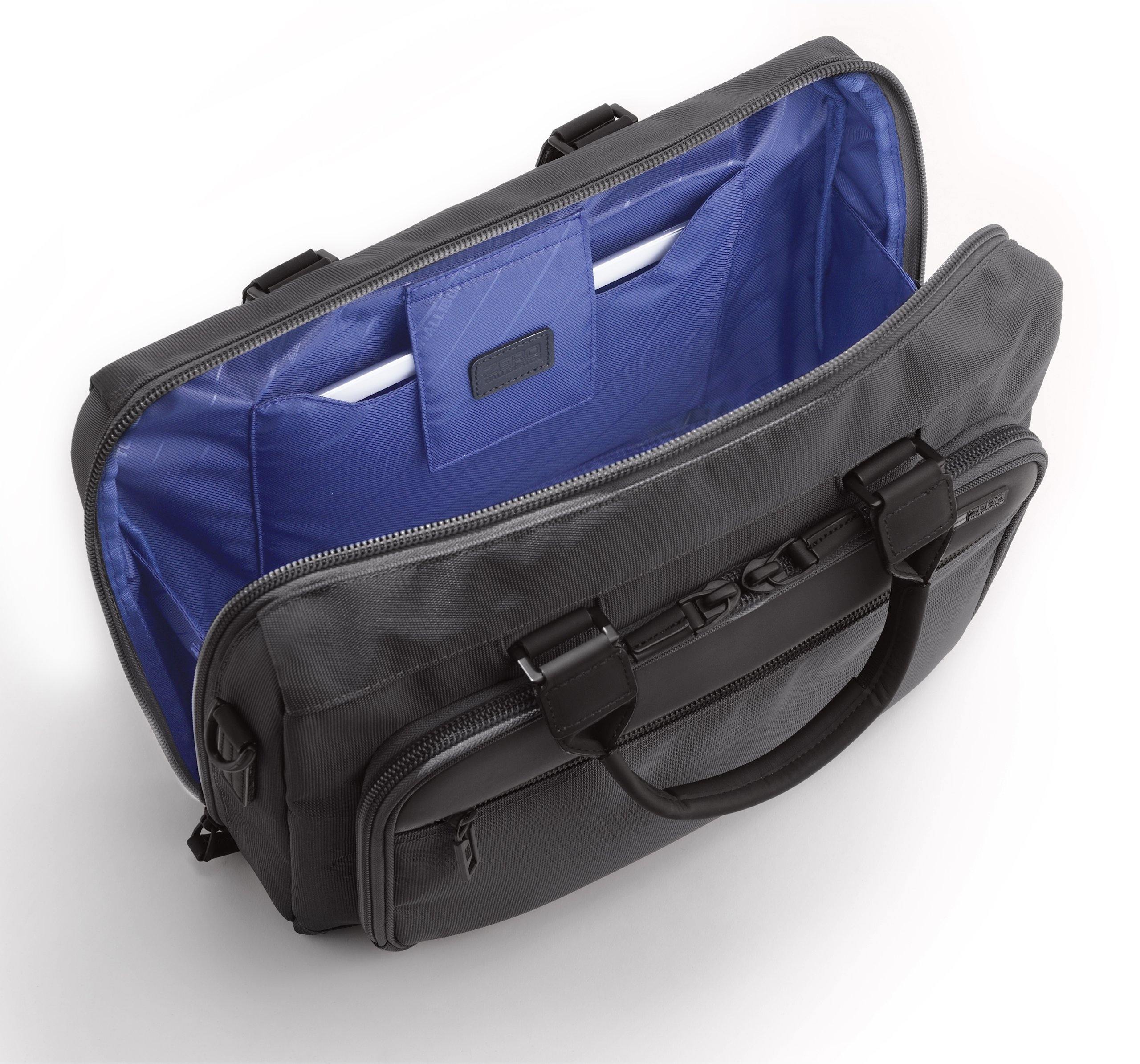 • Front pocket contains organization panel for quick access to frequently used items