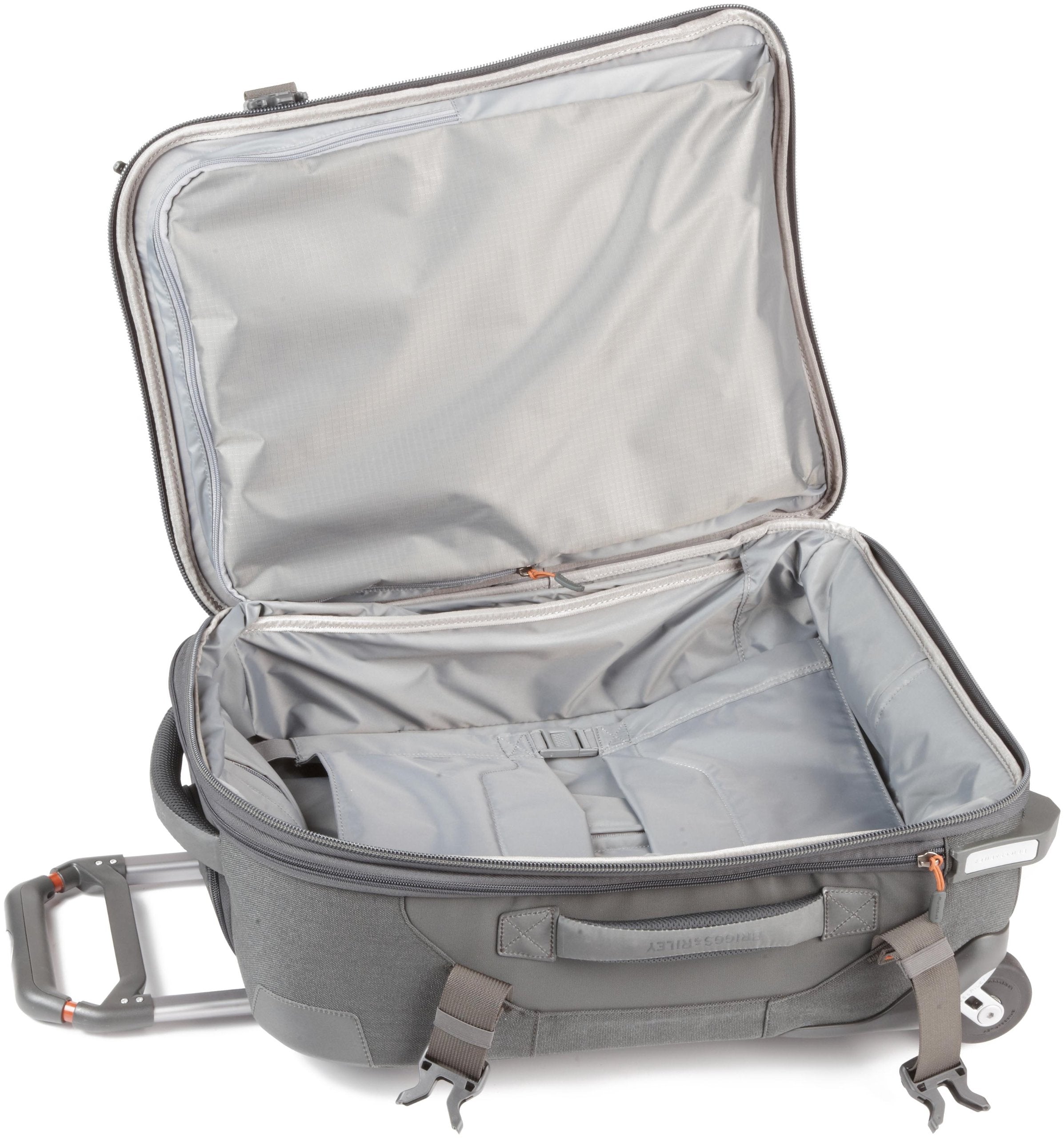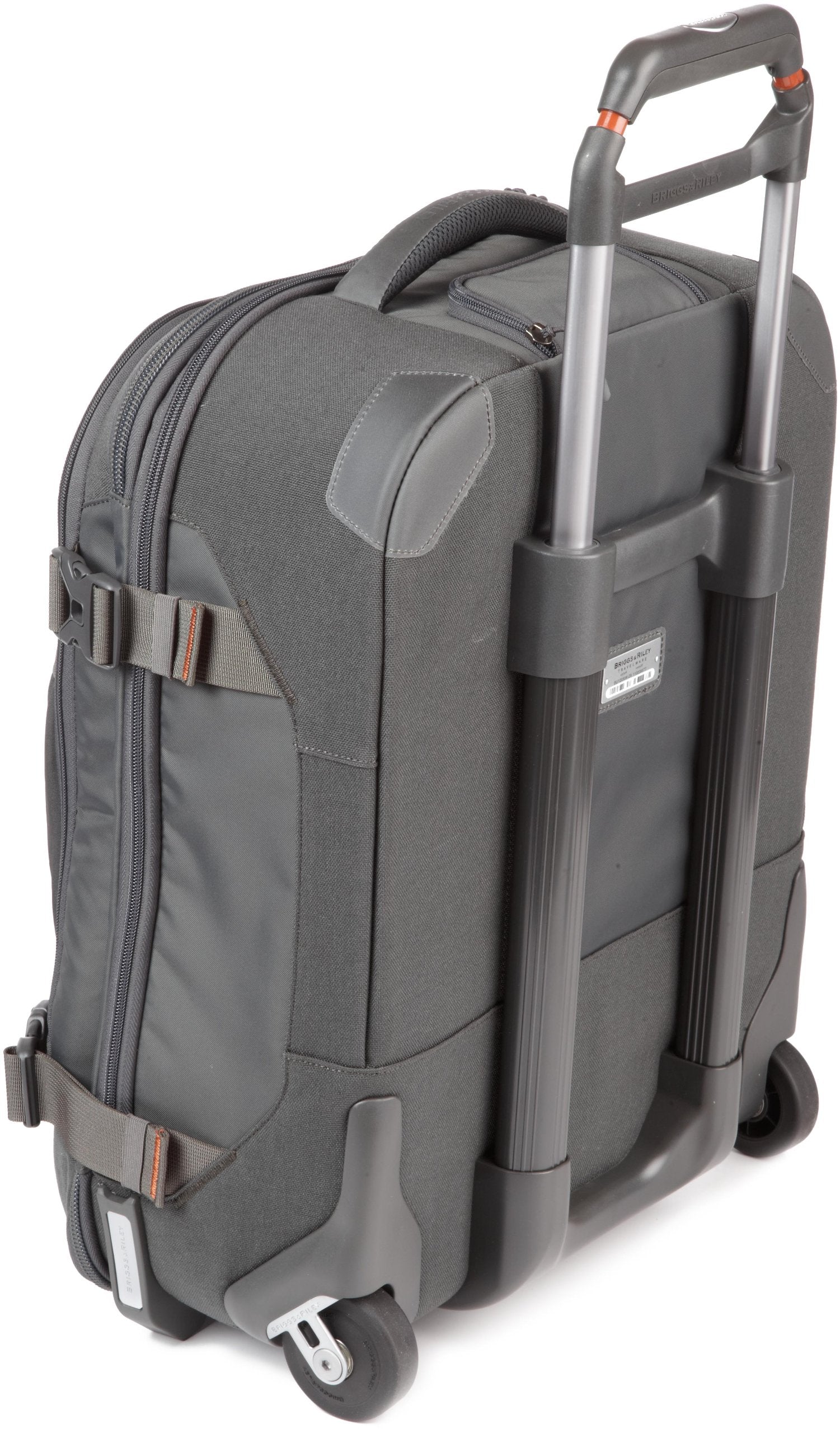 Product description BU119-25 Color: Slate Features: -Lightweight anddurable.-Outer fabrics resist wear, water, dirt and abrasion.-Outsider handlefor a greater interior packing space.-Multi-bag docking system to quicklyconnect bag to a non-rolling bag.-Technical-grade, durable hardware.-Self-repairing YKK zippers and ergonomic zipper pulls.-Deep slip pocket withelastic gusset for quick storage.-Generously cushioned top and side grabhandles.-Fabric slip-handle on bottom of bag for easy handling.-Rugged, low-profile wheels easily handle an array of terrains.-Retractable ID tag concealspersonal information.-Wide nylon compression panels to secure contents.-Largezip pocket is ideal for shirts or laundry.-Meets carry-on regulations for mostairlines.-Perfect for a 1-2 day trip.-Multiple grab handles with moisturewicking mesh lining surround bag for ease of carry andloading/unloading.-Inside top lid pocket keeps smaller essentialsorganized.-Padded sleeve for laptop storage.-Expandable slash pocket perfectfor light jacket, guide books or maps.-Capacity: 1940 cu. in.. Includes:-Add-a-bag strap included. Construction: -Constructed of 1000D nylon and 420Dpackcloth nylon. Dimensions: -Front compartment stores up to a 16''laptop.-Dimensions with wheels and handle: 20.5'' H x 14'' W x 10.3''D.-Laptop dimensions: 2'' H x 15'' W x 12'' D.-Dimensions: 19 '' H x 14 '' W x9 '' D, 6.8 lbs. Warranty: -Warranty: Lifetime warranty. From the ManufacturerRolling Luggage