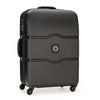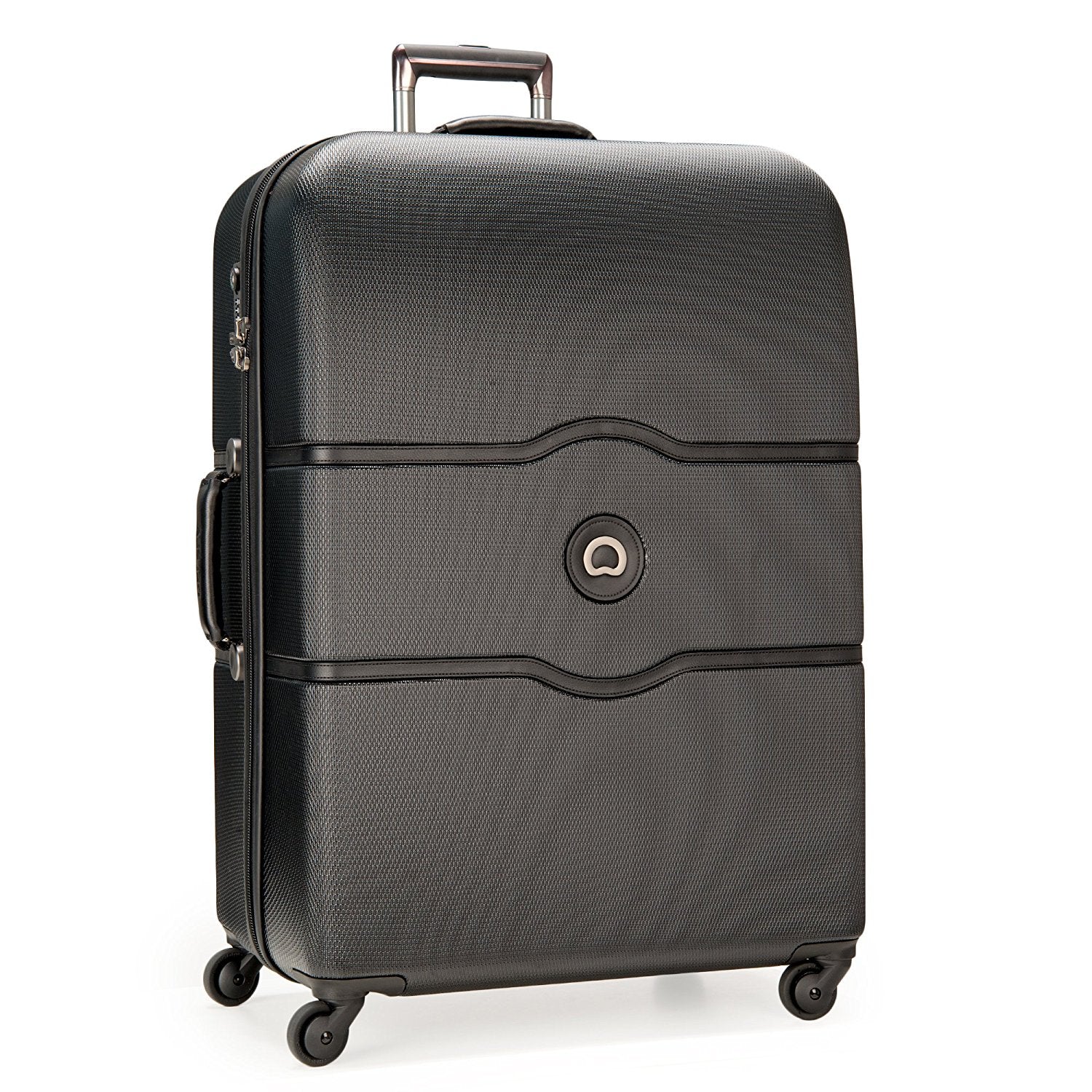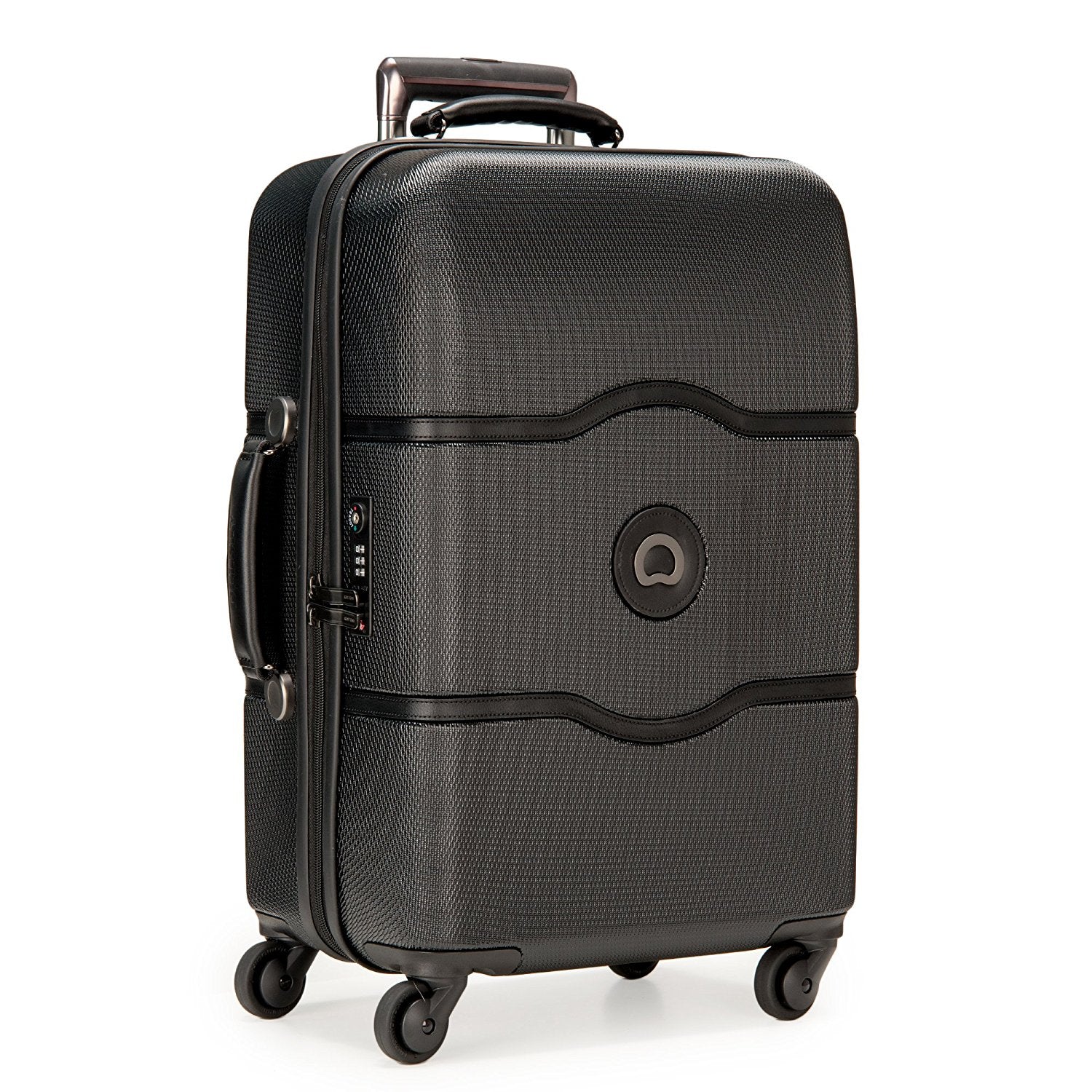Timeless and elegant, chatelet is made from resistant 100% bayer makrolonvirgin polycarbonate and is designed with parisian flair. This 19 inchinternational carry on features a unique stop and go brake system whichprevents your bag from drifting away while allowing to roll it on two backwheels. Silent-running, spinner wheels add comfort to your journey. Tanleather accents on the front panel, handles and zipper pulls add extra panacheand style to your travel ensemble. The interior of this case is very luxuriousand is fully lined with a red soft touch lining. The inside is split into twolarge compartments with tie down web straps to organize clothing and minimizewrinkles on one side and a zippered compartment on the other with an extrazippered mesh pocket for small accessories. You will also find two smallaccessory bags and a travel hanger inside the bag. For maximum security,Delsey has included a recessed tsa accepted lock that allows tsa agents tosearch your bag without damaging the lock. Fits in the overhead compartment ofmost international airlines. Worldwide limited lifetime warranty.