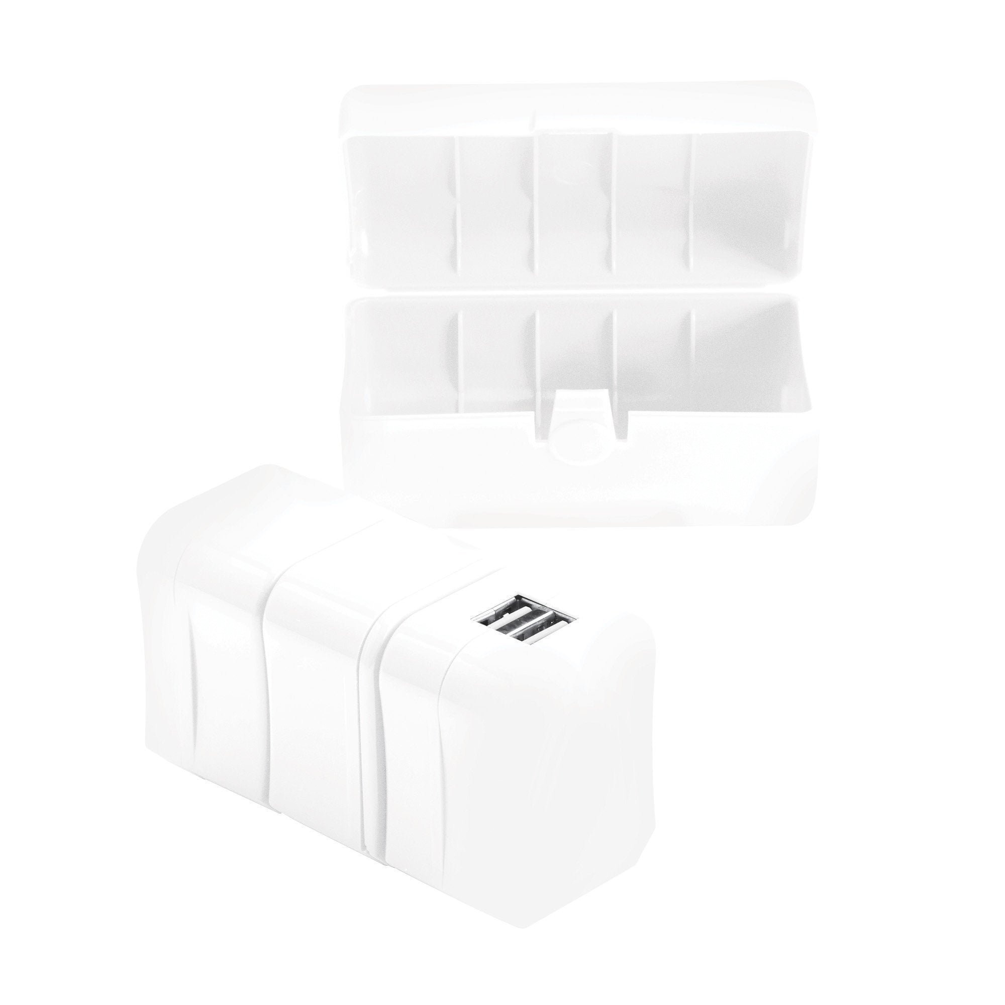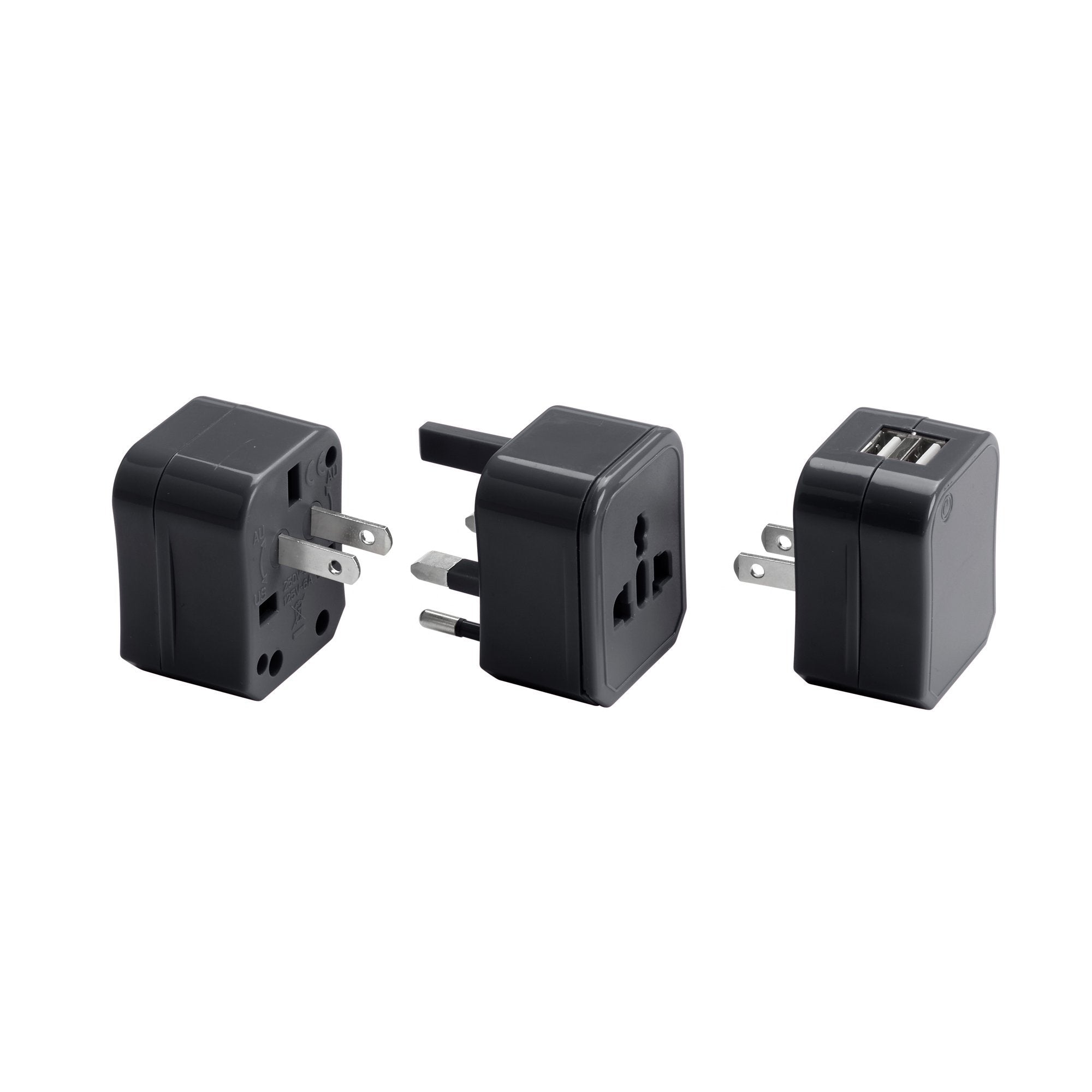 The Global Adapter with Dual USB Charger is a compact all-in-1 unit, thatincludes the four most common global plug configurations and a type a usbcharger to eliminate the need for carrying multiple adapters. Built-in surgeprotection with surge and voltage indicator lights. The USB power rating: 2.4Ais powerful enogh to charge most phones and tablets.