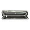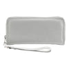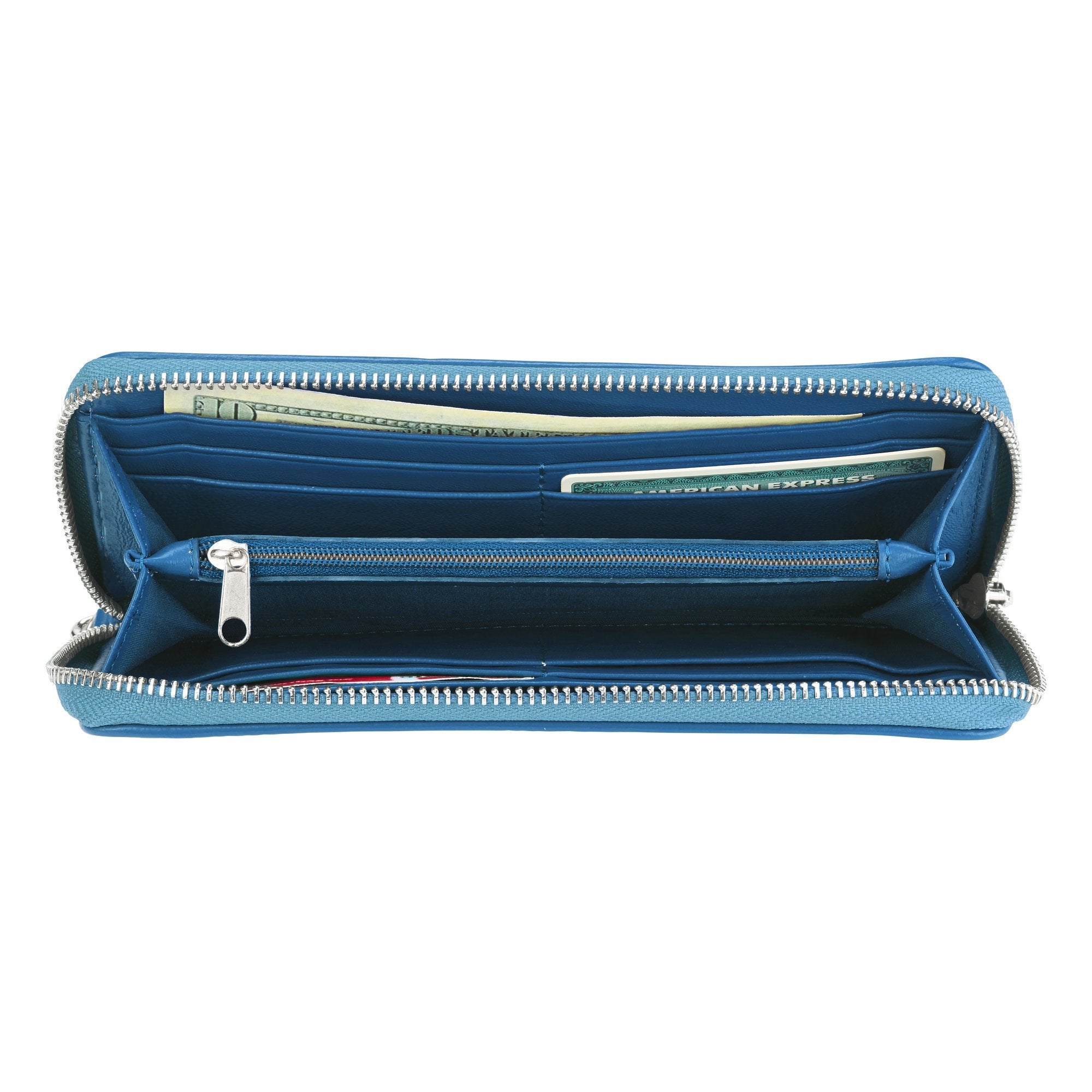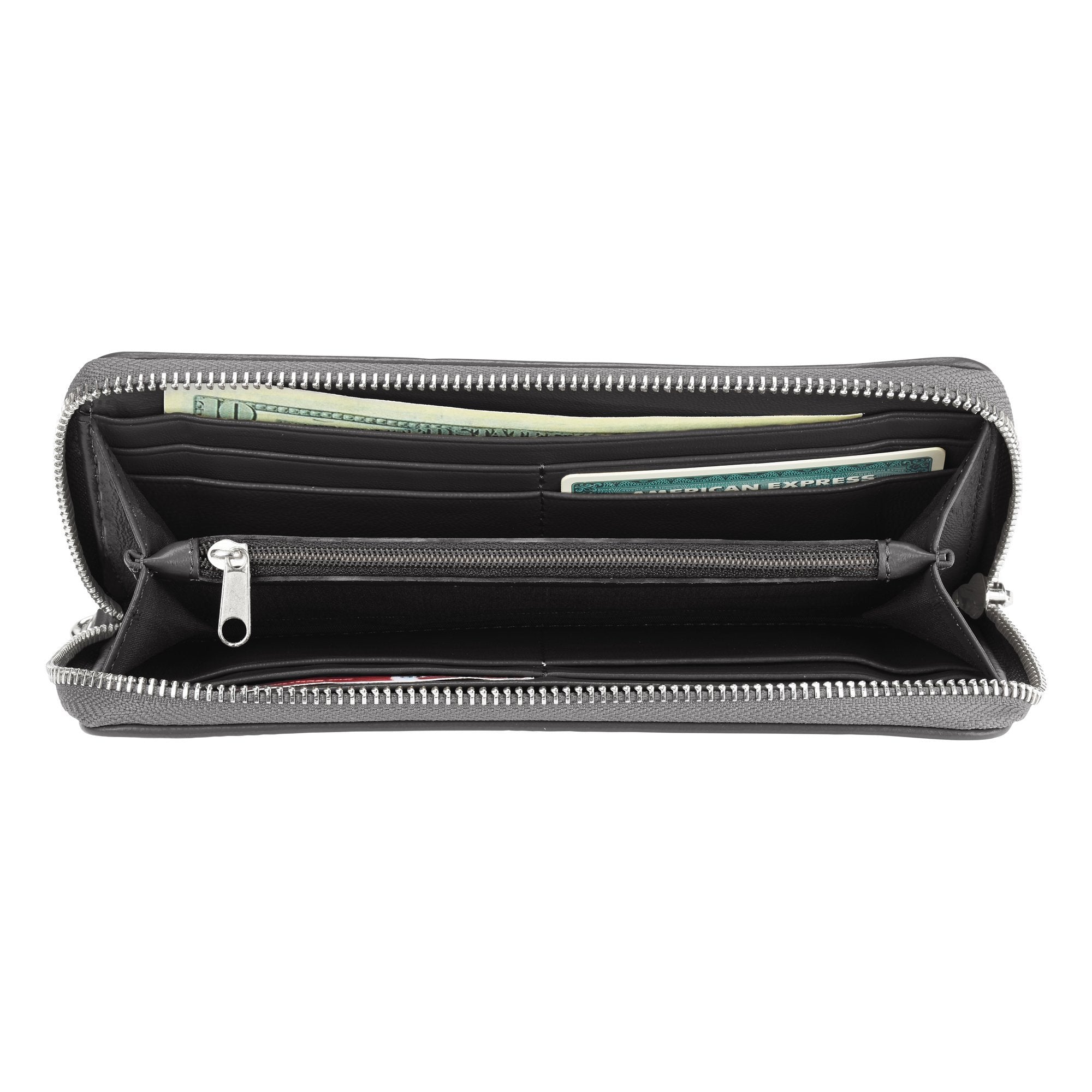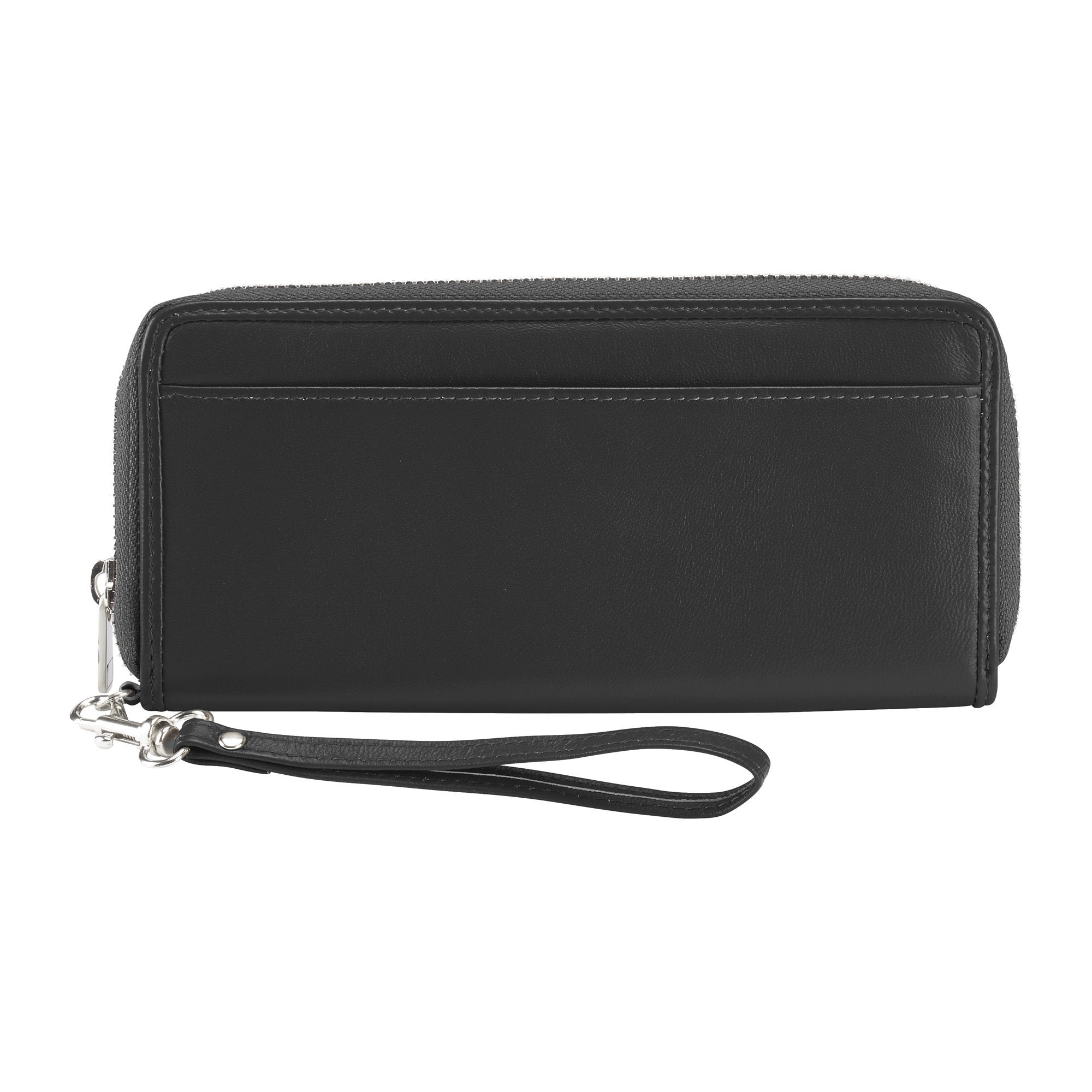 Made with durable leather and rfid-blocking materials, this clutch is perfectfor everything from overseas adventures to shopping and fitness classes. Itsspacious room accommodates phones, extra batteries, passports, makeup,feminine products, a set of keys, and more. The interior pockets hold drivers'licenses, credit cards, gift cards, currency, coins, etc. Designed withspecial lining to block 13.56mhz frequencies, the standard for most creditcards and passports, you'll be protected from thieves who try to steal yourpersonal information without your knowledge. Even with the essentials, itwon't become too bulky, and can be carried on its own with the wrist strap -freeing up your hands - or put into a travel bag for later use. Its elegantsimplicity allows it to be worn with both dressy outfits and casual loungewearalike. Whether you need a clutch to get you through your meetings at work allday long, or you want something that will withstand the abuse of multiplebusiness trips, this lightweight and portable clutch is a durable yet stylishoption to keep you on the go.