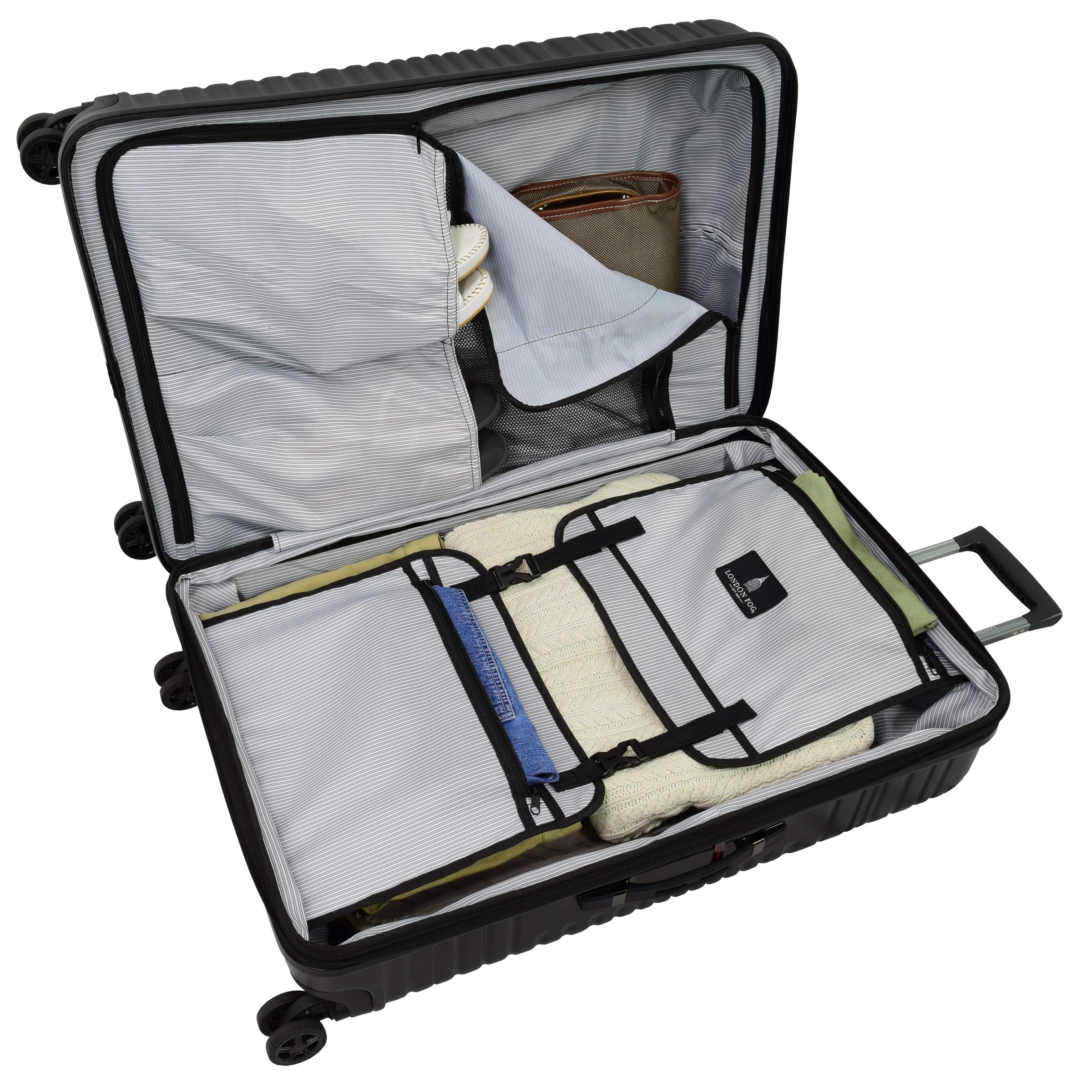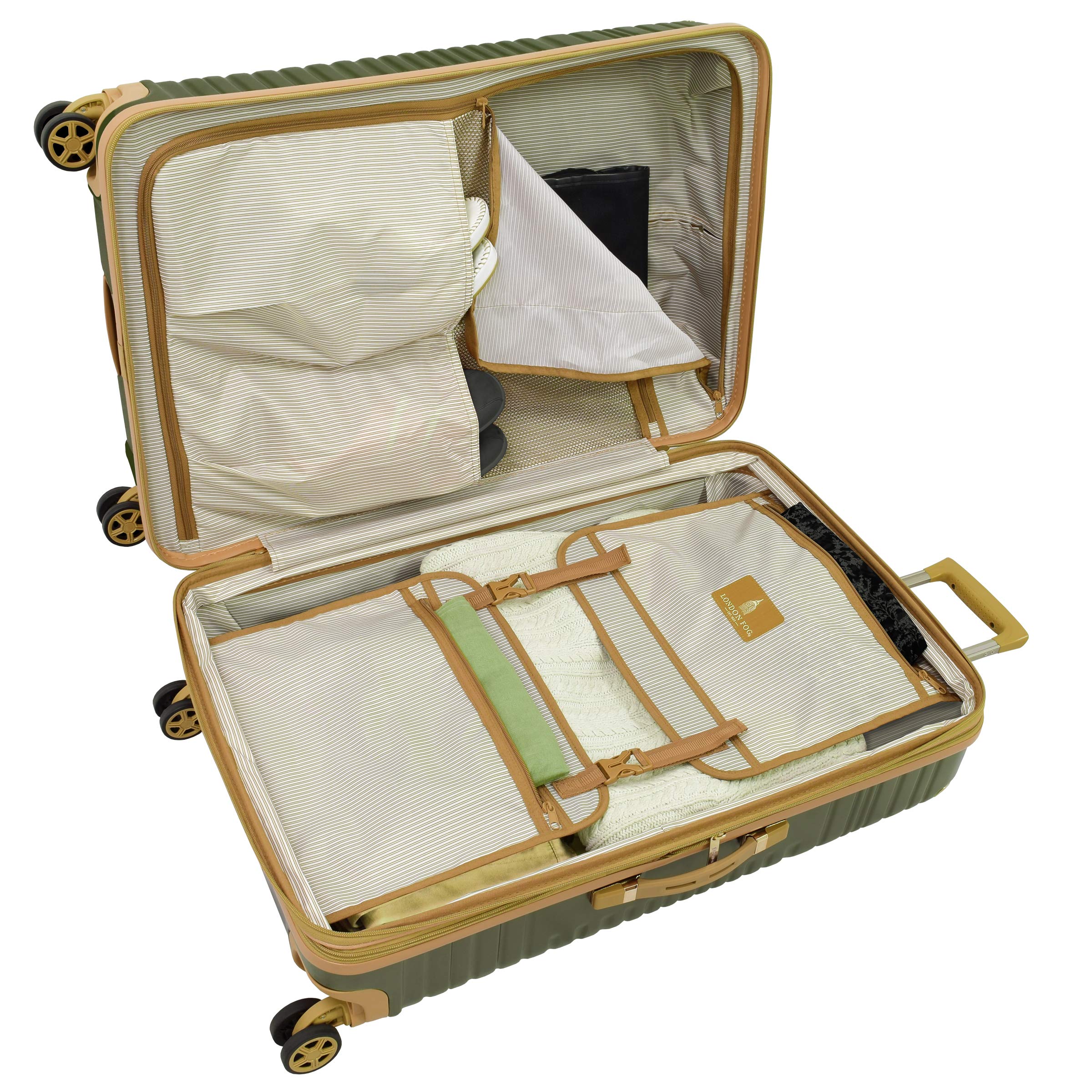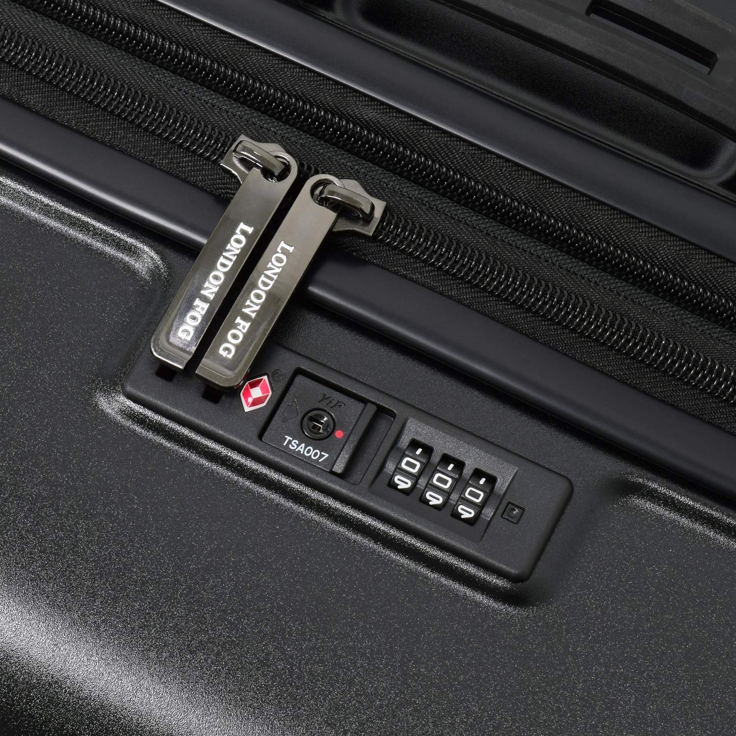 • 8-recessed spinner wheels with Control Track Self Aligning Technology. With the sound of a click, you'll know that the wheels are adjusting into a straight line to help ensure easy maneuvering throughout your travels. Flush mounted TSA approved combination locks. Full London Fog stripe lining.