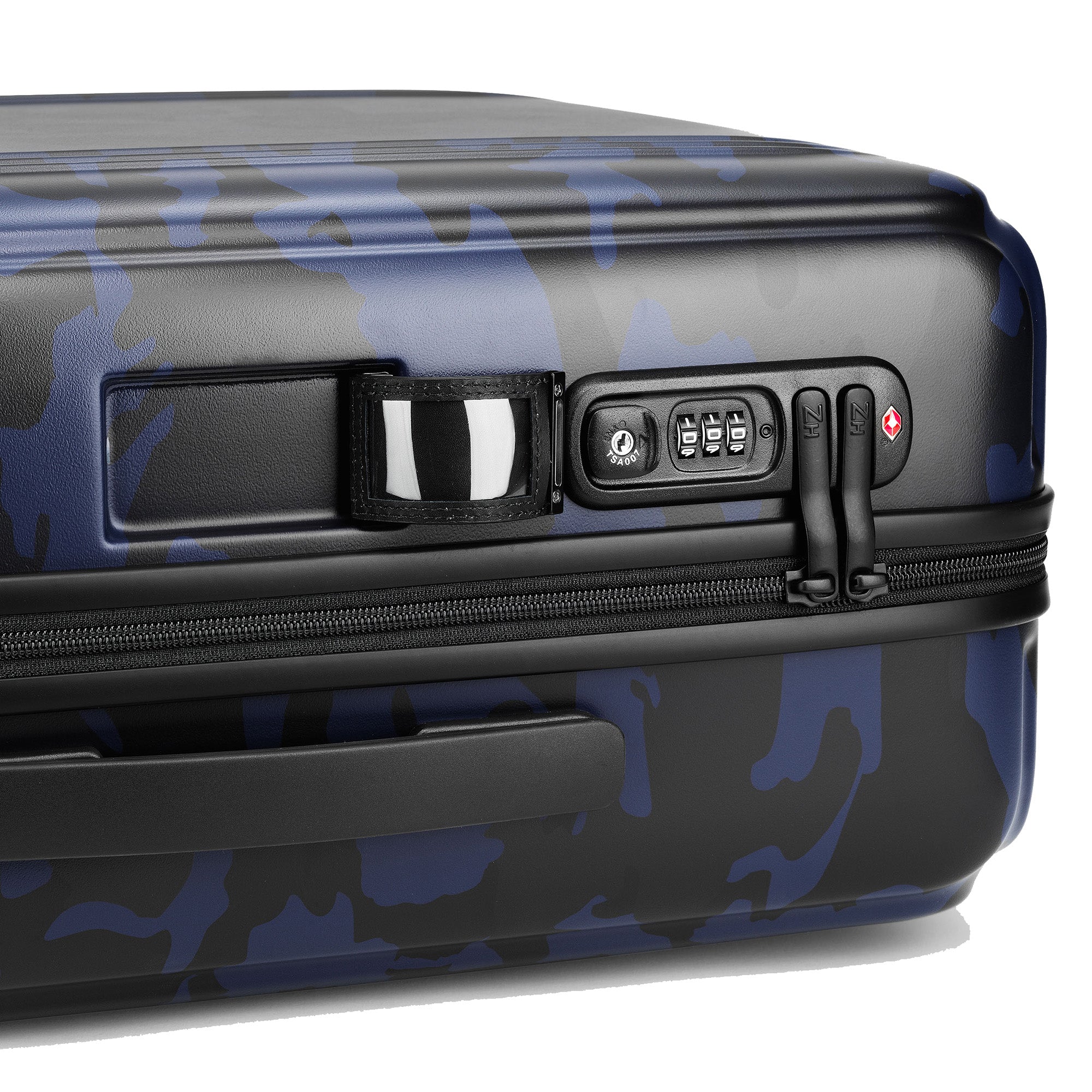 • ZH Chassis with scalloped grip handle near wheels for easy lifting from trunk or overhead. TSA approved custom cushion-cut latch lock with combination. Three-stage retractable telescoping handle with ergonomically-positioned single button release.