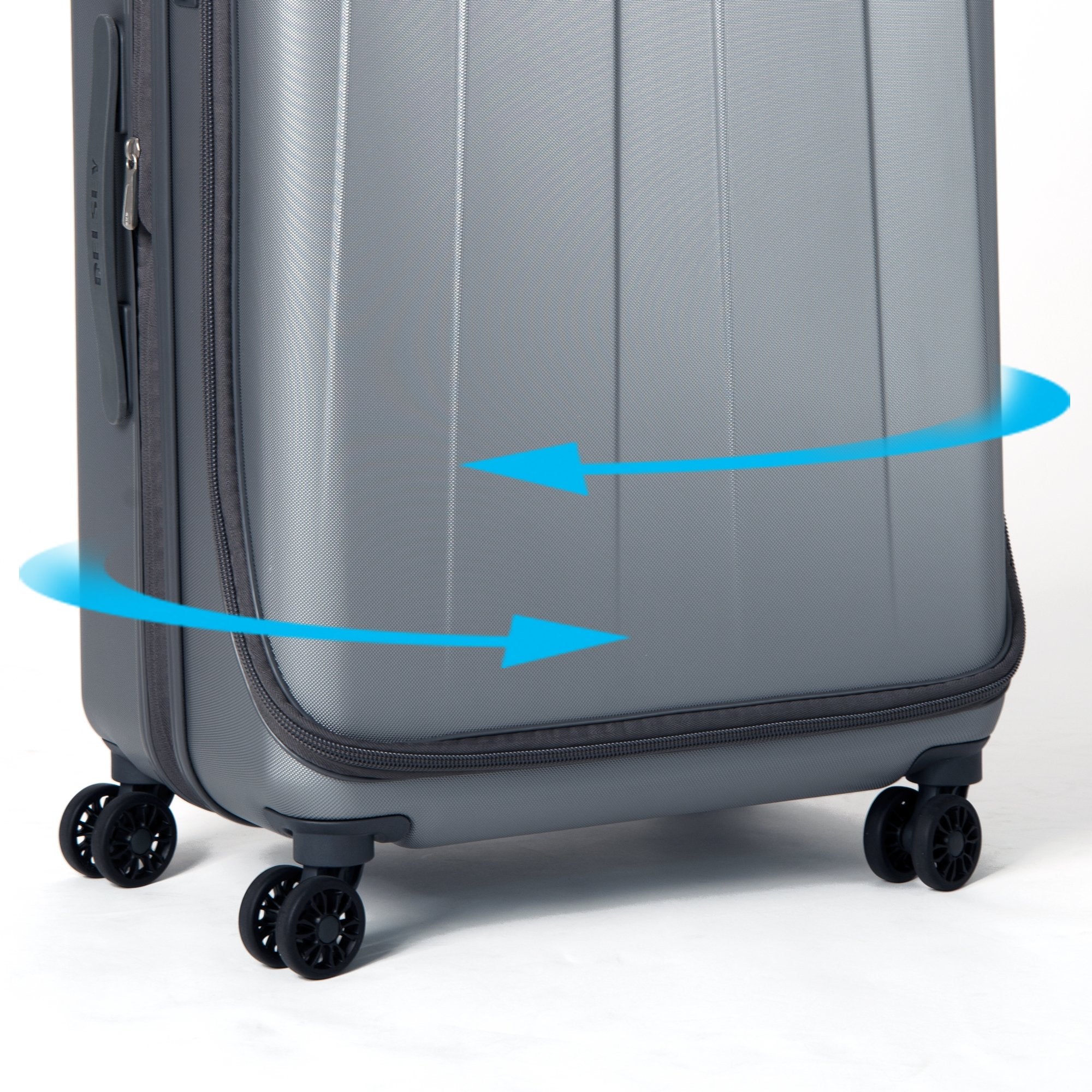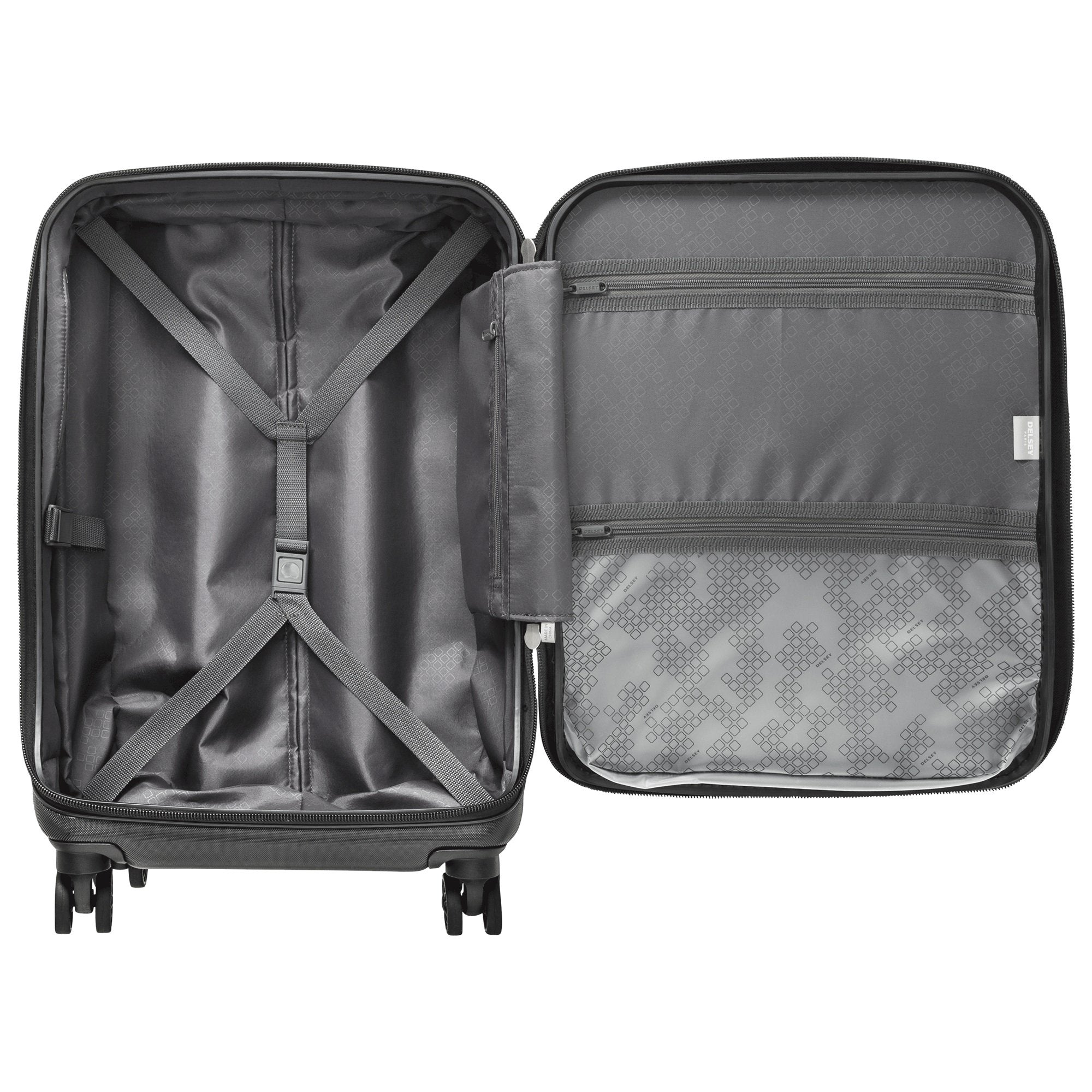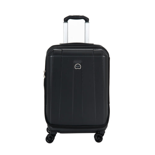 Made from lightweight 100 percent polycarbonate, a highly impact-resistantplastic. Features a unique top lid opening. Fits in most overheads ofinternational airlines. Features a large front pocket with built-in paddedsleeve for up to 15.6 inch laptop. Main compartment expands 2 inches. Silentrunning double spinner wheels. Telescoping handle has been designed to fit inthe palm of the hand. Recessed TSA-accepted combination lock