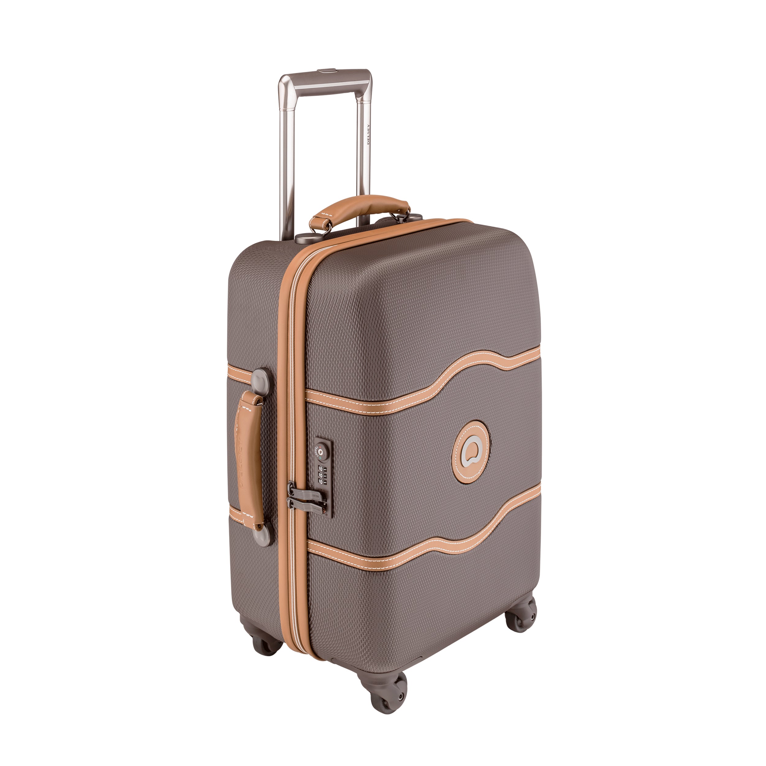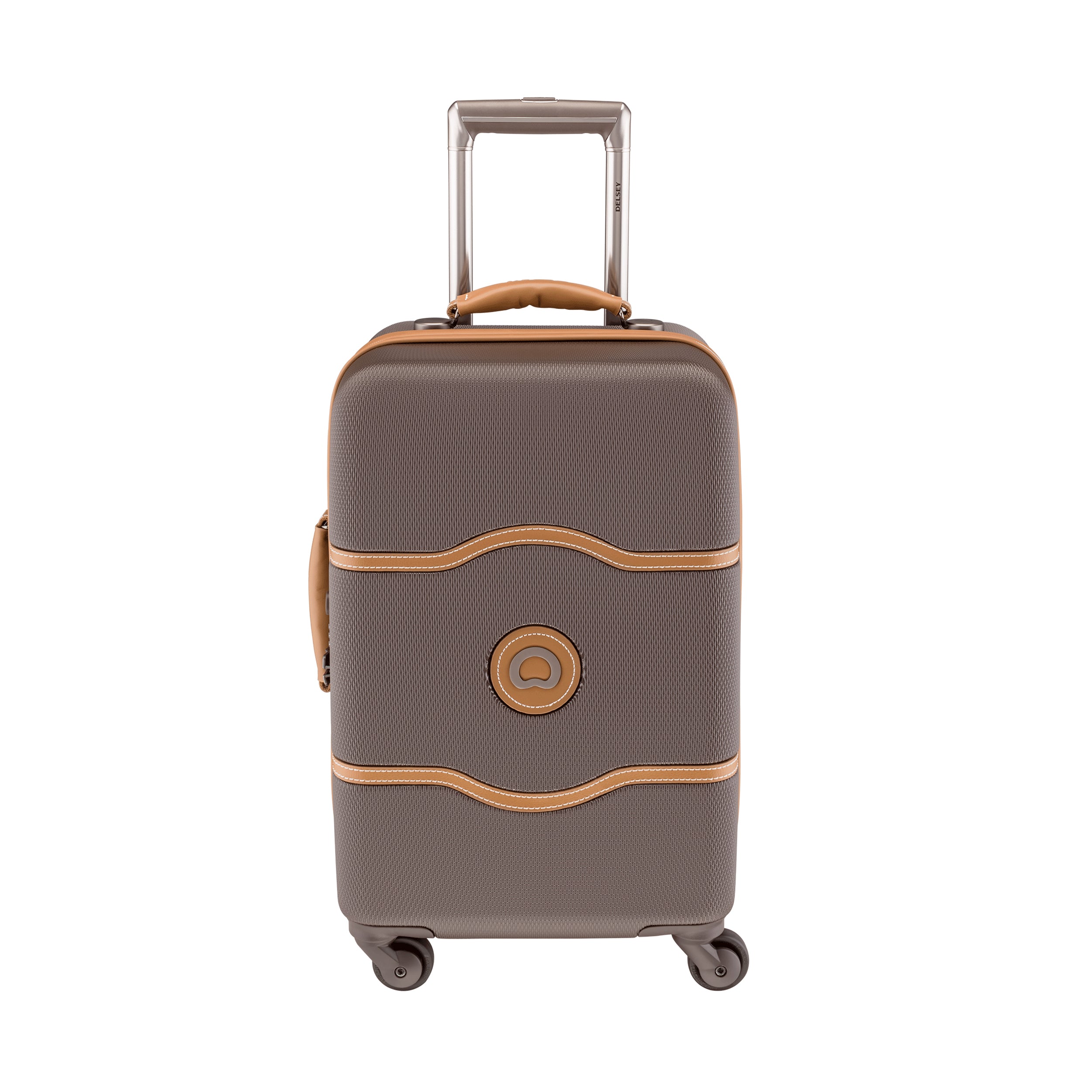Timeless and elegant, chatelet is made from resistant 100% bayer makrolonvirgin polycarbonate and is designed with parisian flair. This 19 inchinternational carry on features a unique stop and go brake system whichprevents your bag from drifting away while allowing to roll it on two backwheels. Silent-running, spinner wheels add comfort to your journey. Tanleather accents on the front panel, handles and zipper pulls add extra panacheand style to your travel ensemble. The interior of this case is very luxuriousand is fully lined with a red soft touch lining. The inside is split into twolarge compartments with tie down web straps to organize clothing and minimizewrinkles on one side and a zippered compartment on the other with an extrazippered mesh pocket for small accessories. You will also find two smallaccessory bags and a travel hanger inside the bag. For maximum security,Delsey has included a recessed tsa accepted lock that allows tsa agents tosearch your bag without damaging the lock. Fits in the overhead compartment ofmost international airlines. Worldwide limited lifetime warranty.