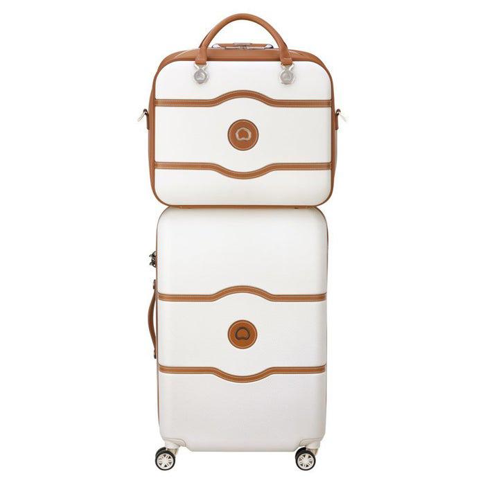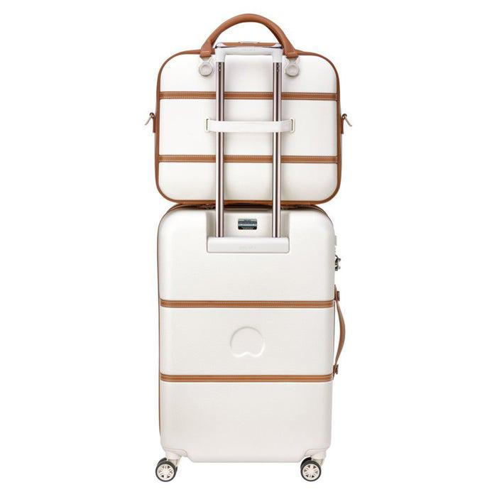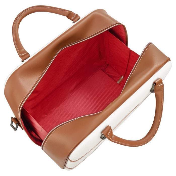 Offering a timeless and elegant look for the Luxe traveler, the chatelet softair collection, an extension to delsey's iconic, vintage-chic chatelethardside collection allows travelers to coordinate and complete their look onthe go. Vegan-leather trims and the deluxe soft-touch interior are the perfectaccents to this stylish duffel bag. The bag features a large exterior pocket,2 side pockets for last minute items, 2 carry handles as well as anadjustable, padded shoulder strap for easy mobility. The large zipperedopening creates a spacious interior equipped with a zippered pocket, aremovable pouch for small accessories and a toiletry bag. A smart band on theback slides over the tubes of a rolling luggage for maximum convenience.