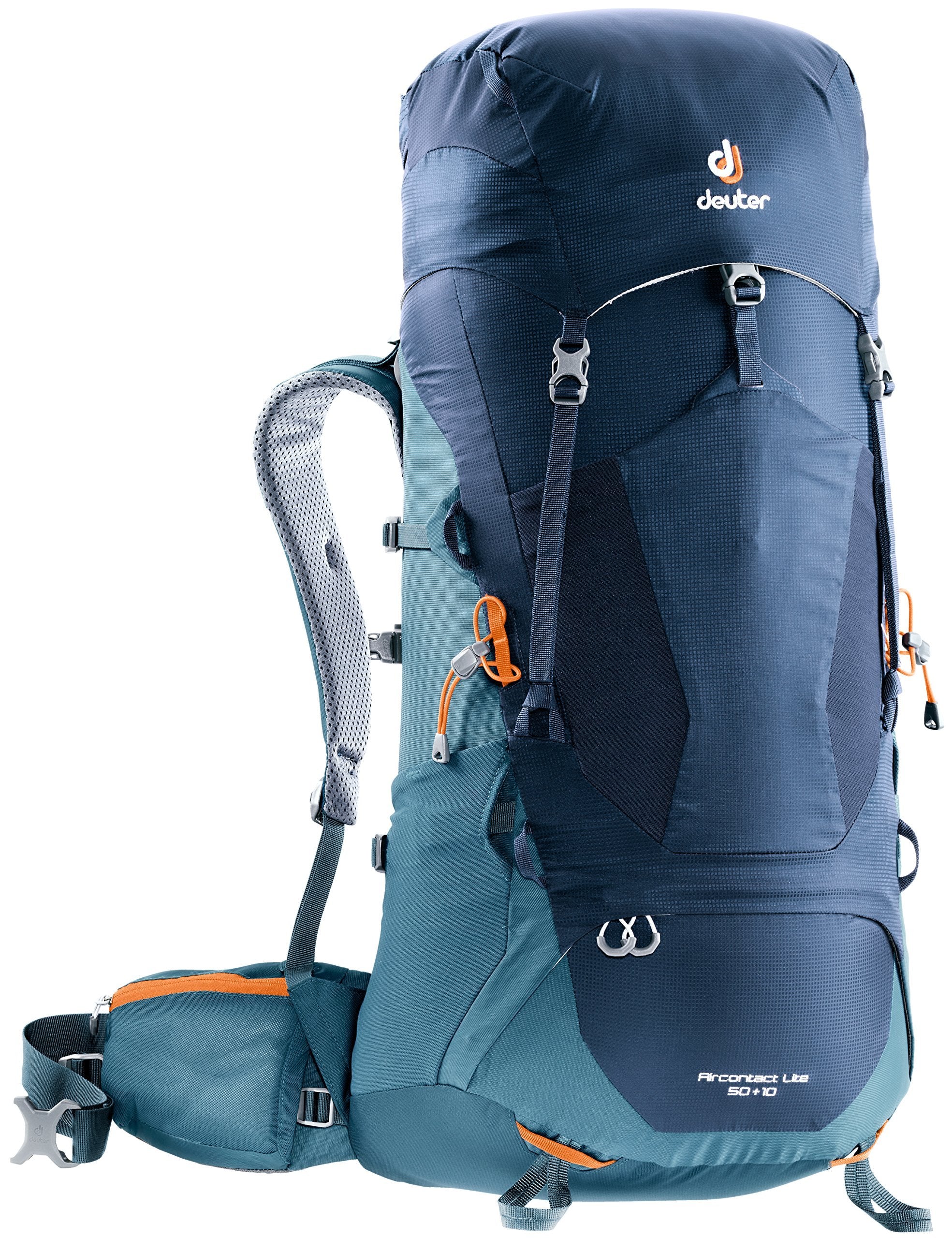 The hyper-functional Aircontact Lite 50 + 10 delivers sophisticated designwith a perfect balance between carrying comfort, weight, and ventilation. Itsaccommodating 50 + 10 liter capacity grants backpackers the freedom to packmore and trek further, while the innovative Aircontact Lite back system makesheavy loads manageable, providing ideal dissipation of damp air, minimizingperspiration, and maximizing endurance on extended alpine climbs. Super-comfortable, dual-density foam hip fins with breathable 3D mesh melt into eachwearer's body for a custom, high-performance fit. Accommodating internal andexternal pockets and loops keep your cargo organized and easy to grab. TheAircontact Lites keep backcountry safety in mind with an integrated signalwhistle and an SOS label that provides just-in-case lifesaving tips. Whetheron urban escapades or excursions into the great outdoors, the Aircontact Liteis the high-performance, super-versatile solution for any adventure. Includeslimited lifetime warranty.