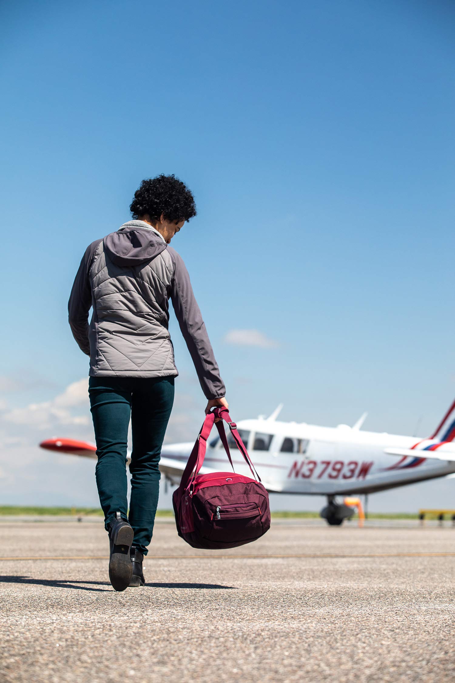 Perfect for everything from trips to the gym to spur-of-the-moment adventures, this lightweight duffel has plenty of space for gear, luggage and accessories. Two grab handles, and an adjustable shoulder strap and backpack-carry option make this duffel easy to carry, while an external zippered valuables pocket, large side pocket, and mesh inner pocket provide easy stowage spots for important items and shoes. The AViANT Duffel 35 is the smallest duffel in the lightweight AViANT Duffel family, making it an ideal, carry-on luggage size.