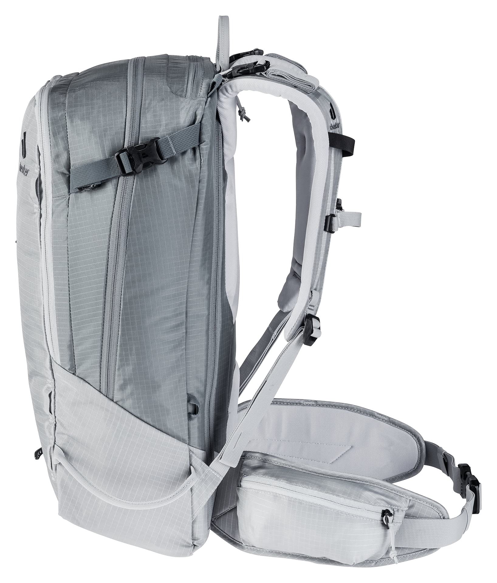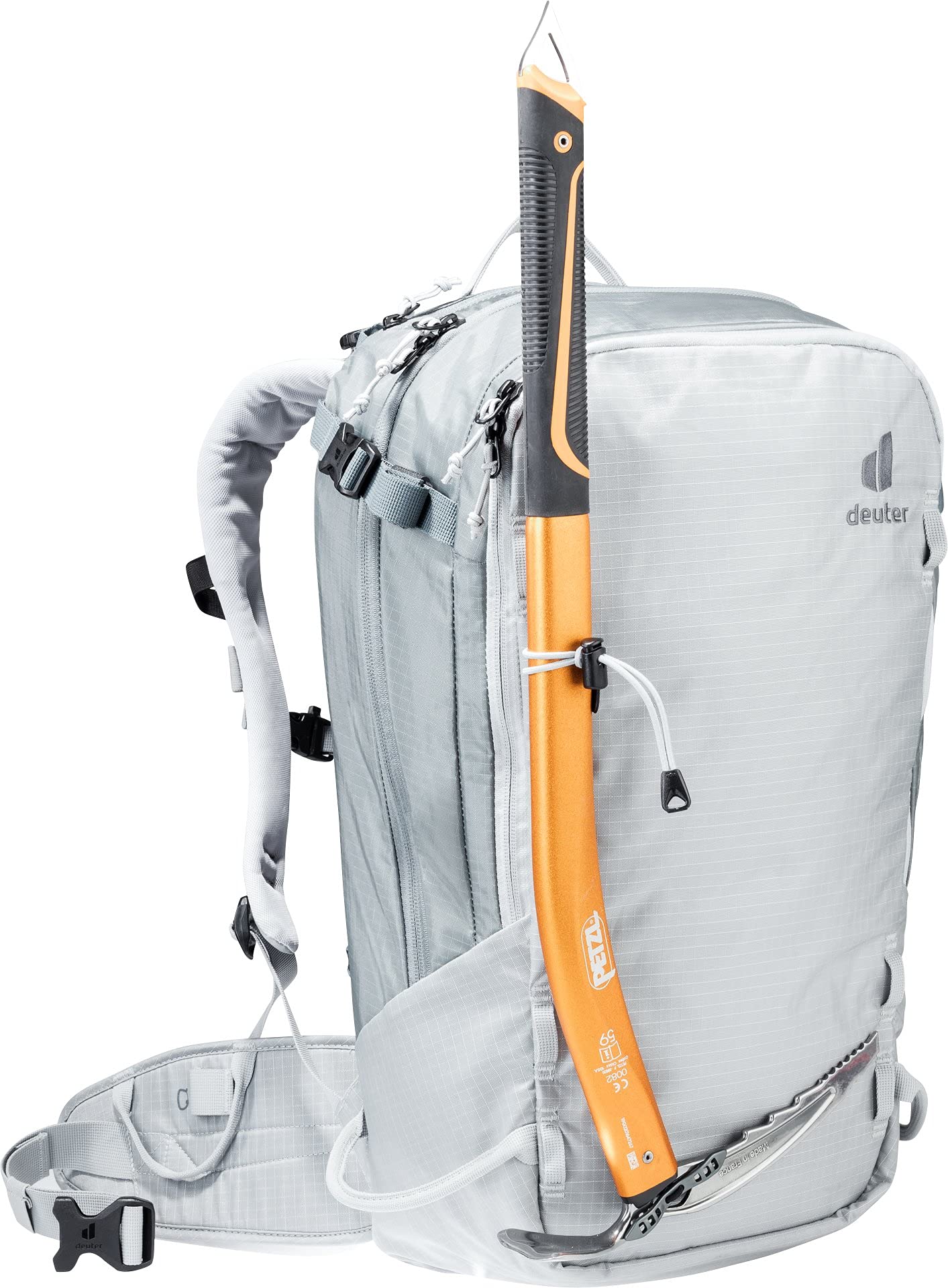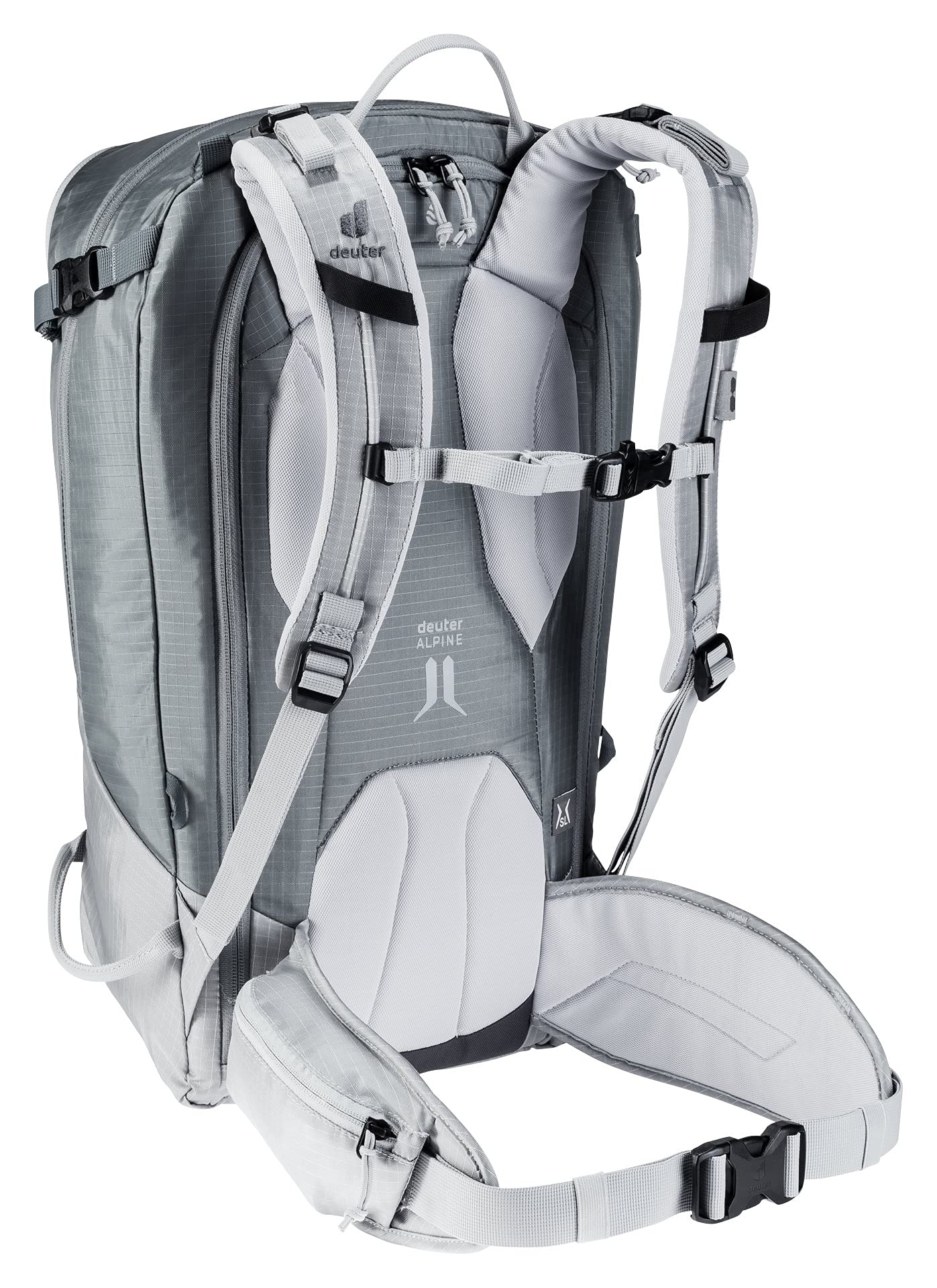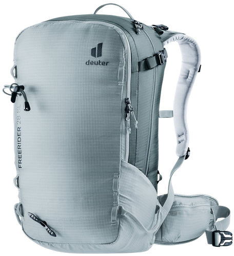 The Freerider pack has clever winter-specific details like access to the main compartment via a fully opening back panel. This gives you good oversight of the contents and it also means the carry system stays dry. But even if a little snow does get onto the carry system, our new hard-wearing, breathable, snow-resistant fabric will keep your back dry. And when it comes to safety, the Freerider has it all worked out. It features a separate, easy-to-access compartment for your probe and shovel so that your avalanche equipment is quick to access in an emergency. Weve also equipped it with our new modular attachment set-up. Two dedicated straps that attach to the gear loops on the pack allow you to affix skis, a snowboard or snowshoes to the pack in no time at all skis diagonally across the back or in an A-frame, a snowboard or snowshoes in an upright position. These versatile gear straps can also be used as compression straps.