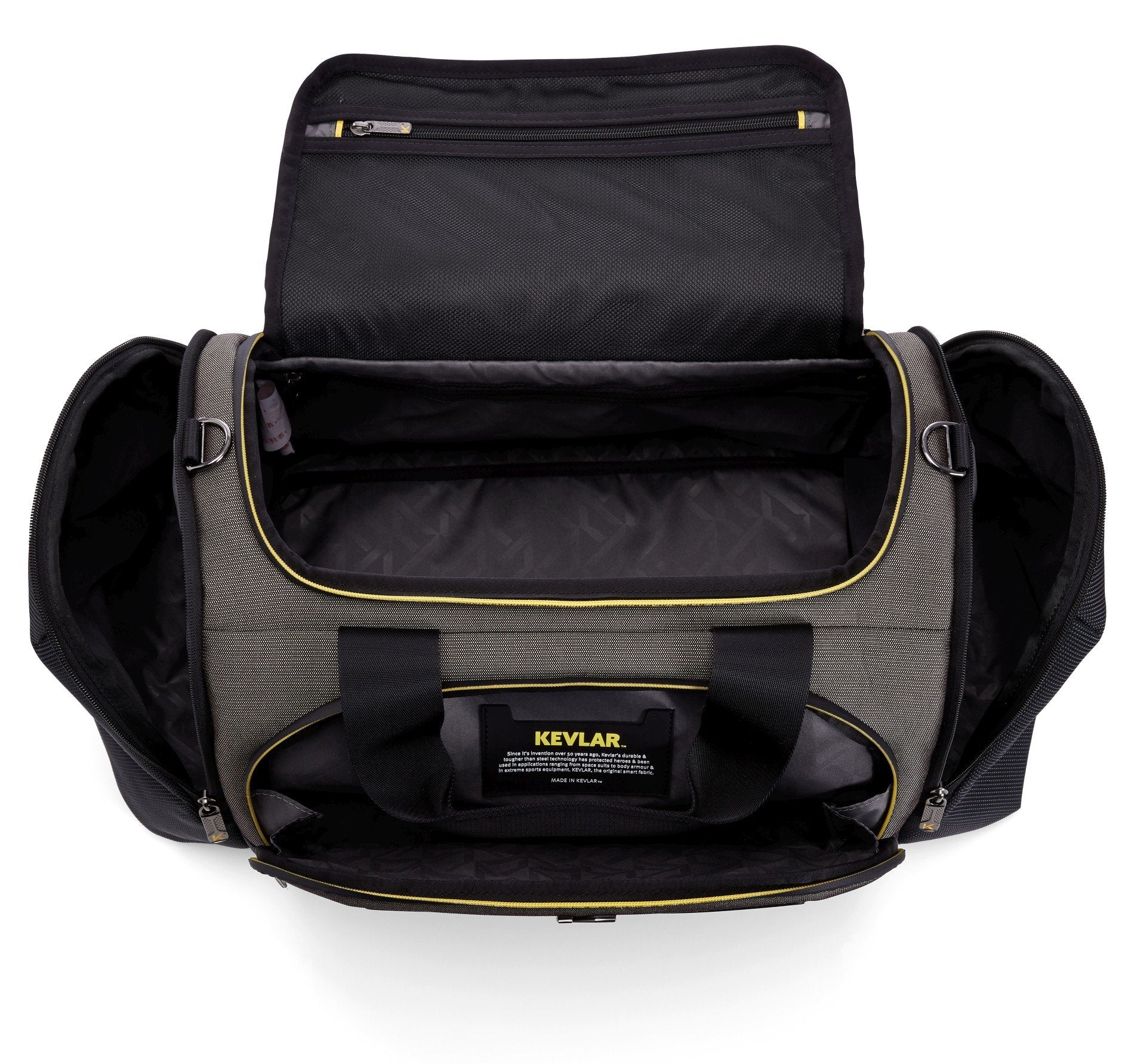 The Kevlar Atlantis cabin duffle bag extremely lightweight and versatile, smart on an overnight trip and is also flexible enough to take to the gym. Kevlar redefines what durability means for luggage, this bag is light yet ultra-tough due to the superior engineering and high tech materials used, creating serious luggage for the international road warrior whose schedules demand strength, durability and versatility. Kevlar Luggage is designed for those who work hard, play hard and expect the very best from the products they choose.