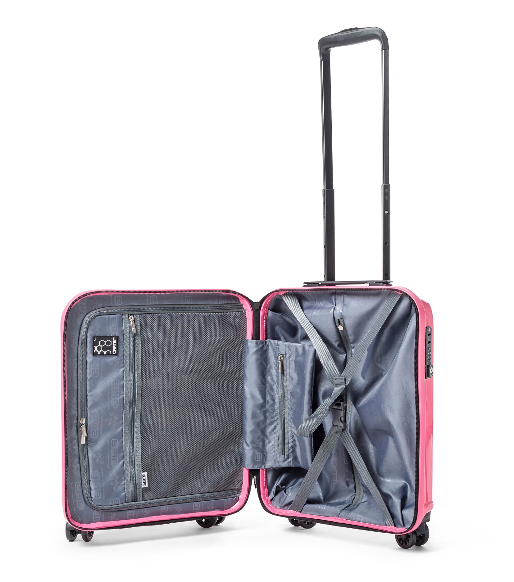 • Integrated TSA combination locks are standard for less hassle during US Travel.