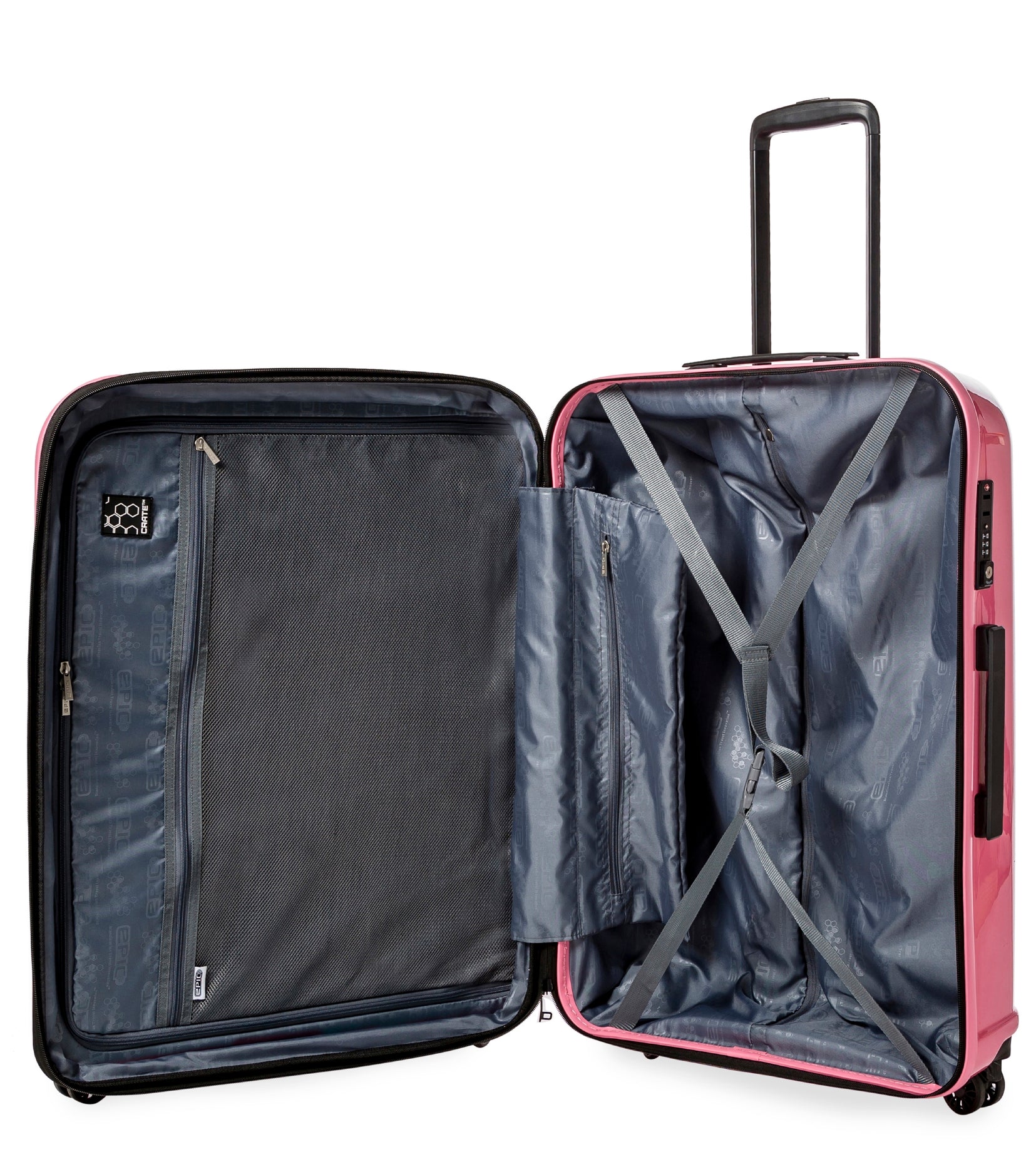 • Integrated TSA combination locks are standard for less hassle during US Travel.