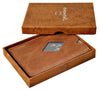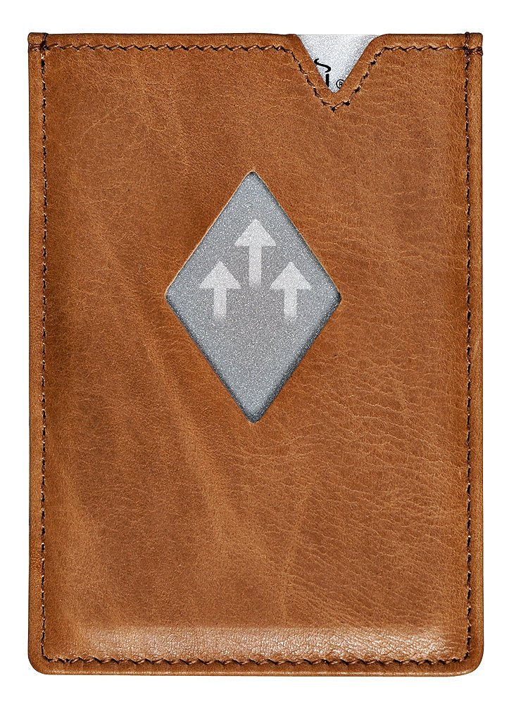 Genuine leather. Stainless steel. Delivered in an elegant box. Holds a few cards with each access.