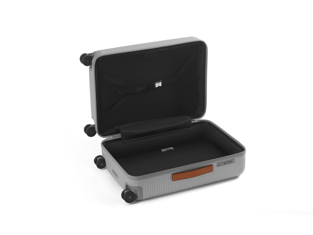 • PREMIUM ITALIAN CRAFTSMANSHIP: This exquisite luggage collection is meticulously crafted in Italy from premium polycarbonate, embodying featherweight durability and high functionality. The handles are also made from fine Italian leather, and they enhance the durability and ease of carrying your luggage through your journeys. This collection was designed by the renowned artist Marc Sadler and features his signature on the bottom of each piece.