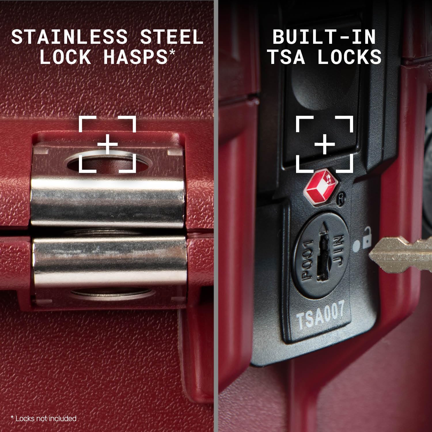 • FEATURES: Watertight, crushproof, and dustproof hard case. Comes with wheels and a retractable extension handle, packing cube organizers, lid mesh and zippered storage compartments, and press and pull latches with TSA key locks