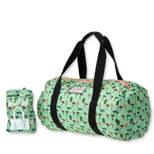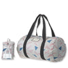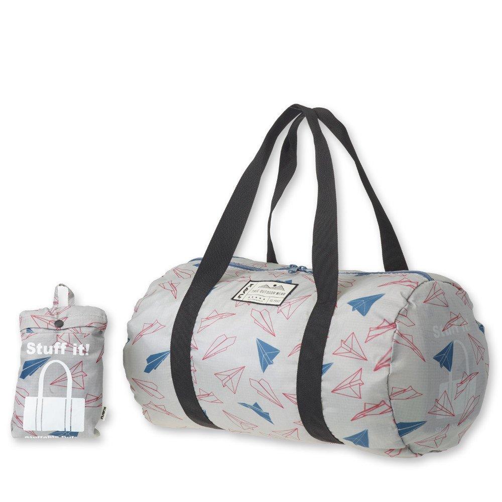 Lightweight duffle that can pack into interior pocket with snap closure for convenient storage, fixed shoulder straps, one main compartment with zip closure.