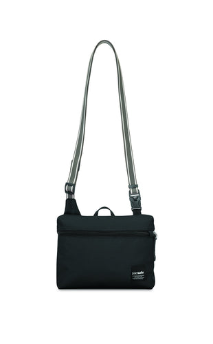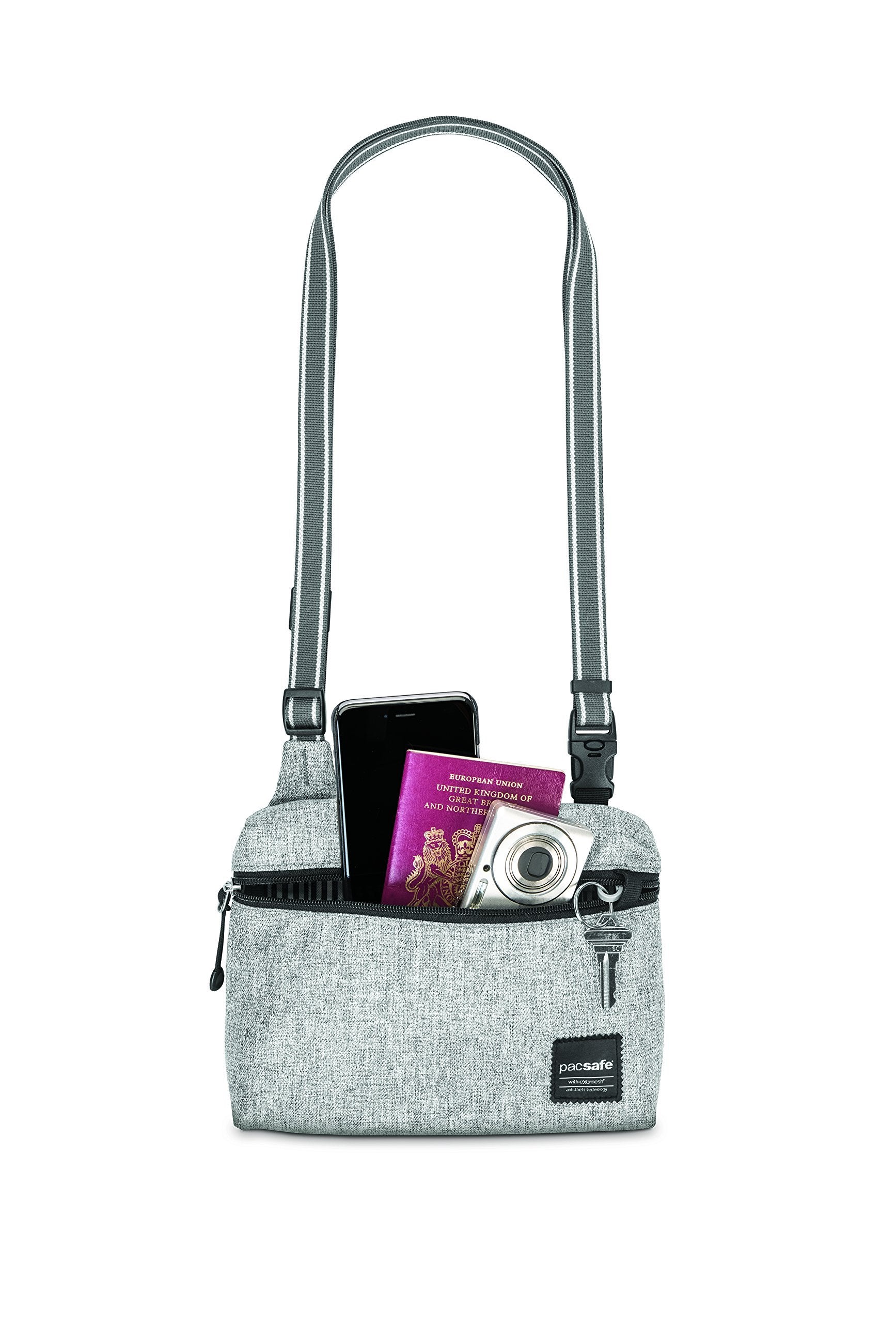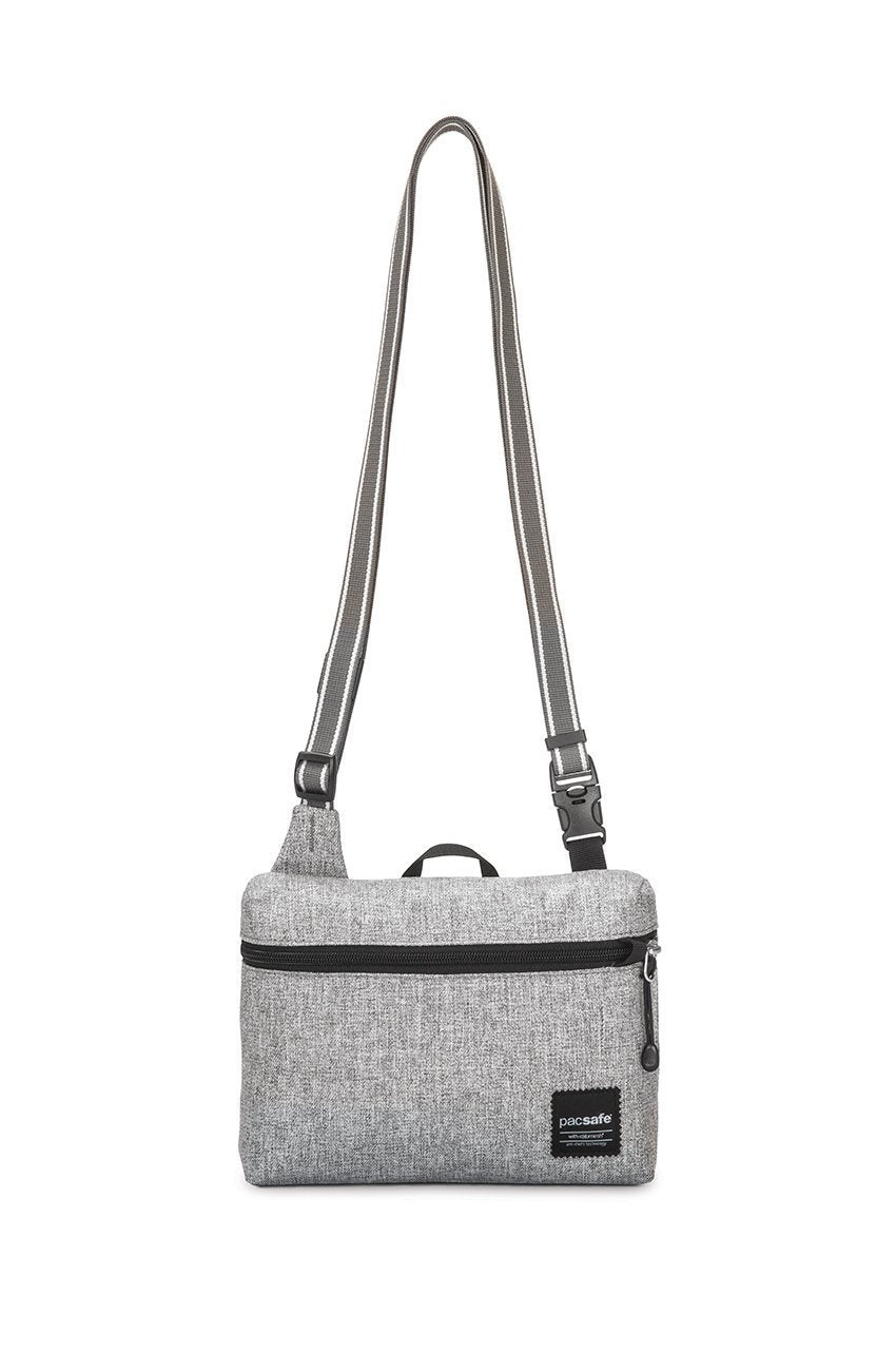The Slingsafe LX50 from Pacsafe is the perfect anti-theft small cross-body bagfor any city or travel inspired occasion. Simple and unstructured, the bag hasa variety of anti-theft features built into the bag to help keep belongingssafe. The bags fabric is embedded with eXomesh Slashguard, a stainless steelwire mesh that protects your gear from a quick slash-and-run theft. Dualrelease security buckles allow you to secure the bag to a fixture for addedsecurity, and the ultra-strong wire-imbedded Dyneema webbing straps helpprevent cut-and-run theft. The RFIDsafe blocking pocket helps prevent yourdata (such as from e-passports, credit cards, and key cards) from falling intothe wrong hands, while the smart zipper security makes it difficult forpickpockets to quickly access the main pocket. The comfortable, adjustableshoulder strap has a drop range of 16.5-29.5 inches. Weighing just 4.4 ounces,the Slingsafe LX50 is big enough to fit an iPad mini and all your daily travelessentials, making it the ideal lightweight cross-body bag. Pacsafe is allabout secure mobility. With a wide range of stylish adventure backpacks,everyday bags, womens bags, camera bags, luggage, and travel accessories,Pacsafe lets you unpack the stress of protecting your gear, and instead, packpeace of mind.