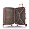 Made of a lightweight polycarbonate composite with a brushed metal textureDurable and stylish metal corner guards Metal corner guards Features a fully-lined interior with zippered divider, buckled compression straps and zipperedpockets Flush mounted built-in TSA combination lock Zipper-released expansionsystem allows for an extra 20% in packing capacity Gel-cushioned top and sidehandles Lightweight colour-matching aluminum push-button telescopic handlesystem with multi-stage locking heights 360 spinner wheels allow foreffortless motion in different terrains