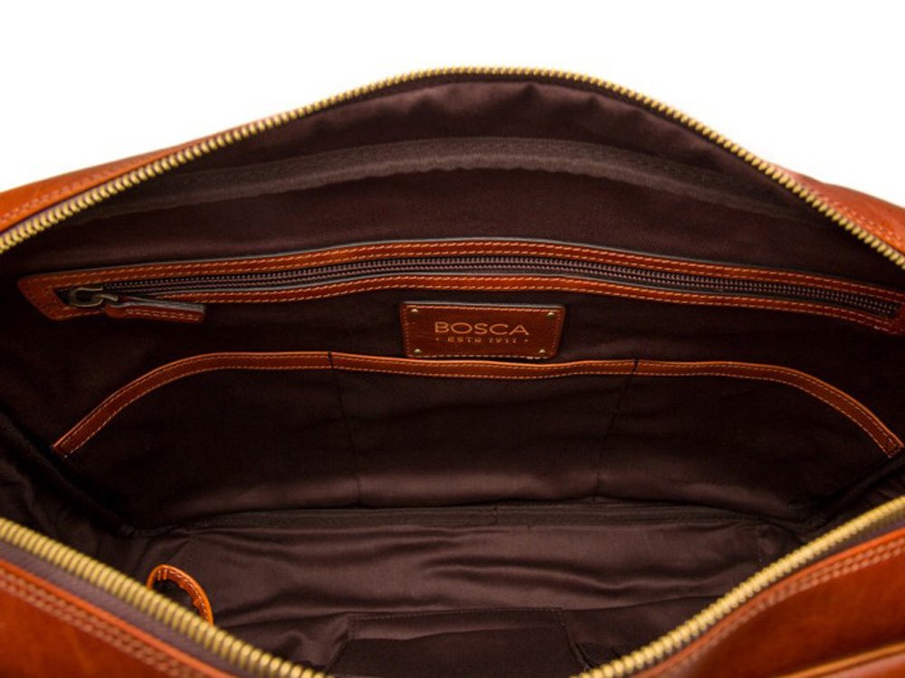 Lined interior. Interior back-wall zip pocket. Nine interior slip pockets.