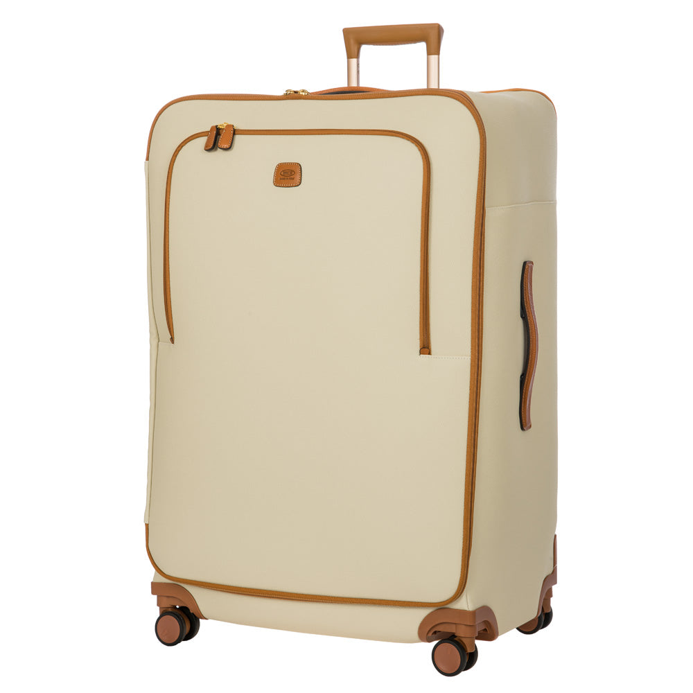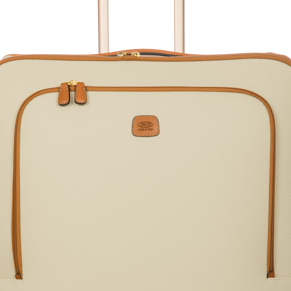 The Firenze Collection is handcrafted in our signature embossed leather-like pvc, water resistant and very easy to clean, accented with full-grain, vegetable tanned, Tuscan leather trims. The Collection comes in the beautiful cream color. The lining is made of polyester fabric with Brics logo jacquard printings. Firenze bags are designed and Made in Italy.
