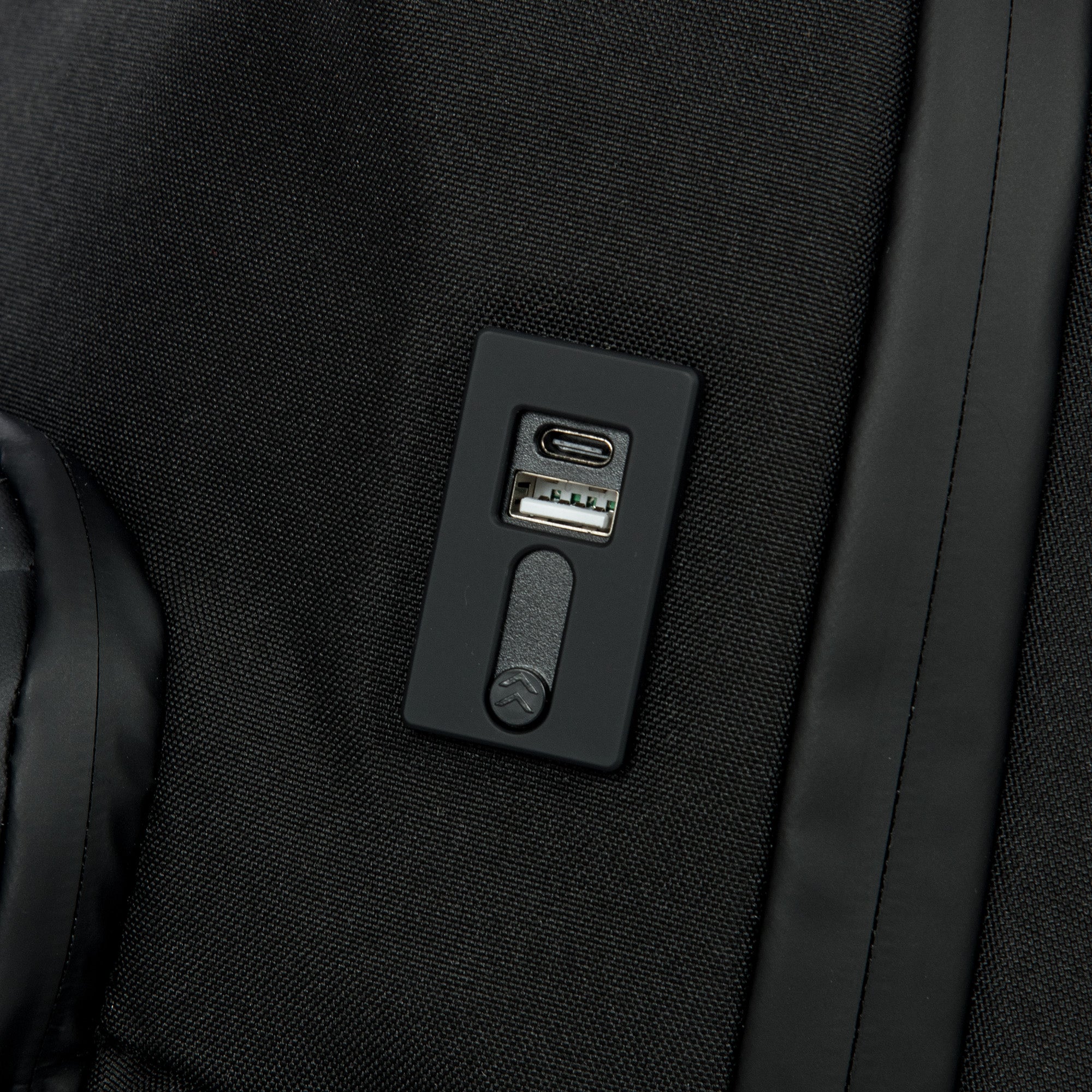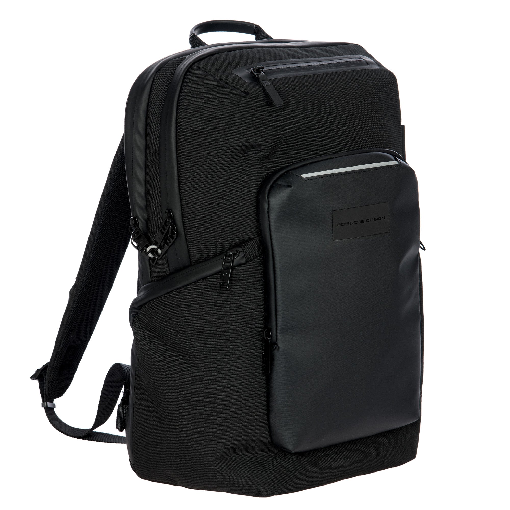 The fusion of smart style and sustainability, functionality and flexibility: The Porsche Design Urban Eco series doesn't stay in the drawer - its perfect for modern everyday life. The Porsche Design Urban Eco Backpack M2 business backpacks technically clean design is appealing at first glance: water repellent polyester with coated fabric patch pocket, laminated zippers and black metal hardware. At second glance, the details catch the eye: like the rubberized logo patch, reflective piping and Porsche model badge-inspired print with the map coordinates of Zell am See, home of Studio F. A. Porsche. The well thought-out equipment in the backpack may not be visible, but can be felt every time you wear it. A separate notebook compartment on the back for laptops up to 15", a generous main compartment with zippered pocket, additional slide-in pocket and USB plug, a zippered patch pocket with business organizer and additional front slide-in pocket, side pockets and the back made of padded neoprene with trolley link and additional zippered pocket make the backpack the perfect business partner.