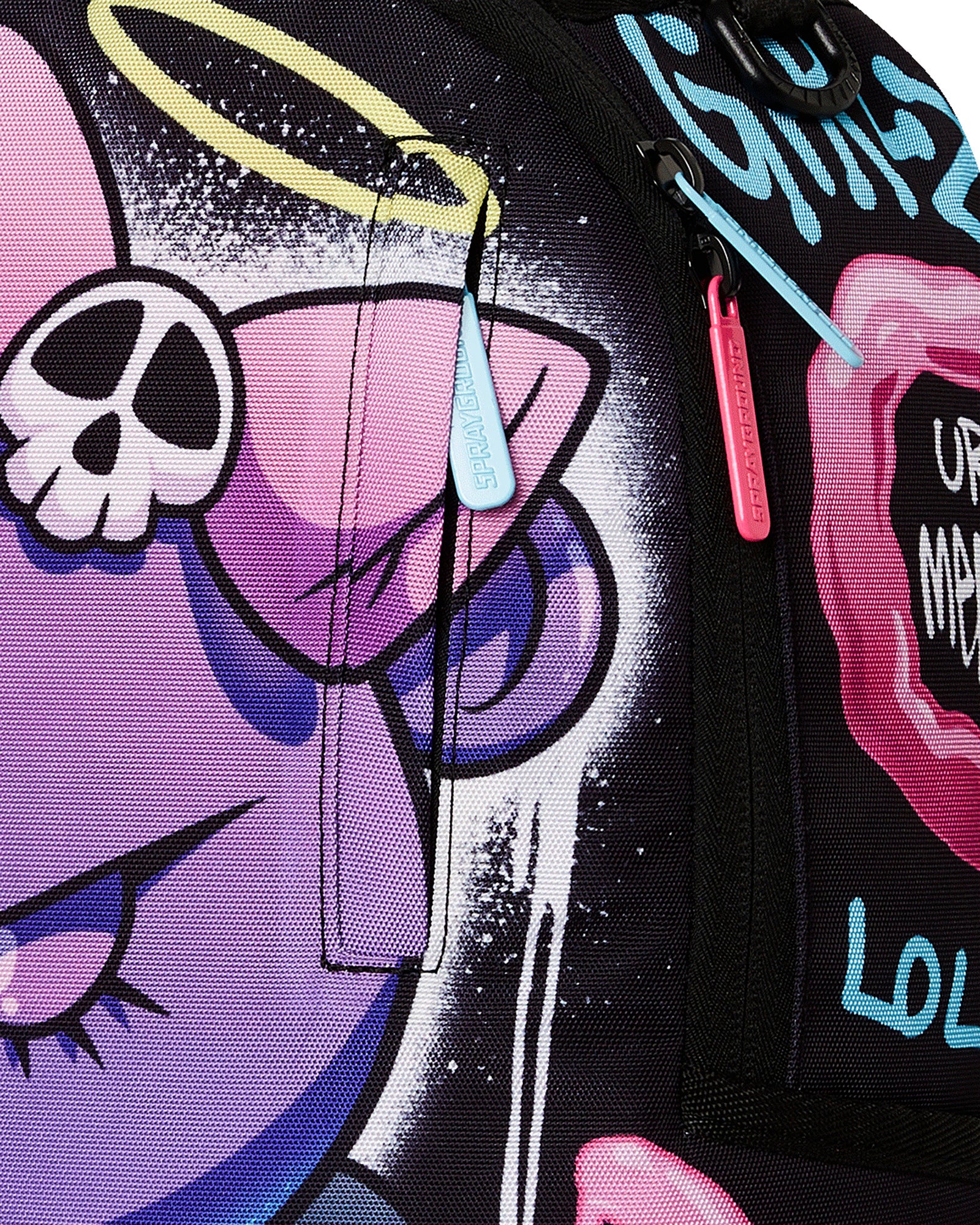 ALL BAGS ARE LIMITED EDITION & NEVER PRODUCED AGAIN. Made with Durable Faux Leather water-resistant fabric Spraygrounds art is meant to tell a story, through inspiration, pop culture, details, color, and thought-provoking concepts that push the limit in design and fashion. Durability, Strength, and Longevity are the foundation of Quality for Sprayground. A bag is meant to be thrown and beat up through the normal wear and tear of people's daily adventures. Functional compartments for todays youthful tech kid with slots for headphones, sunglasses, laptops, tablets and easy organization and mobility with ergonomic strap support for easy transport.