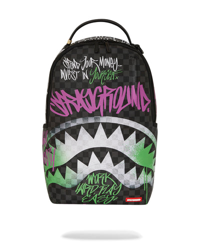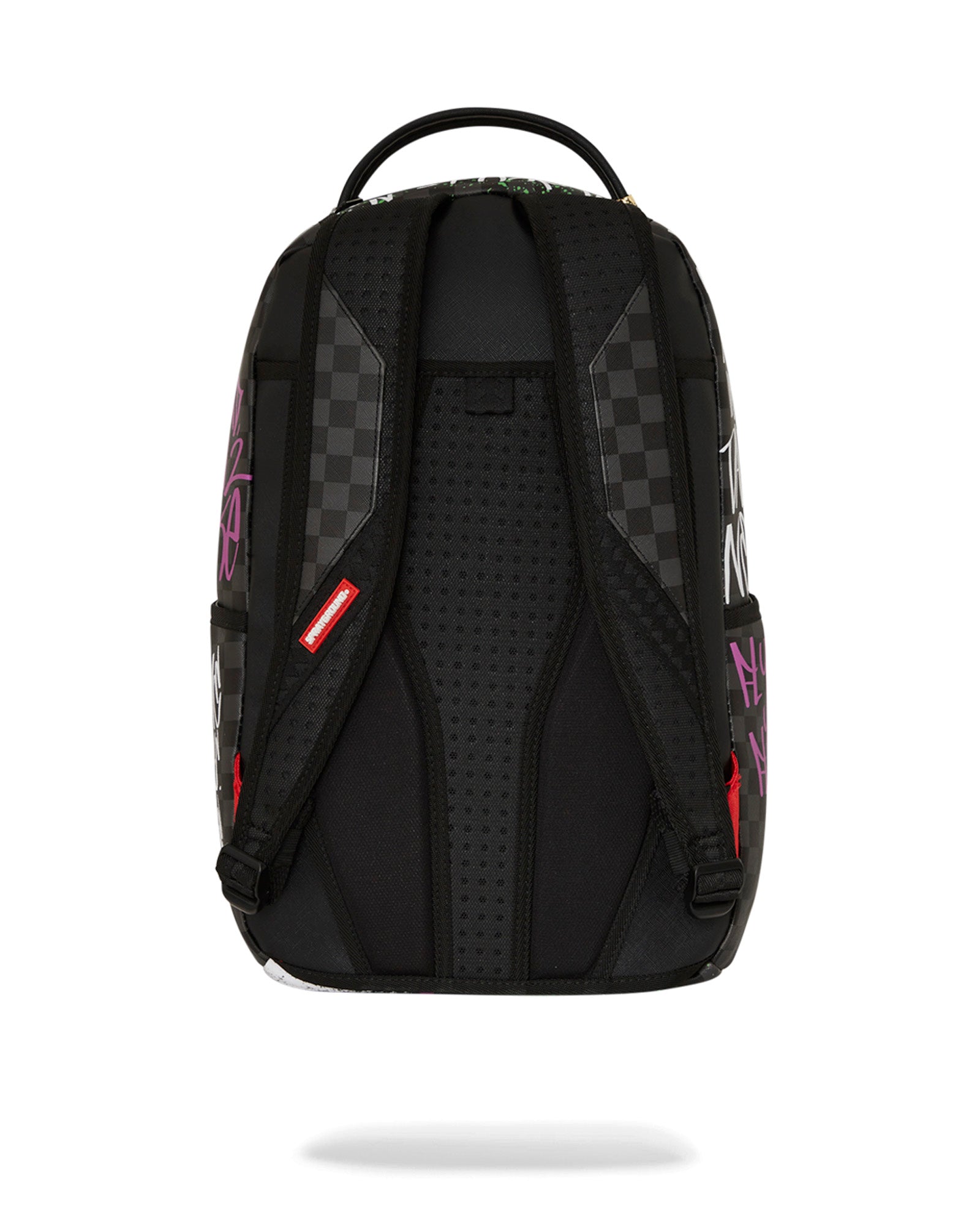 ALL BAGS ARE LIMITED EDITION & NEVER PRODUCED AGAIN. Made with Durable Faux Leather water-resistant fabric Spraygrounds art is meant to tell a story, through inspiration, pop culture, details, color, and thought-provoking concepts that push the limit in design and fashion. Durability, Strength, and Longevity are the foundation of Quality for Sprayground. A bag is meant to be thrown and beat up through the normal wear and tear of people's daily adventures. Functional compartments for todays youthful tech kid with slots for headphones, sunglasses, laptops, tablets and easy organization and mobility with ergonomic strap support for easy transport.
