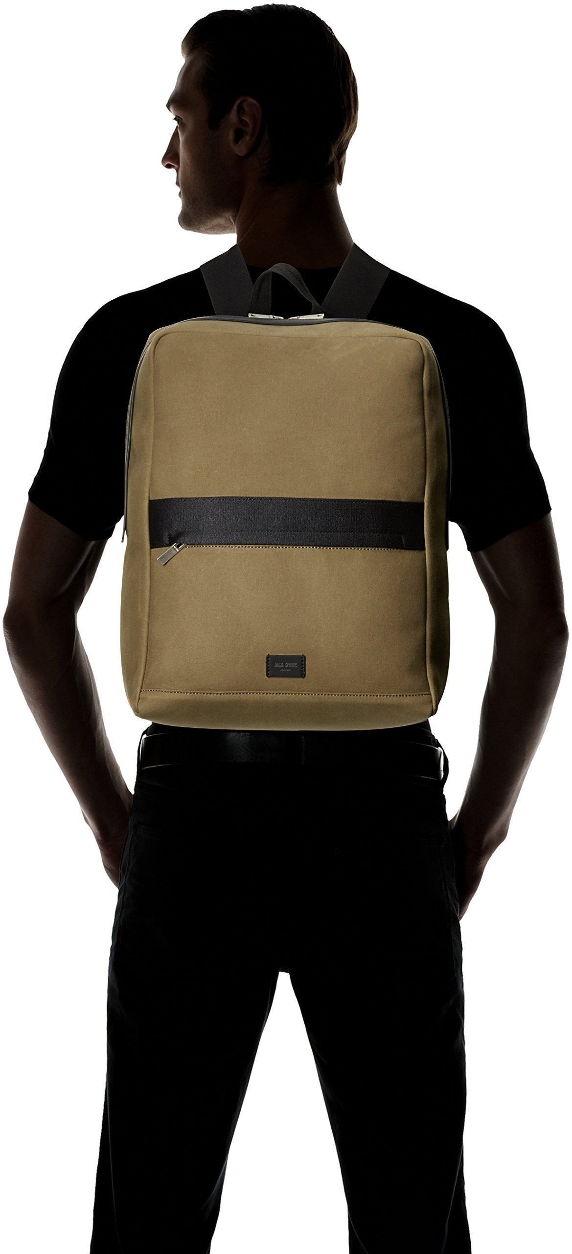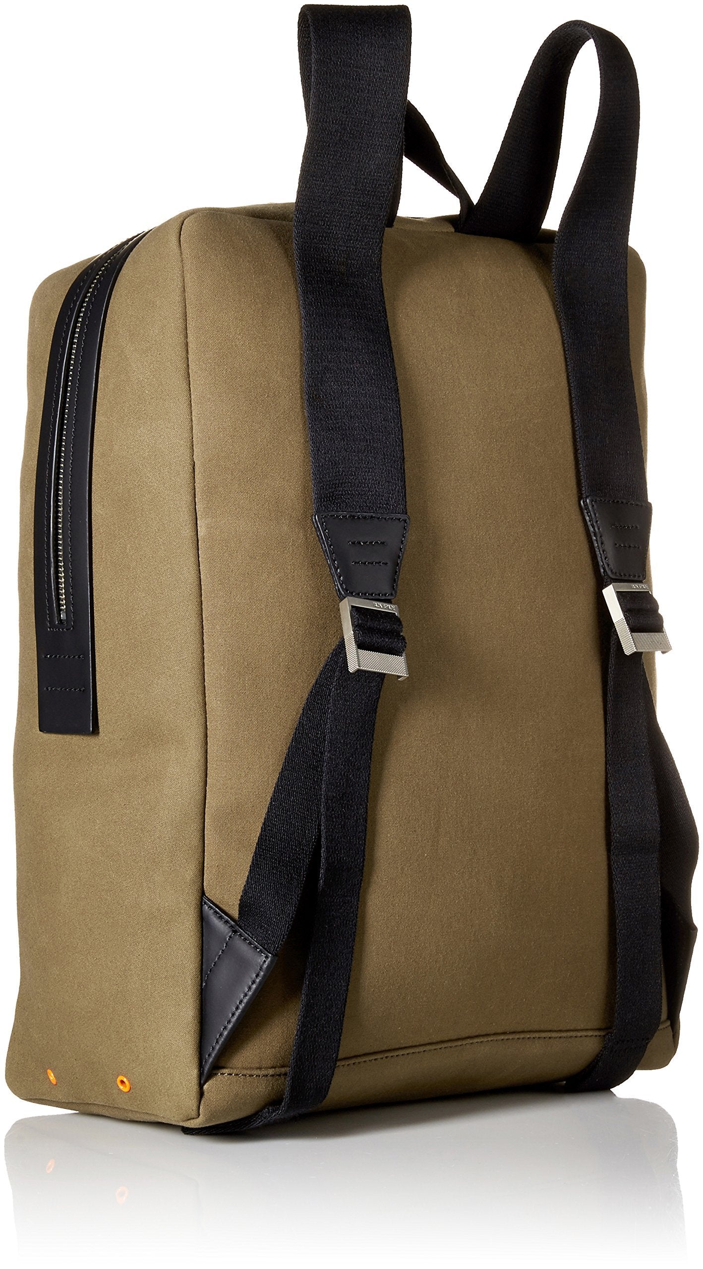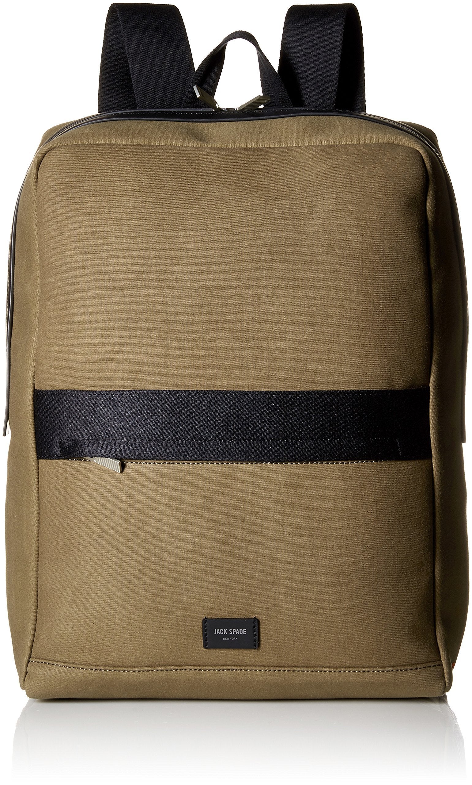 Bonded canvas and signature jack orange neoprene interior pocket details, and orange grommets. Leather details on the outside.