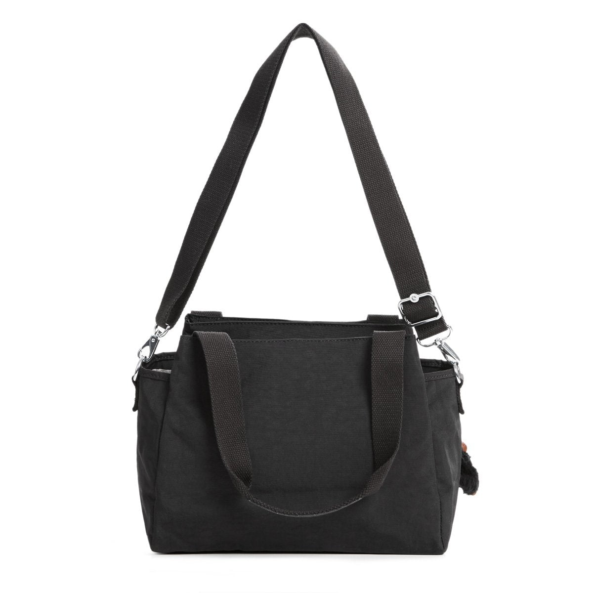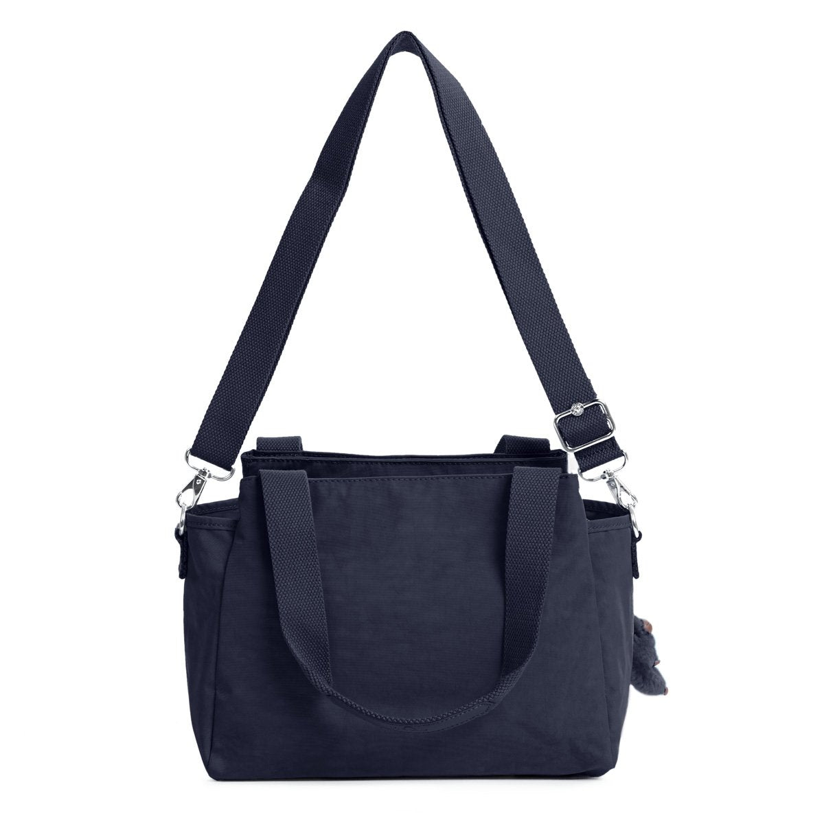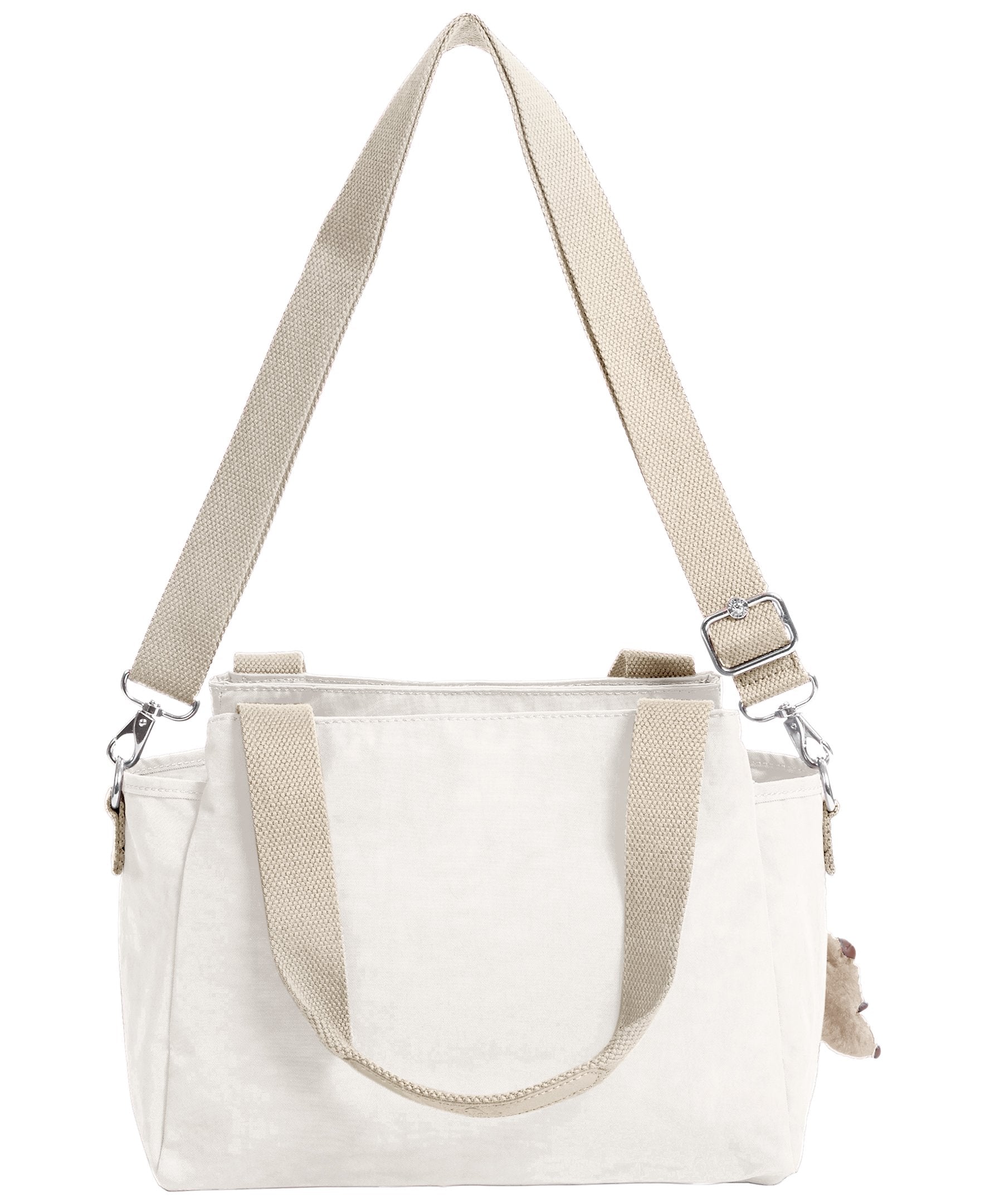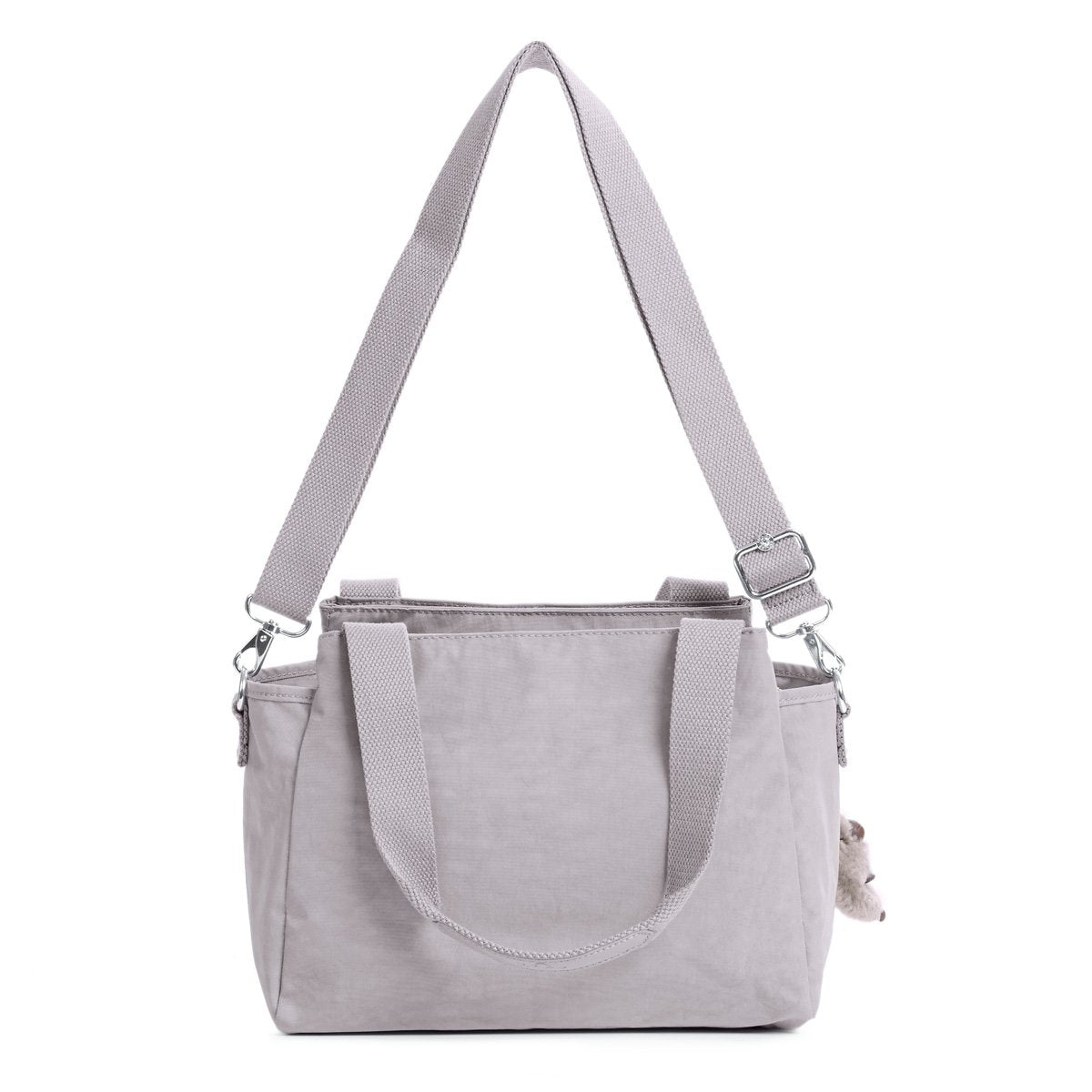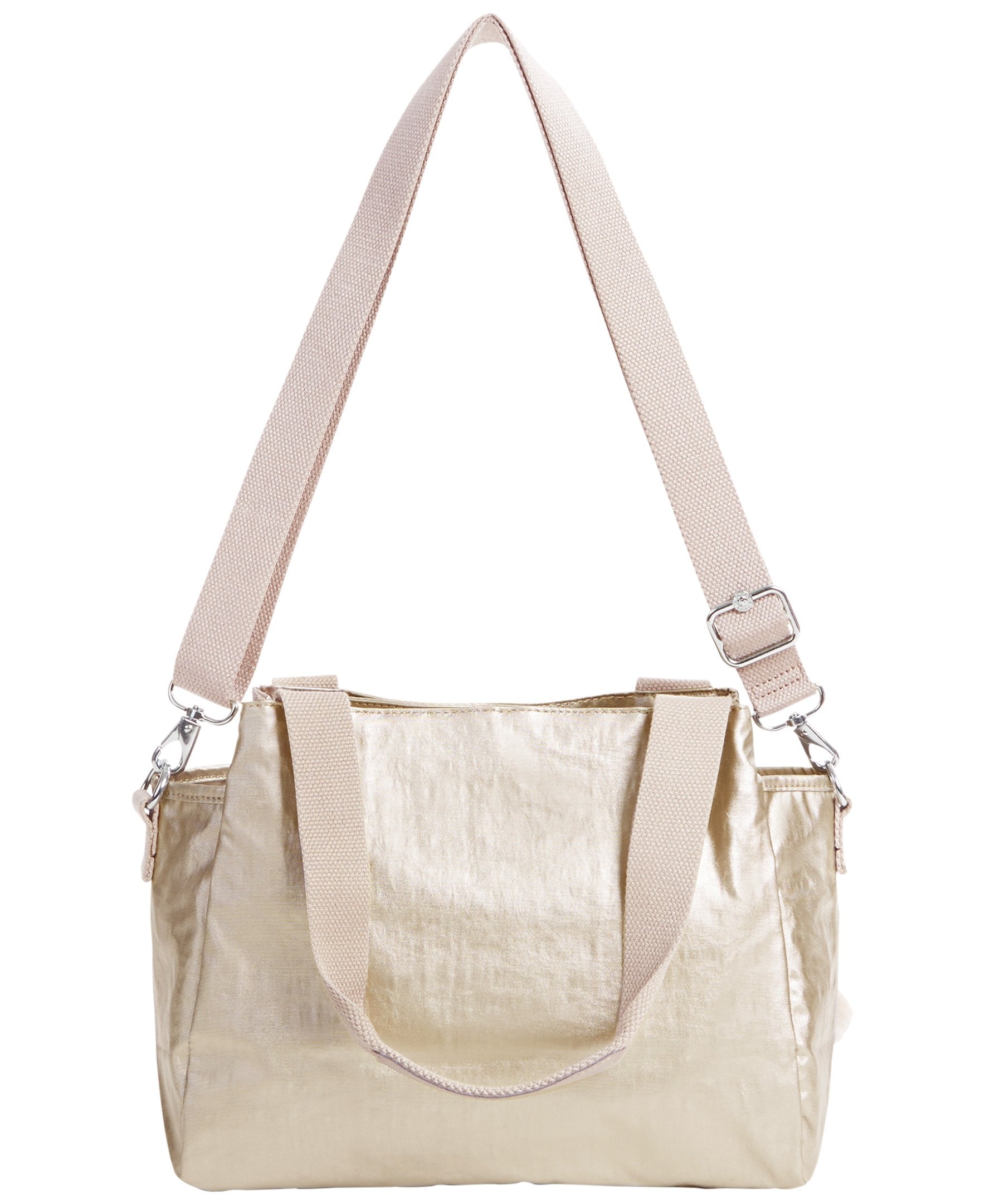 • Crinkle Nylon. Handle drop: 8". Dual carry handles.