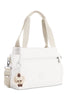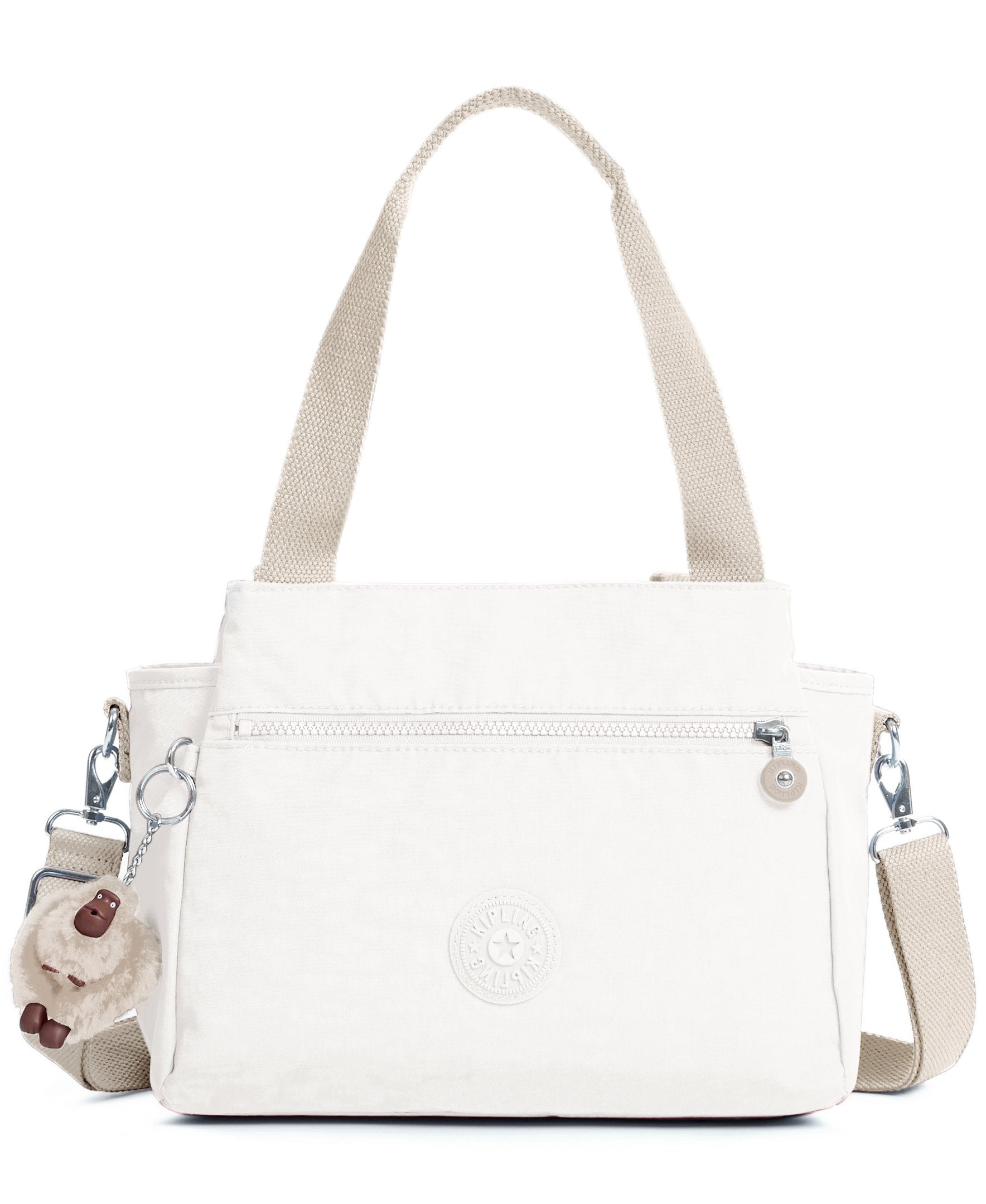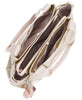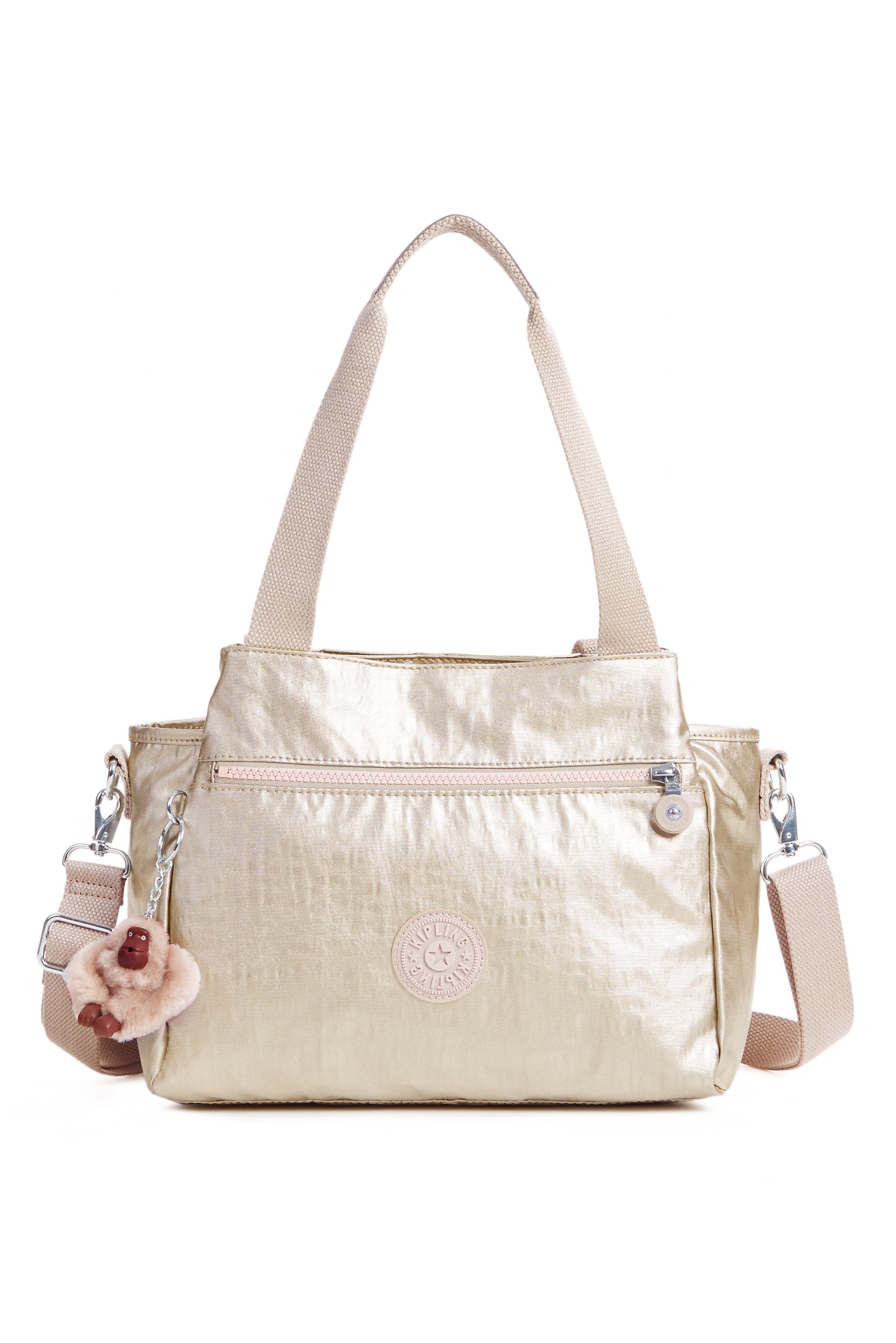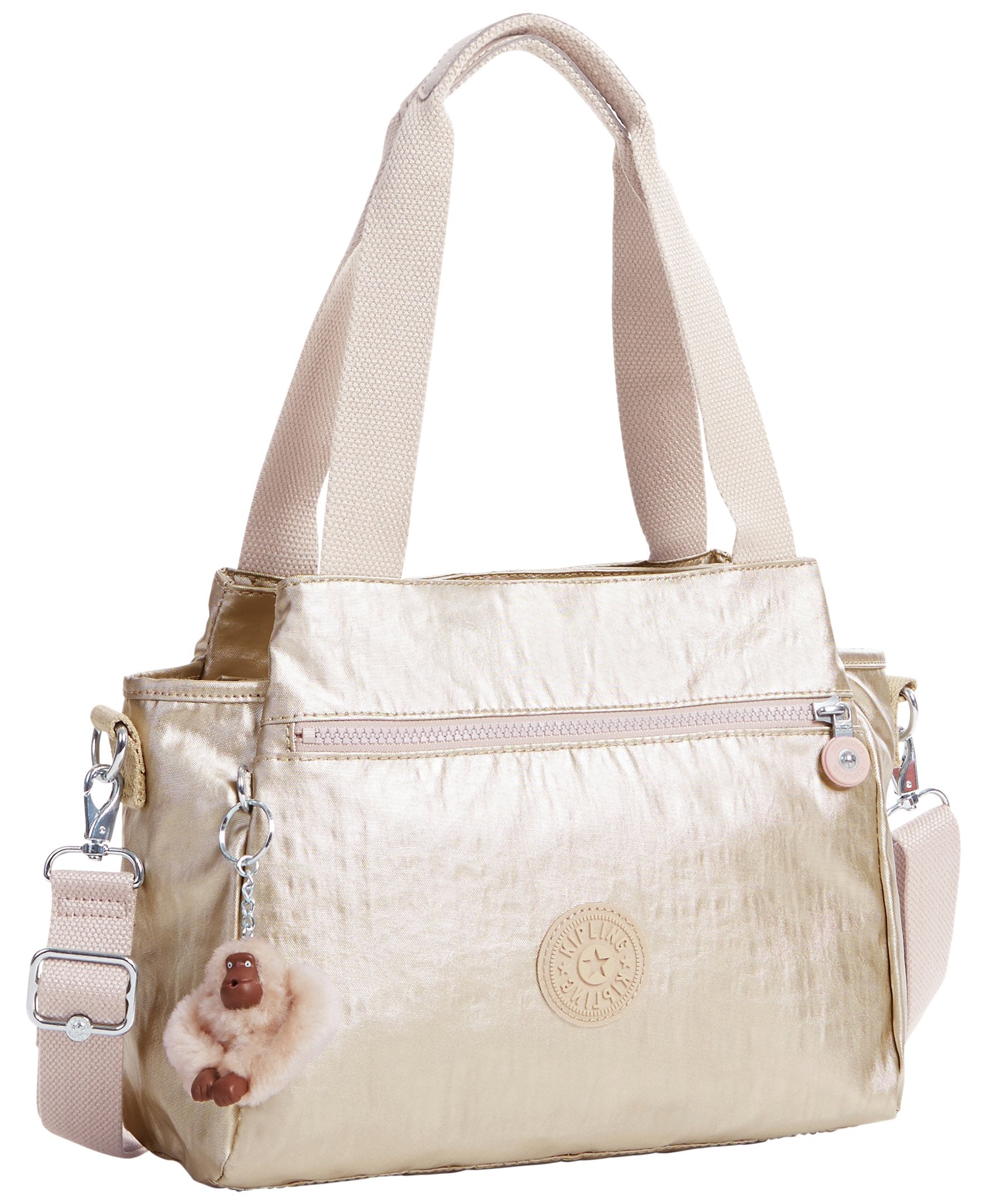Organization goals come true thanks to this multi-compartment handbag. A magnetic snap compartment at front and back keeps things separately stowed from the zipped divider in the middle.