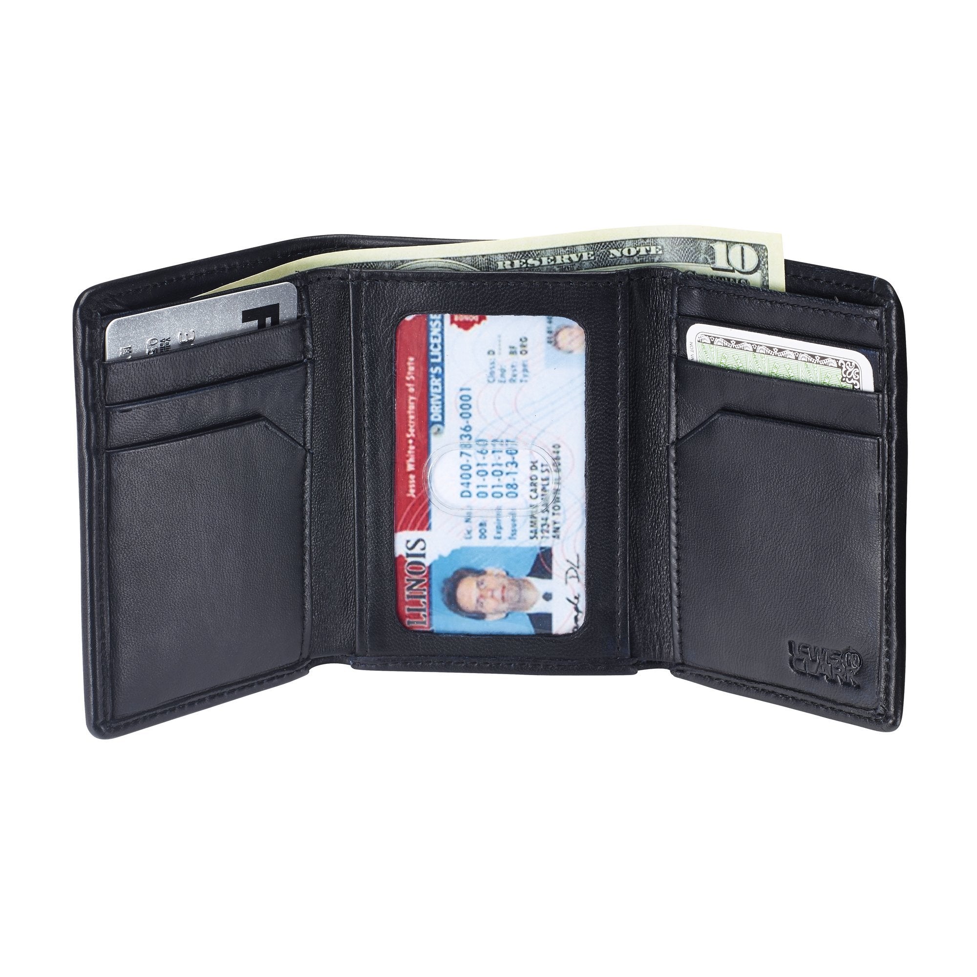 The Lewis N. Clark RFID-blocking tri-fold wallet allows you to carry theessentials and helps prevent unwanted access to personal information stored onmany debit and credit cards. The durable ballistic nylon and genuine leathertrim is the perfect combination of lightweight portability, high strength, andbreathability needed for todays active user. As a convenient option to holdyour valuables, this highly functional travel wallet includes 4 interior cardslots, an ID window with a thumb notch, and 2 hidden pockets on the left andright hand interior that can hold additional cards or larger bills andreceipts. It remains easily accessible whether you put it in your pocket orbag, and can be used on the way to work, while traveling, going to the gym,attending business meetings, and much more. This slim, sleek wallet provides agreat deterrent to unwanted scans, is extremely lightweight, and is great foreveryday use and traveling alike.