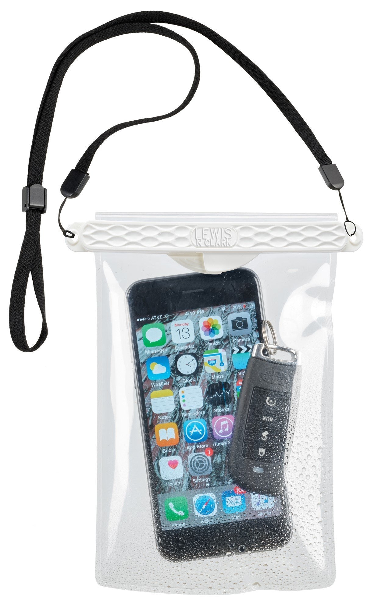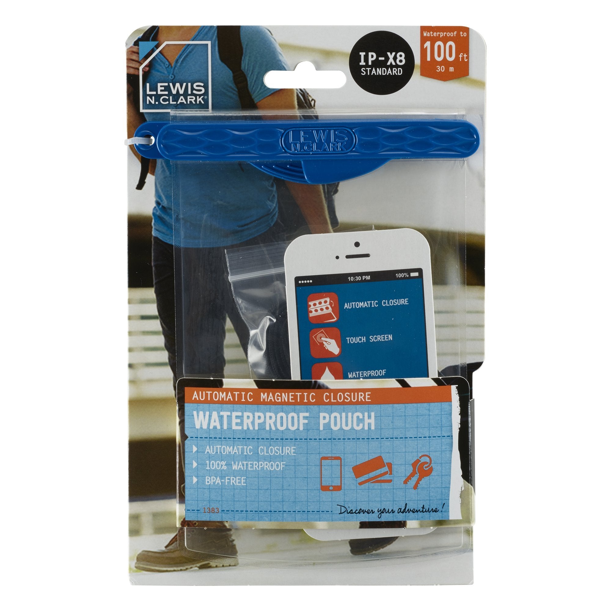 If youve ever wished you could bring your phone to the beach, on a boating trip, or even while snorkeling, this magnetic waterproof phone pouch now gives you that option. Foolproof and fumble-free, the double magnetic closure automatically seals with an audible snap for watertight protection. You can use your phone as if the pouch wasnt even there, so you can still listen to music, play a game, and watch a video without the need for a headphone or audio jack. The transparent TPU material also allows you to take crystal clear pictures and videos, even when youre underwater. You can also put other small items inside, such as credit cards, drivers licenses, keys, travel documents, money, memory cards, or other electronics such as MP3 players or cameras. Waterproof up to 100+ feet, the pouch is perfect for all kinds of water sports, including kayaking, canoeing, sailing, boating, surfing, stand up paddle boarding, snorkeling, swimming, and scuba diving. Its also great at the pool, beach, campground, waterpark, and on cruises. It can be used in wintertime recreational activities such as skiing, snowboarding, or snowshoeing. Even if its just a rainy or snowy day, this waterproof pouch will keep your belongings dry. Not only does it keep moisture out of the pouch, but it also keeps particles such as sand and dust out as well.