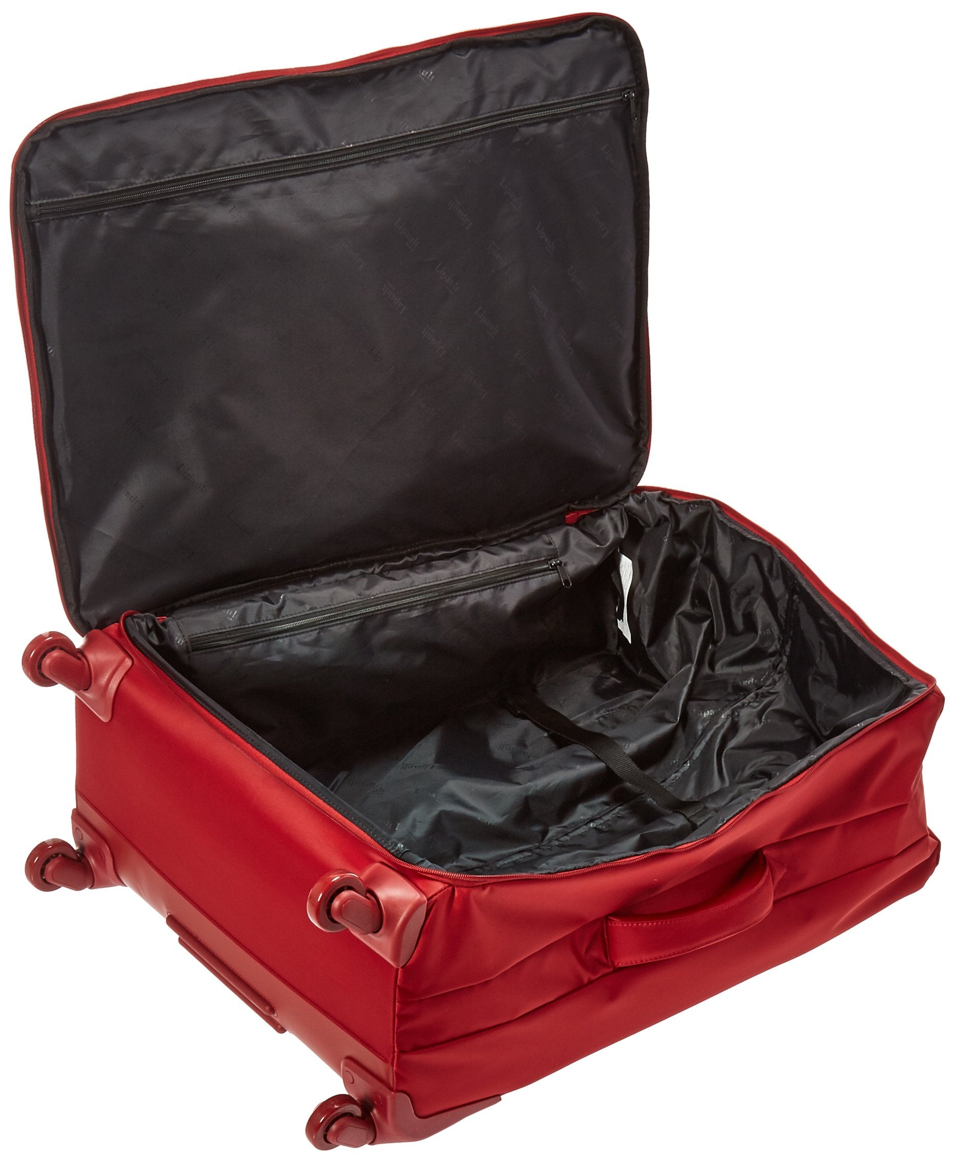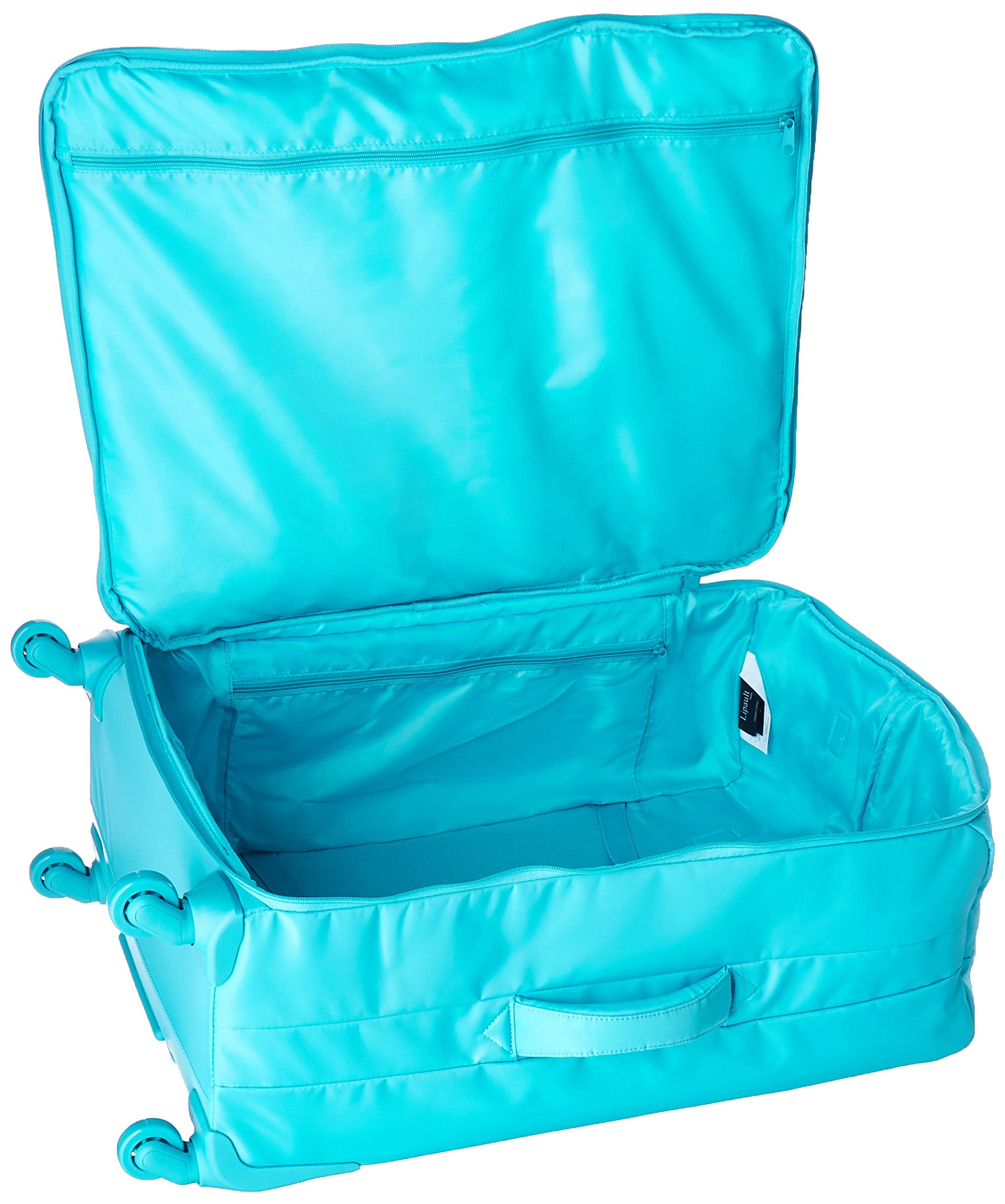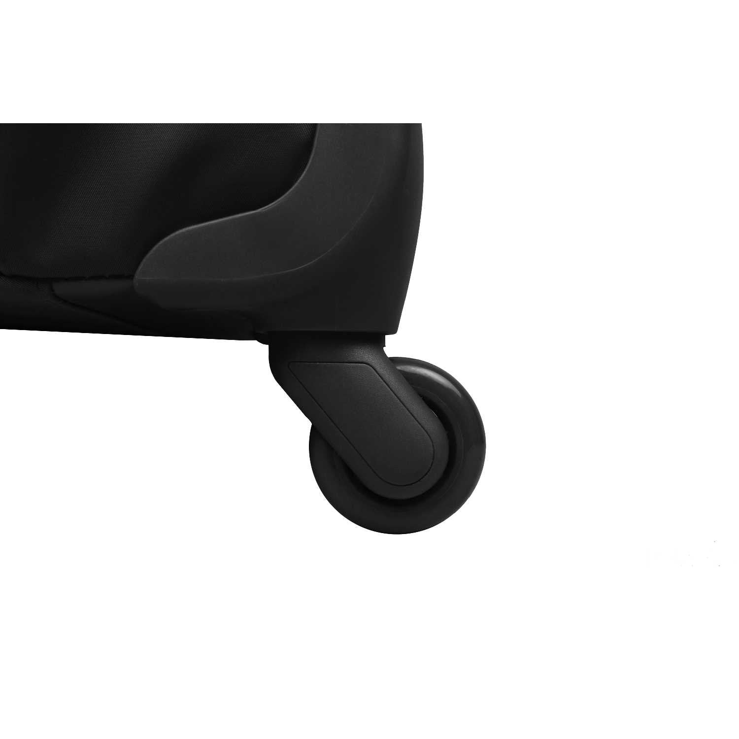 Fast turns. Sharp curves. Speed bumps. Go anywhere and in any direction with this spin-savvy carry-on. Its four wheels turn 360 Four wheel spinner wheel system for maximum functionality. Vibrant Fashion colors. Durable and water resistant. PVC reinforced. Nylon. 3 Year Guarantee. Cabin luggage that can be taken on board an aircraft with most airlines. Size and weight allowances for cabin luggage vary by airline. If the bag is overstuffed, it may not be accepted by the airlines.
